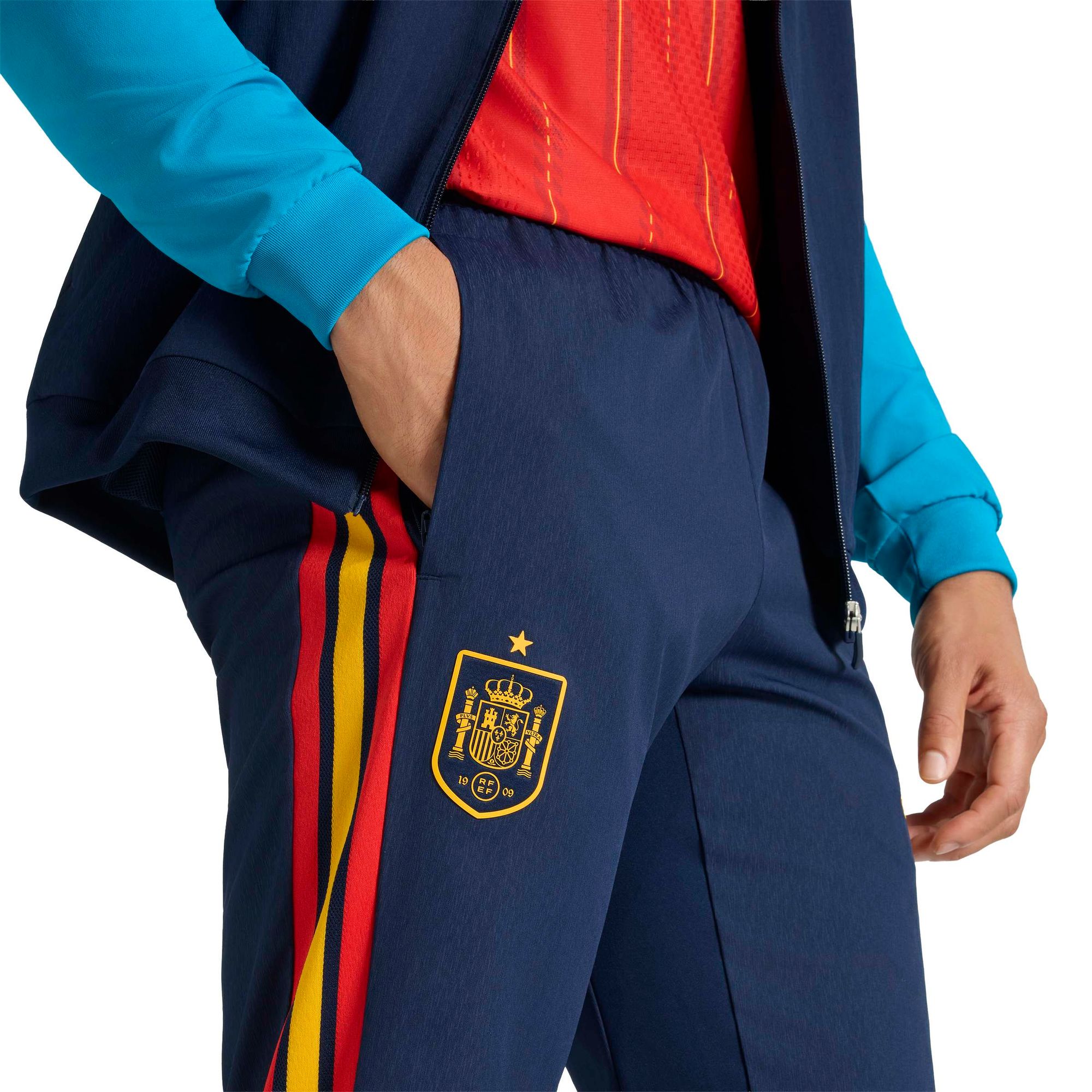 Mit der Spanien 26 Tiro Präsentationshose betrittst du auf das Spielfeld voller Selbstvertrauen. Sie ist von der Eleganz des spanischen Fußballs inspiriert und verbindet sportliche Tradition mit moderner Performance.