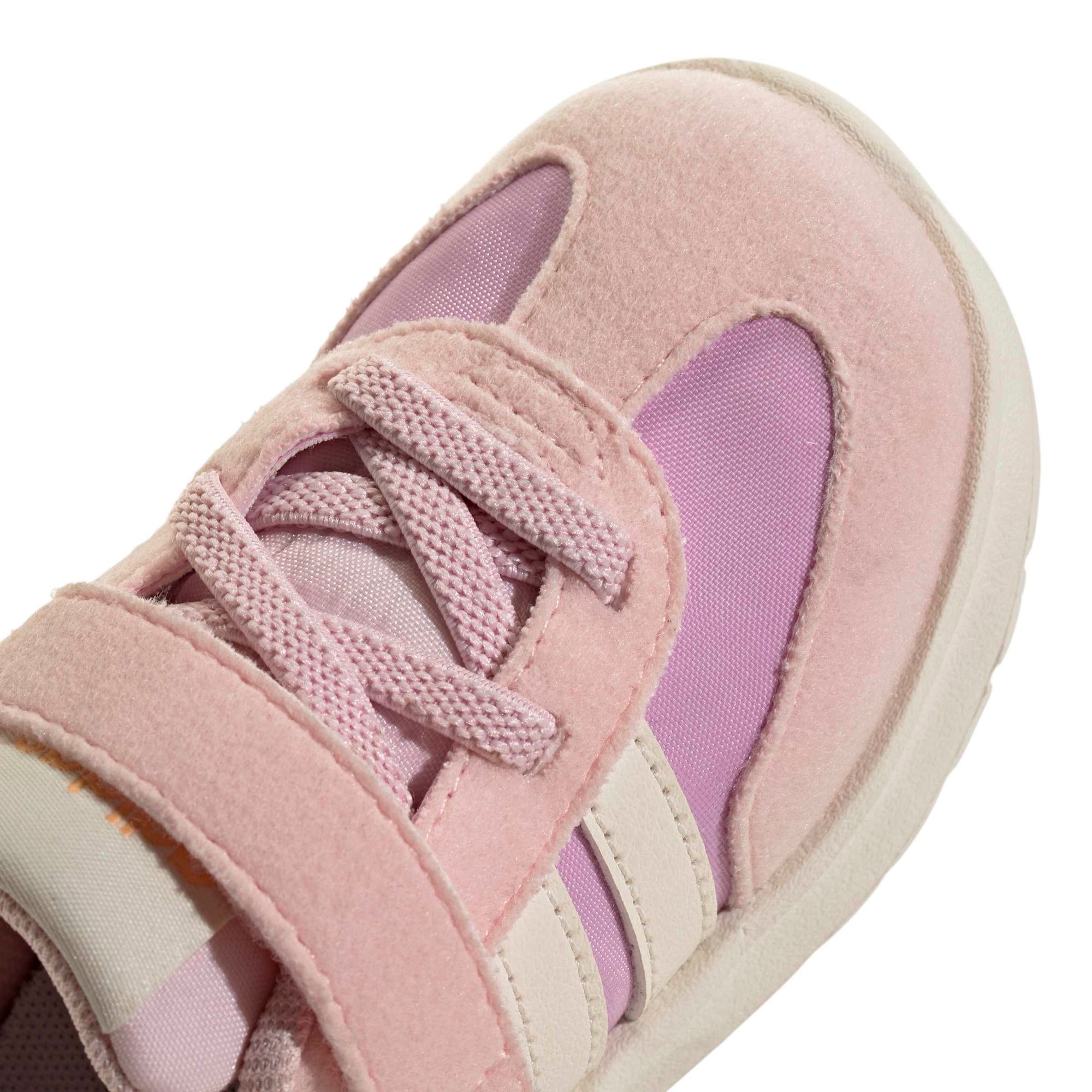 Wenn die Kleinen ihrer Fantasie freien Lauf lassen, müssen ihre Füße erst mal hinterherkommen. Dieser adidas Schuh für Babys und Kleinkinder ist von Retro-Laufschuhen inspiriert und kommt mit einer weichen, flexiblen EVA-Zwischen- und Außensohle. So hat es dein kleiner Schatz auf jeden Fall bequem, egal, ob er gerade im Garten unterwegs ist oder mit Top-Speed die Straßen der Stadt erkundet. Ein Klettverschluss erleichtert außerdem das An- und Ausziehen.