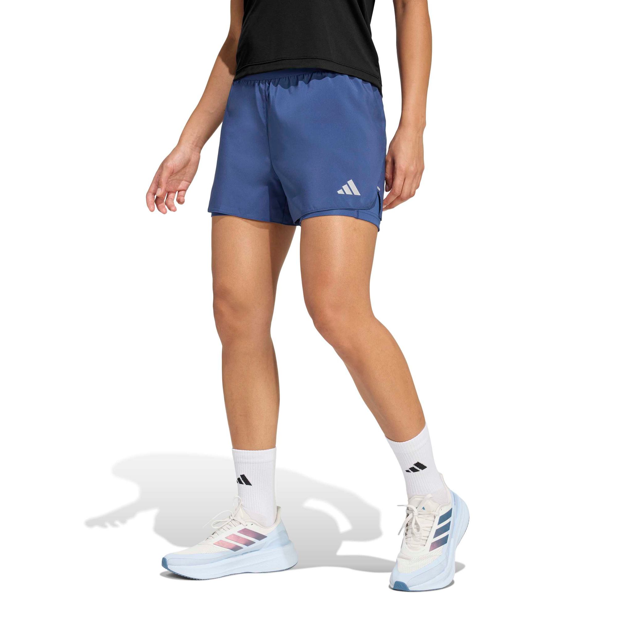 Mit den adi365 Running Essentials 2in1 Shorts von adidas findest du garantiert deinen Rhythmus. Die Shorts sind für den täglichen Laufsport konzipiert und kombinieren eine strapazierfähige, aber leichte gewebte Außenseite mit einer dehnbaren, leichten Innenhose.