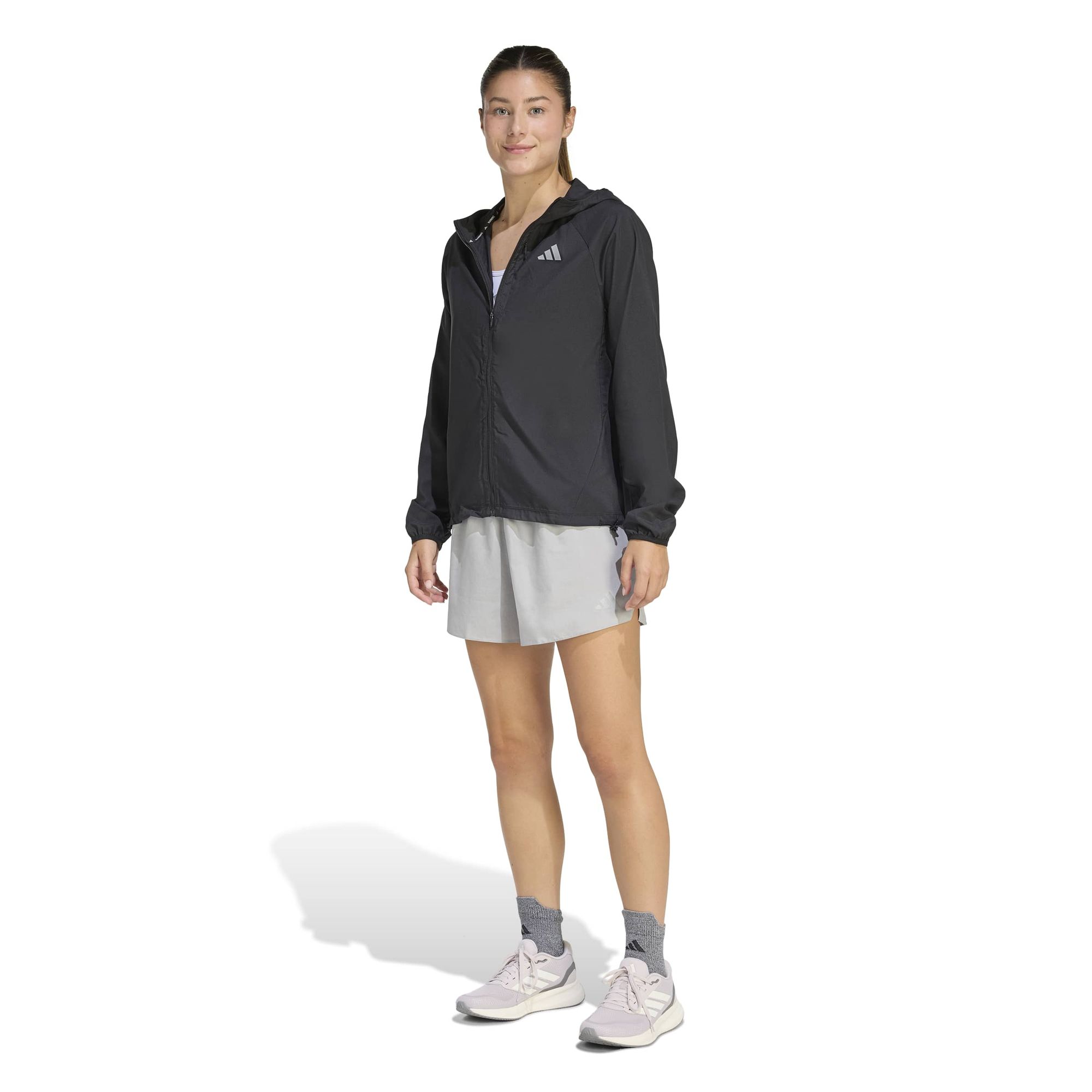 Die weitenregulierbare Kapuze macht diese Jacke zu einer guten Wahl bei wechselhaftem Wettern und das reflektierende adidas Performance Logo sorgt für Sichtbarkeit und sportliche Authentizität. Mach dir den Geist von adidas zu eigen mit einer Jacke, die dich auf deinem Weg unterstützt – egal, ob du gerade erst anfängst zu laufen oder schon erfahren bist.