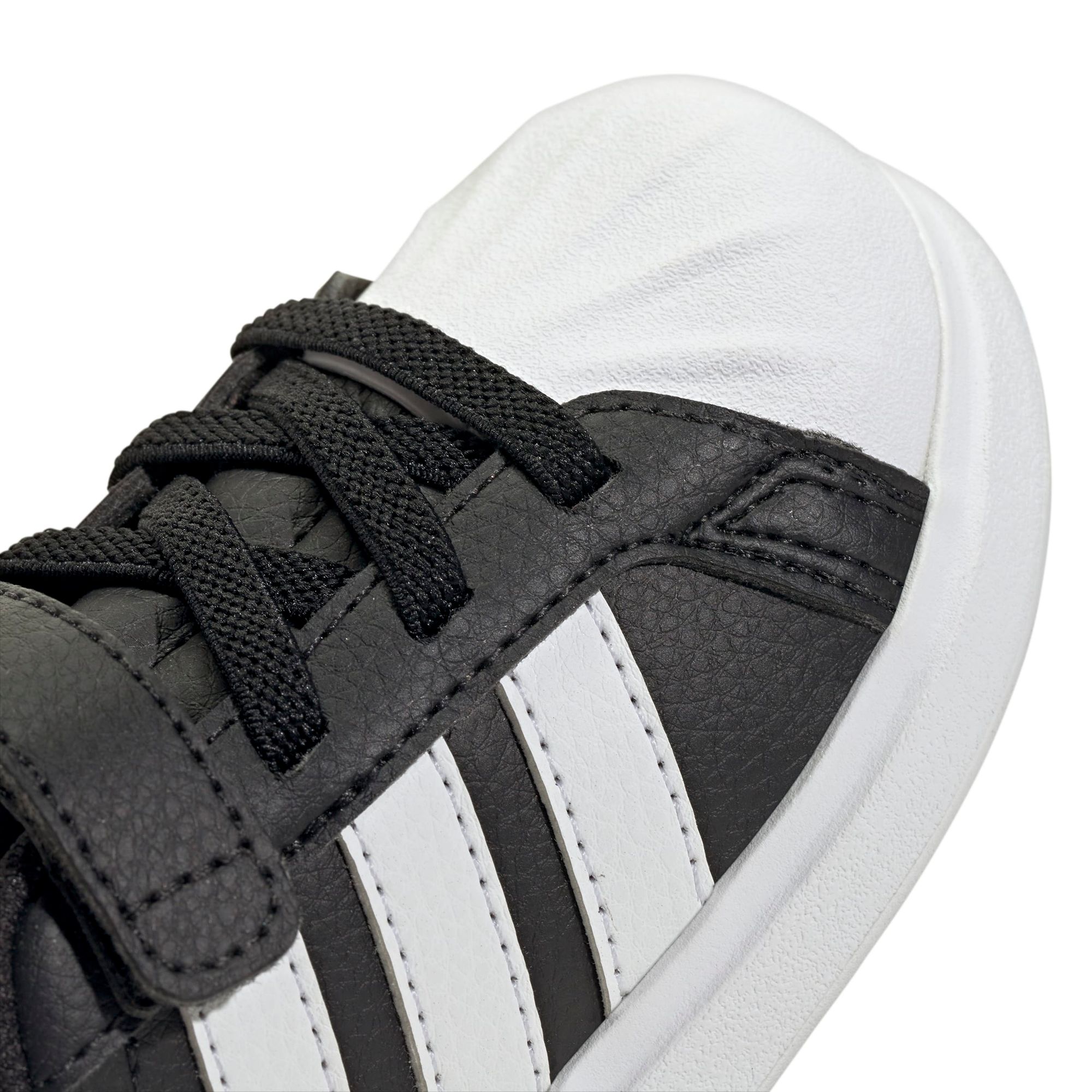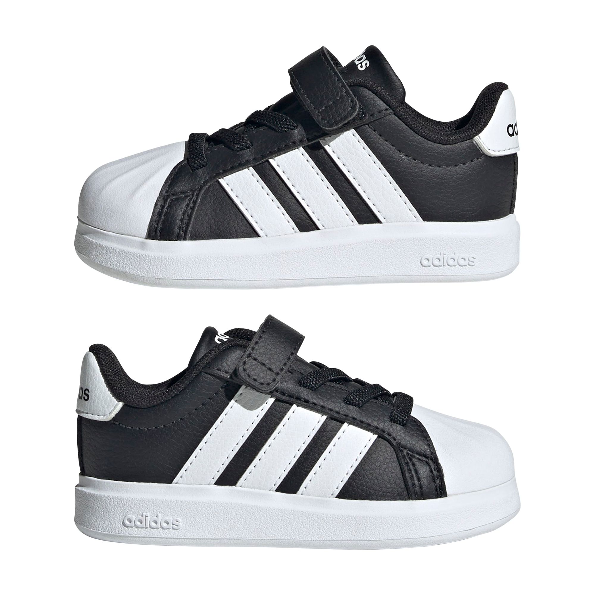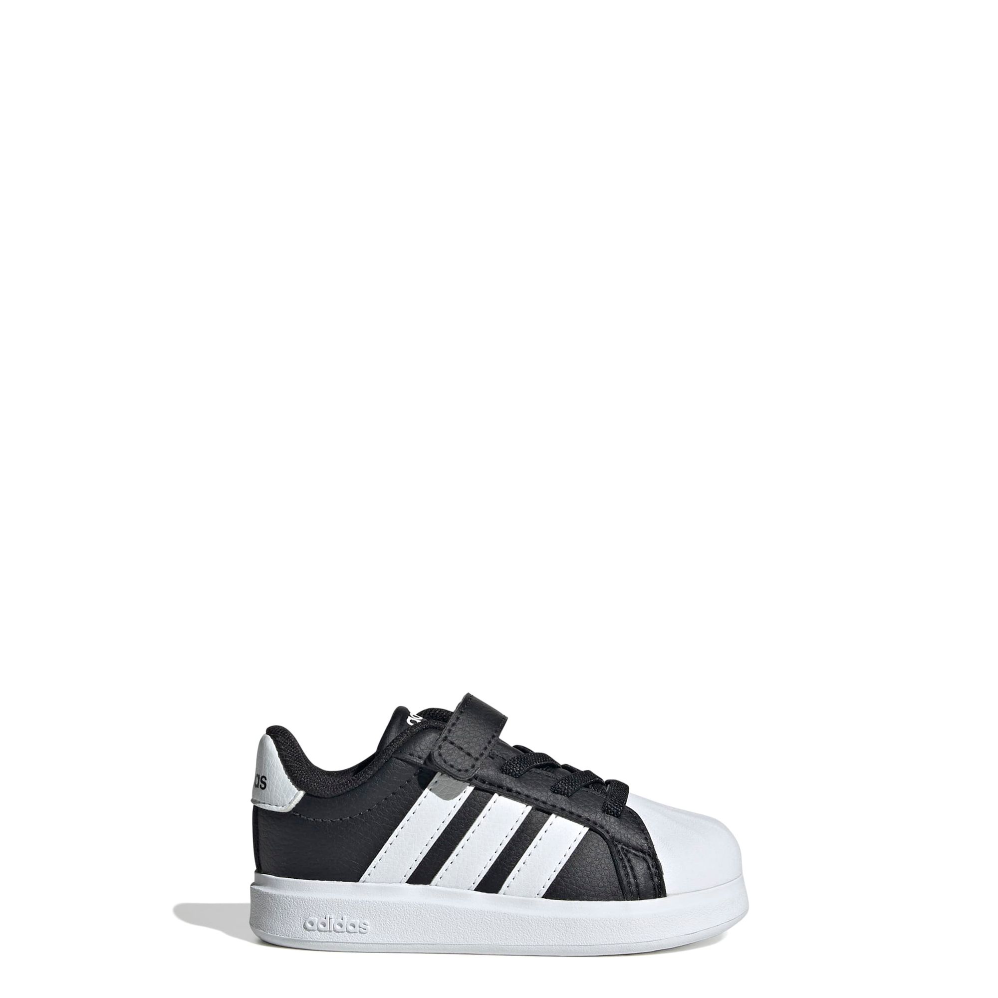 Man ist nie zu jung, um coole Sneaker zu tragen. Dieser Schuh für Babys und Kleinkinder von adidas bringt den Look mit der Zehenkappe aus Gummi in die nächste Generation. Dank der Klettverschlussriemen, die das An- und Ausziehen erleichtern, ist dein Kind im Handumdrehen bereit fürs nächste Abenteuer. Die Gummiaußensohle sorgt für Stabilität, wenn es seine Welt erkundet.