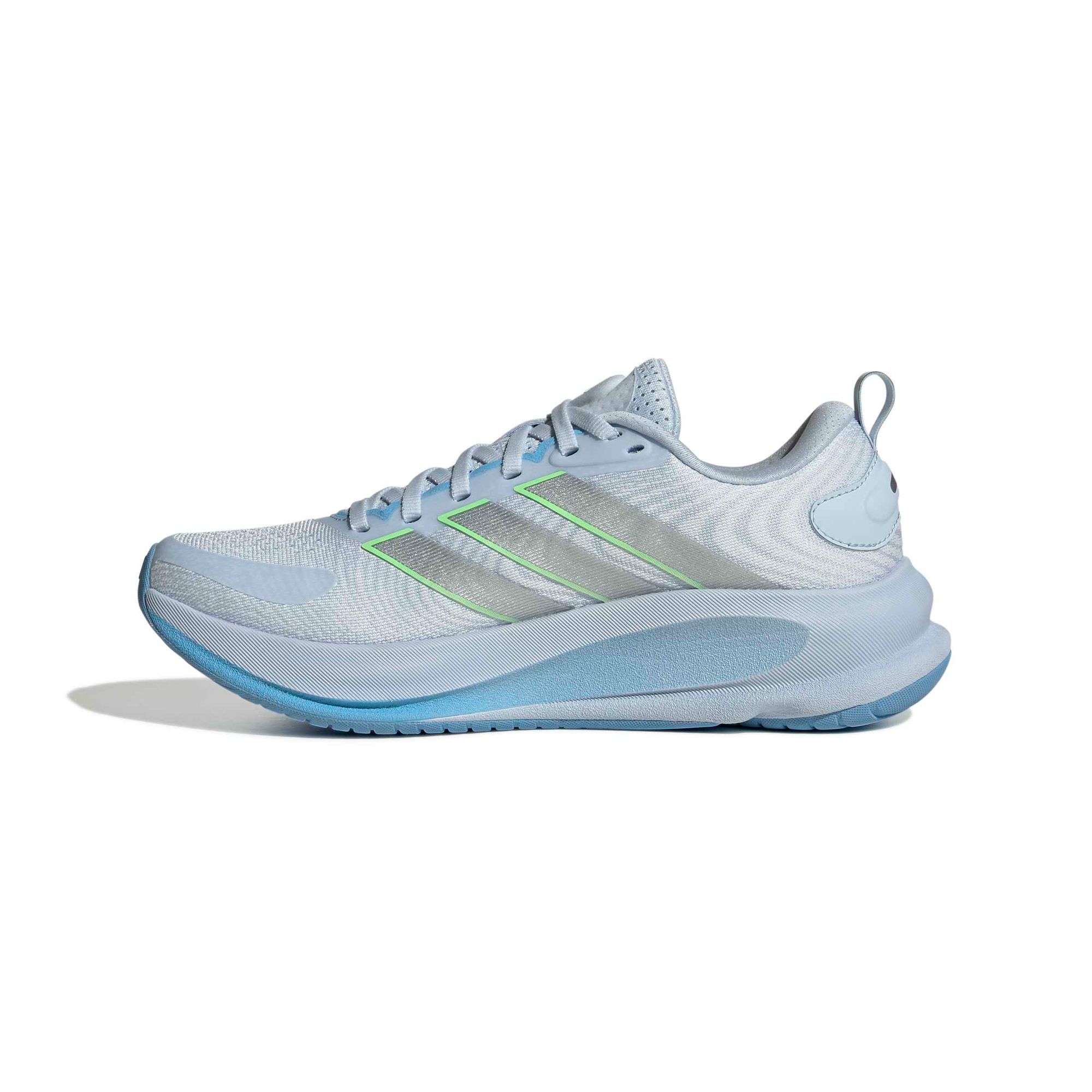 Die durchgehende, leichte Außensohle sorgt für dynamischen Grip, damit du sowohl auf trockenem als auch auf nassem Untergrund ein sicheres Gefühl hast. adidas hat die Gummibeschichtung der Vorgängermodelle erweitert und unterstützt den Übergang von der Ferse zu den Zehen, um noch mehr Grip zu bieten.