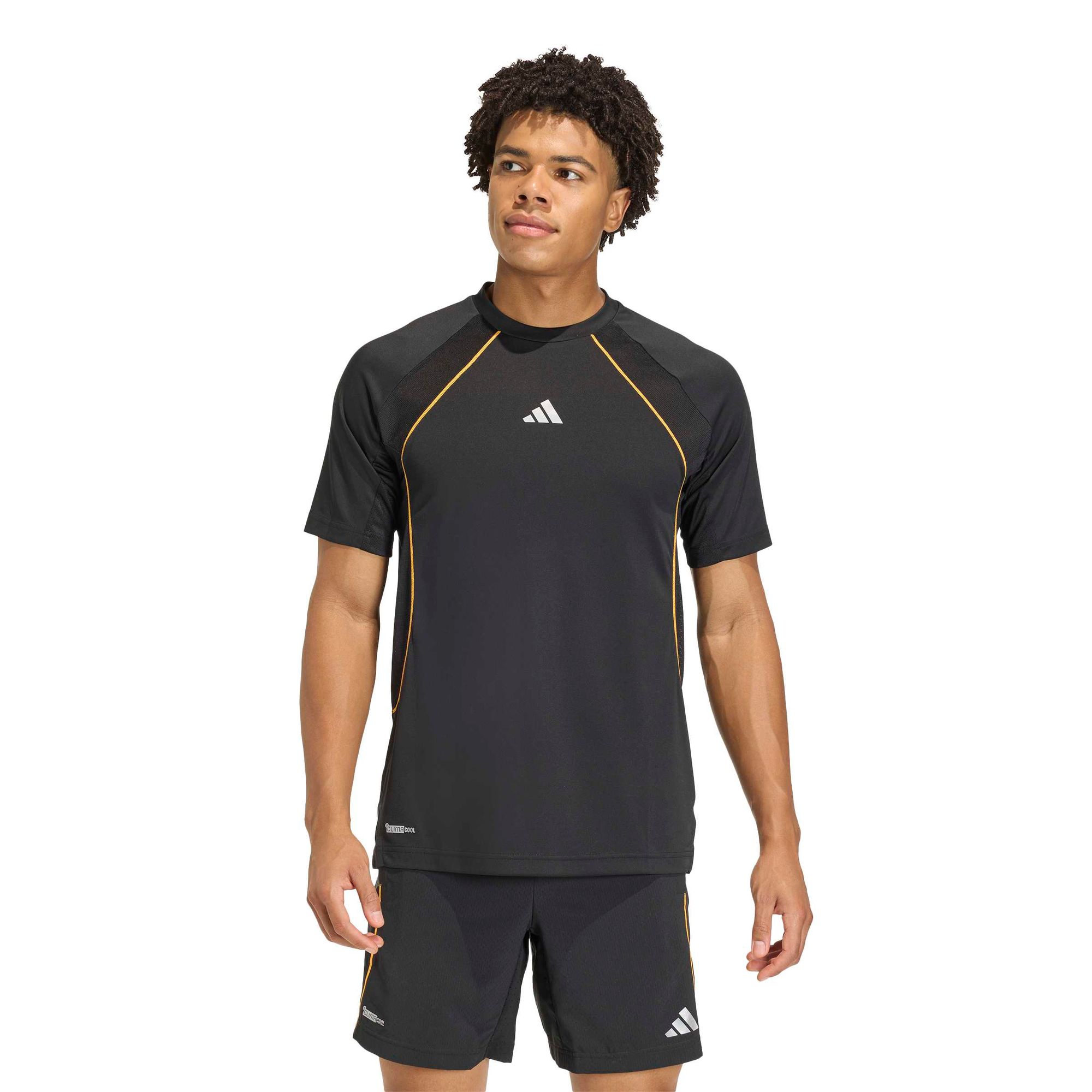 Mit diesem Workout-T-Shirt von adidas geht‘s auf ins nächste Training. Das Design ist ein Mix aus leichter Popeline und luftigem Mesh, mit glänzenden Details für zusätzliche Style-Punkte. CLIMACOOL leitet Feuchtigkeit von der Haut ab und gewährleistet ein kühles und trockenes Tragegefühl – keine Ablenkung, nur Performance.