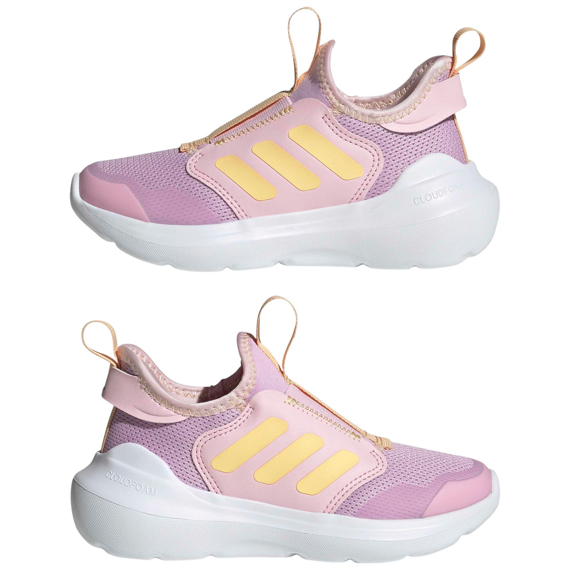 Vom Sport inspiriert. Für jeden Tag gemacht. Dieser adidas Schuh für Kinder kommt mit einer leichten Cloudfoam Zwischen- und Außensohle für ein bequemes Tragegefühl, egal, ob dein kleiner Schatz im Park aktiv ist oder mit Freund_innen durch die Nachbarschaft schlendert. Das Design ohne Schnürsenkel erleichtert das An- und Ausziehen, während der Obermaterialmix genau den richtigen Halt bietet. Die verspielten 3-Streifen an den Seiten versprühen außerdem sportliche Vibes.