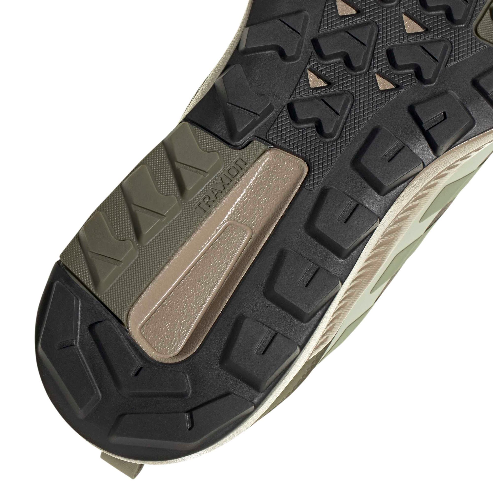 Mit diesem adidas Terrex Wanderschuh kann die Outdoor-Action losgehen. Ob hoch hinaus, flacher Trail, trockene oder nasse Bedingungen – er macht alles mit. Der halbhohe Schaft bietet zusätzlichen Halt im Knöchelbereich und die dämpfende Zwischensohle sorgt für lang anhaltenden Tragekomfort. Bei wechselhaften Bedingungen arbeiten die RAIN.RDY Technologie und die mit dem Obermaterial verbundene Zunge Hand in Hand. Sie schützen dich vor den Elementen und halten deine Füße auch bei Nässe angenehm trocken. Unverzichtbar ist natürlich auch die Traxion Außensohle für optimalen Grip. Und damit du möglichst lange Freude an dem Schuh hast, ist er besonders strapazierfähig.