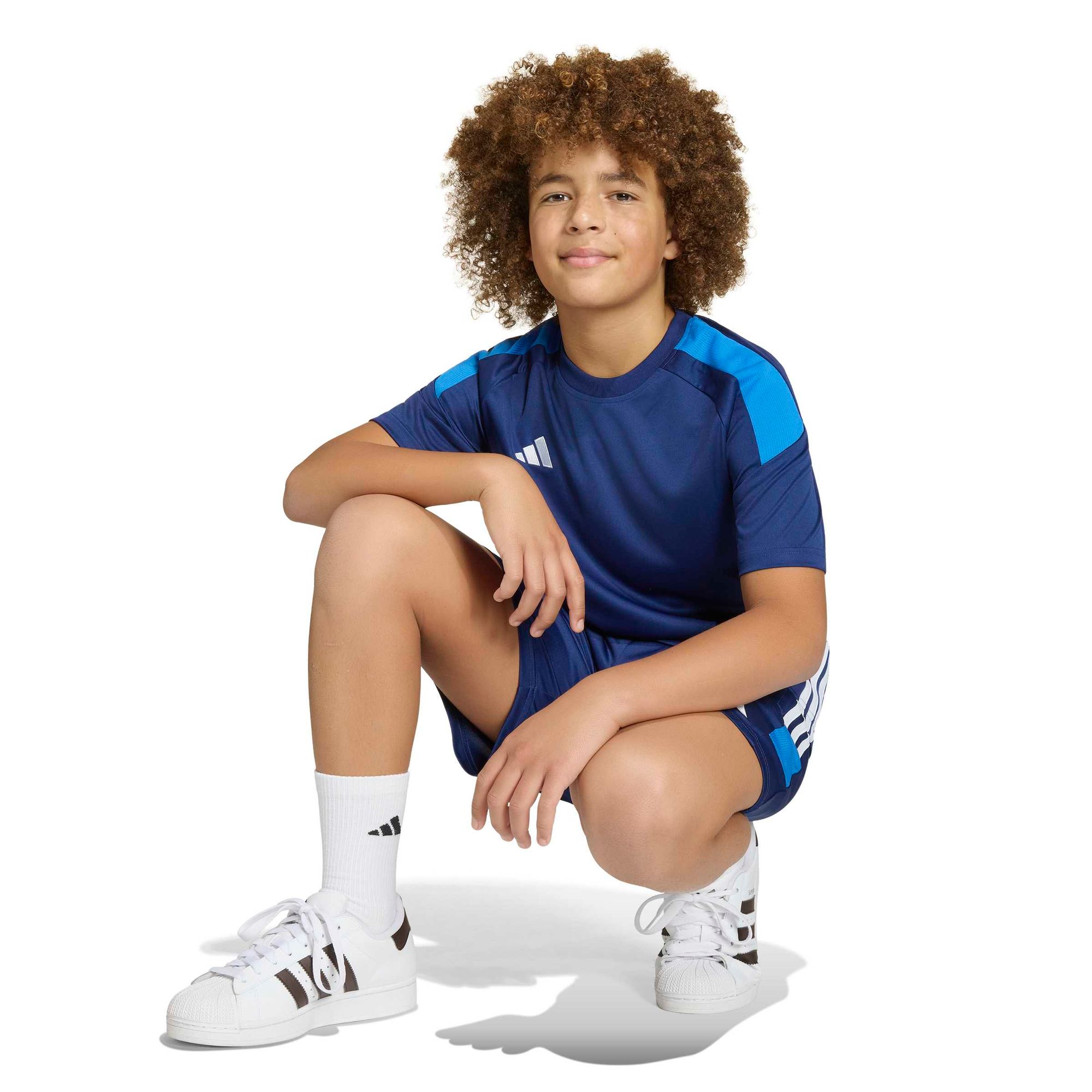 Mit dem Tiro 26 Essentials Trikot können Kids selbstbewusst auftreten. Das Modell wurde speziell für junge Athlet_innen entwickelt und eignet sich ideal für den Schulsport oder für die Freizeit.