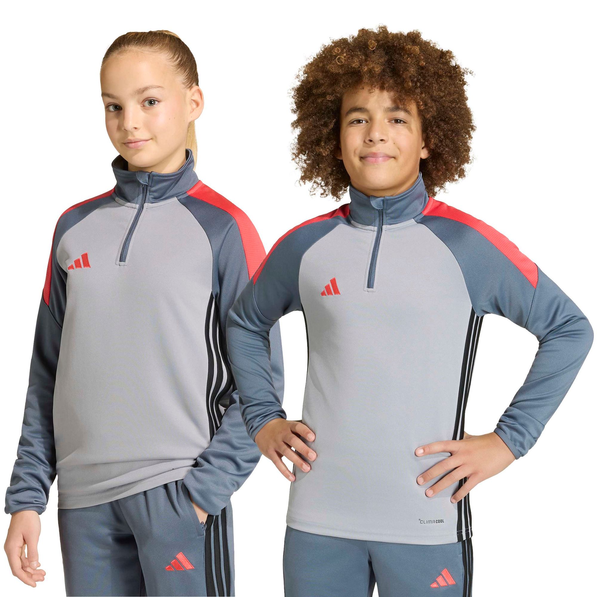 Dieses Oberteil aus langlebigem Doppelstrickmaterial bietet hohen Komfort für aktive Kinder. Der Reißverschluss bis zur Brust erleichtert das An- und Ausziehen, während der Stehkragen für sportliches Flair sorgt. Außerdem gewährleisten die atmungsaktiven Climacool Materialien eine optimale Kühlung.