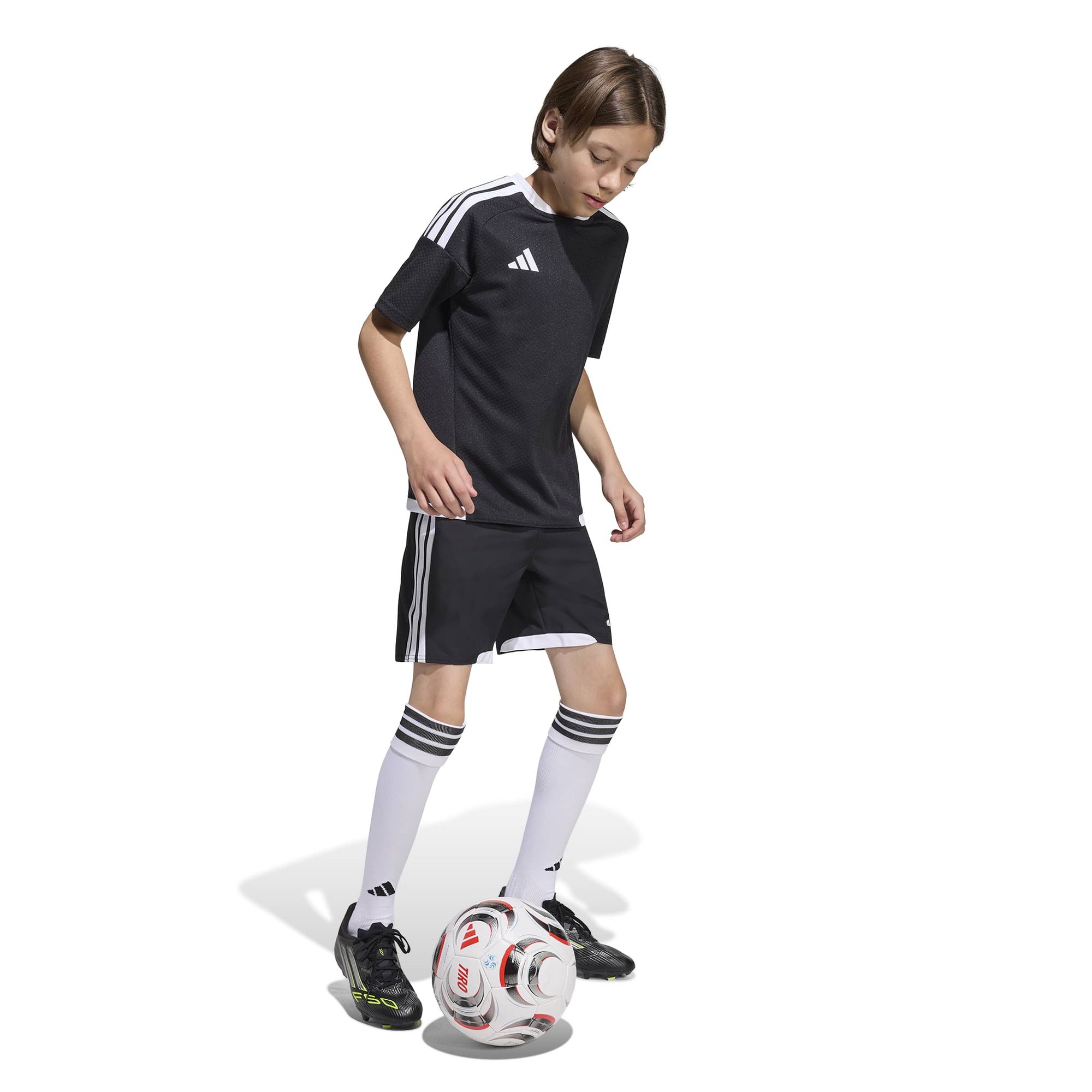 Das flach aufgebrachte Heat-Transfer-Logo vervollständigt den kultigen Look, den adidas Fußball im Jahr 2026 präsentiert. In diesem coolen Trikot, in dem Leistung auf kultiges Design trifft, kann dein Kind selbstbewusst und stilvoll das Spielfeld betreten.