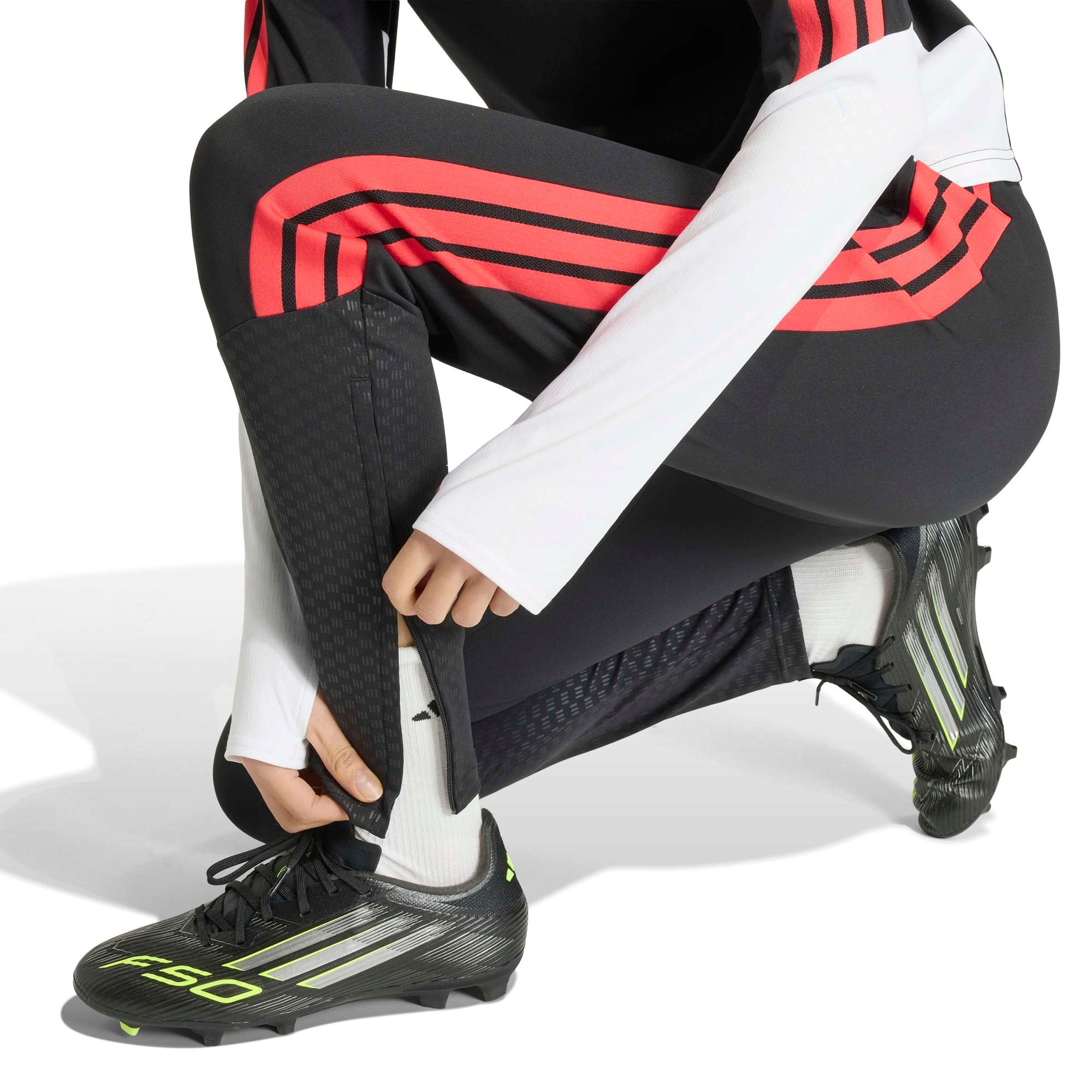 Der mittelhohe Bund mit Kordelzug ermöglicht eine einfache Anpassung, während die schmal zulaufende Beinform für einen stromlinienförmigen, sportlichen Look sorgt, der vom modernen Fußball inspiriert ist. Geprägte Details und die legendären 3-Streifen verleihen dem Look eine klare Verbindung zum Fußballerbe von adidas.