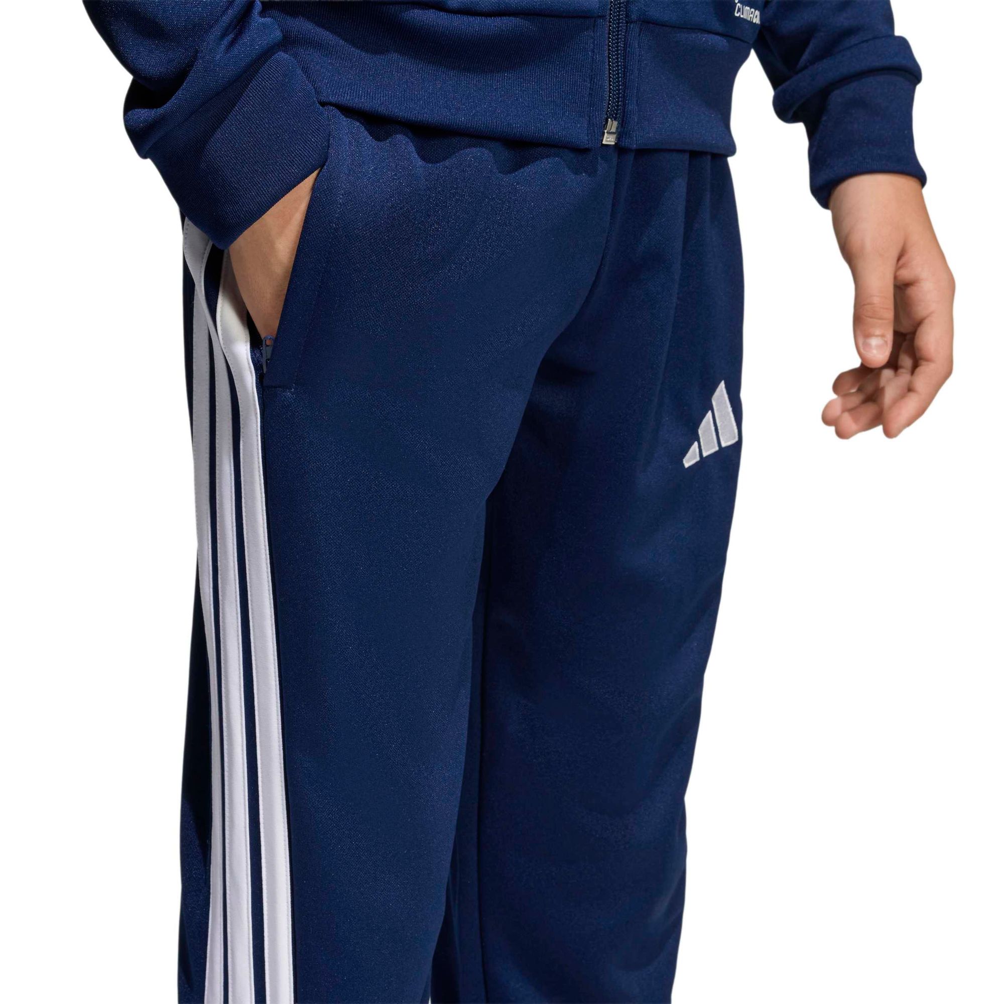 Die Tiro26 League Trainingshose Regular ist speziell für angehende Fußballstars gemacht. Sie ist von den Trikots der Profis inspiriert und punktet mit einer schlanken Silhouette, seitlich umlaufenden Einsätzen und einem mittelhohen Bund, der sicher sitzt.