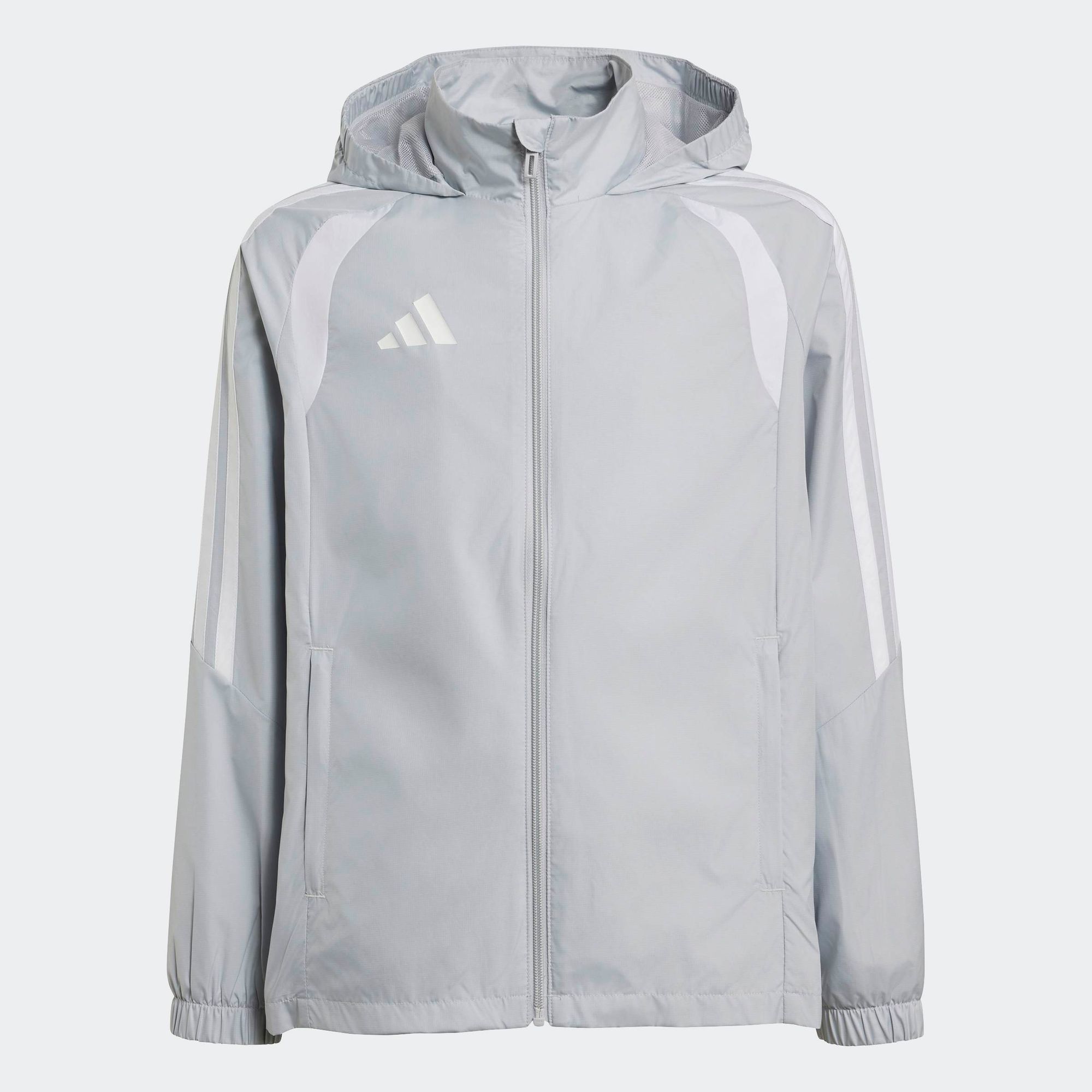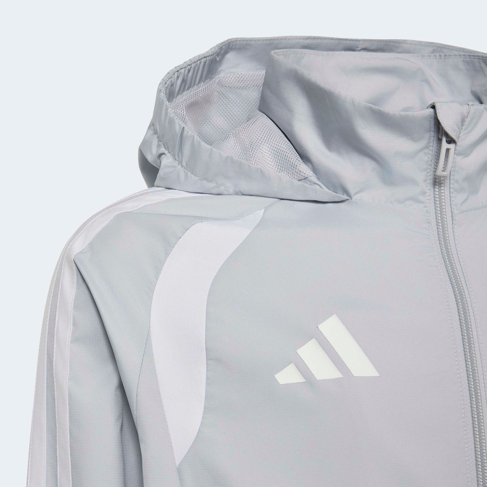 Diese leichte, verstaubare Jacke, die Schauer abwehrt und den Wind fernhält, vereint Stil und Funktionalität. Das schlichte, sportliche Design spricht modebewusste Kinder an. Mit den ikonischen 3-Streifen an den Armen setzt das Modell auf und neben dem Spielfeld ein Zeichen.