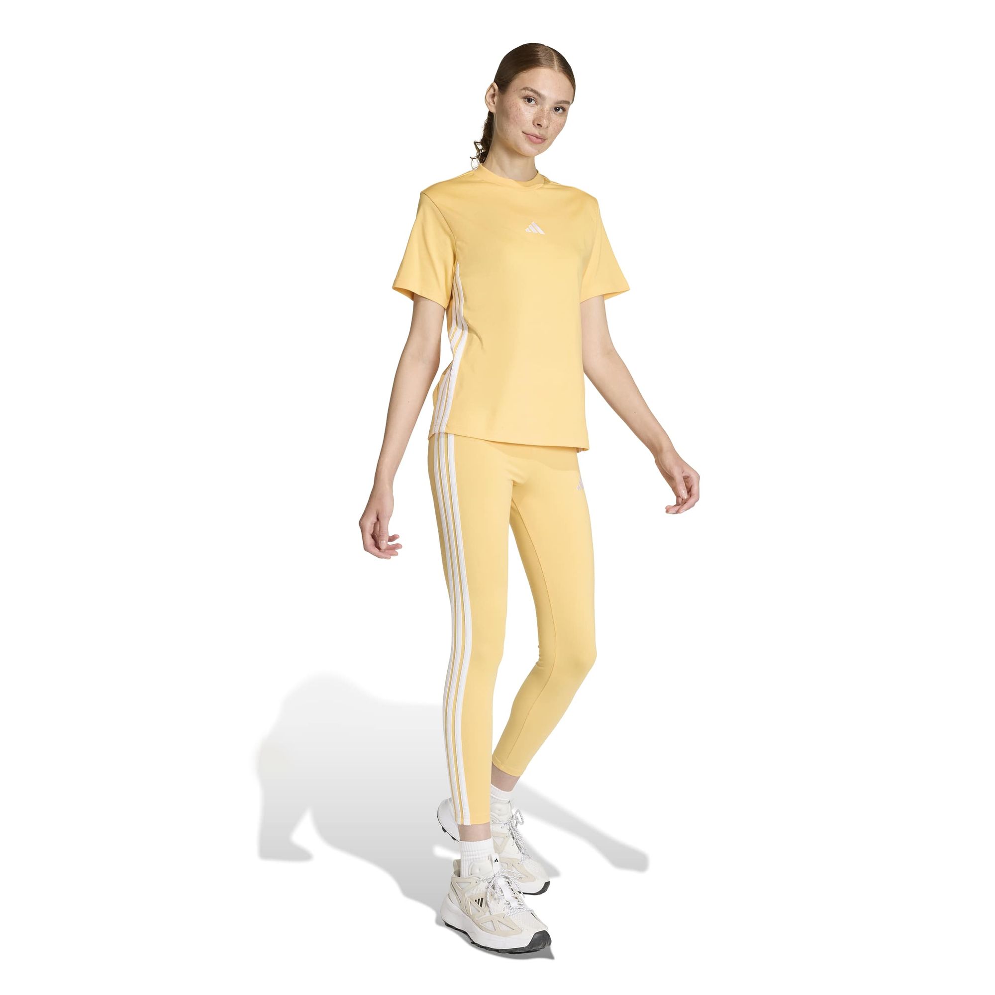 Bei diesem adidas T-Shirt trifft lässiger Style auf Komfort. Egal, ob du Besorgungen machst oder zu Hause entspannst, das weiche Material fühlt sich richtig gut auf der Haut an. Die klassischen 3-Streifen an den Ärmeln verpassen dem Ganzen einen sportlichen adidas Signature-Touch. Kombiniert mit deiner Lieblingsjeans oder -jogginghose wird ein angesagter Look draus.