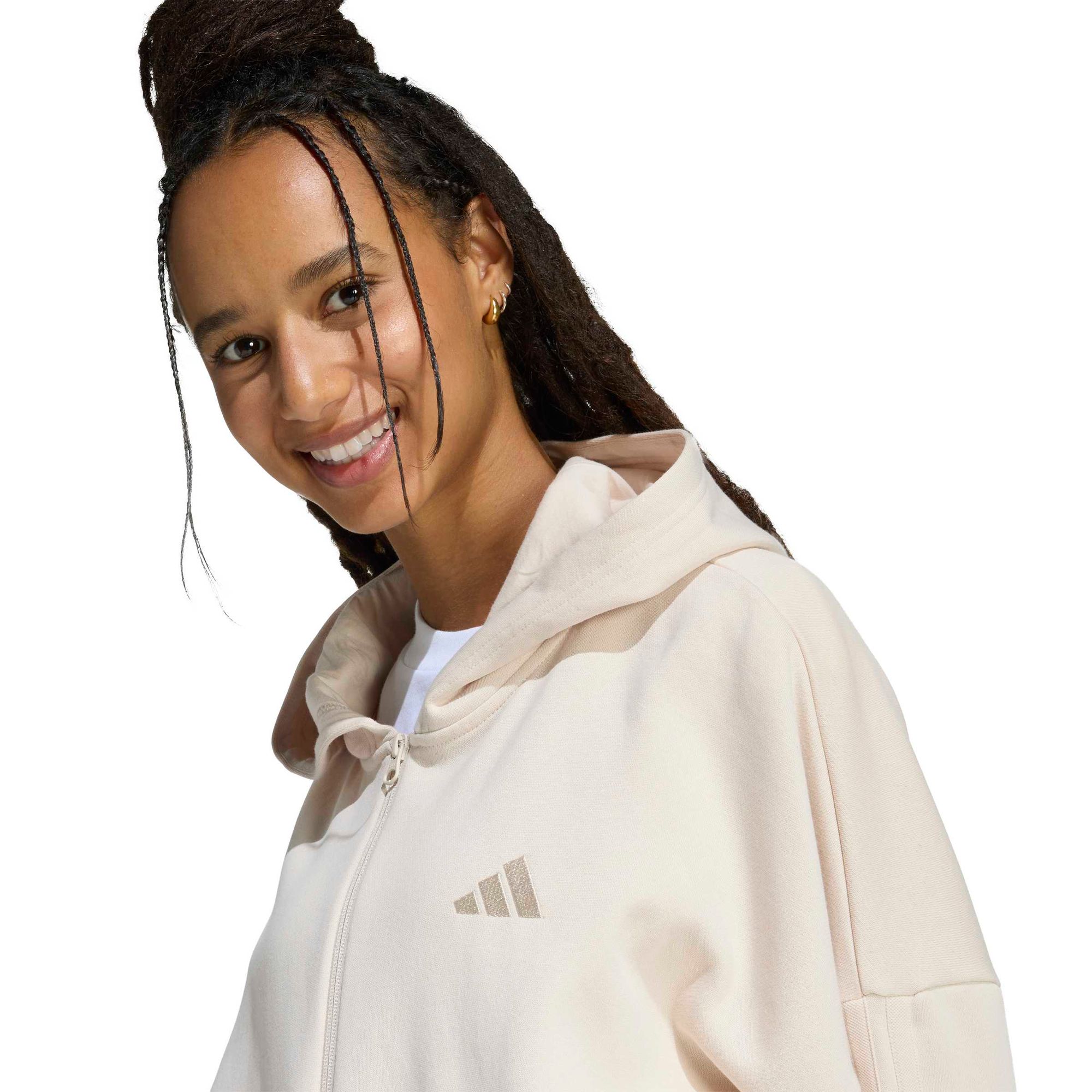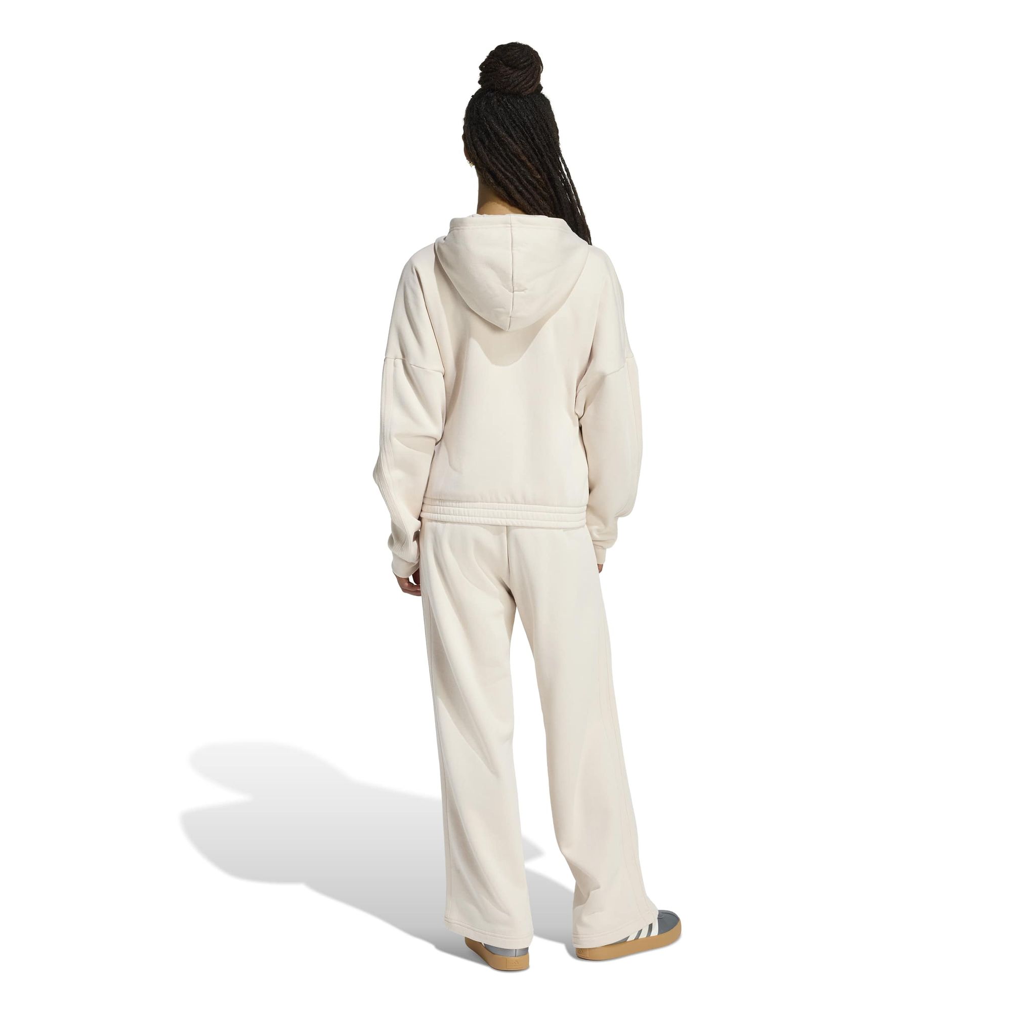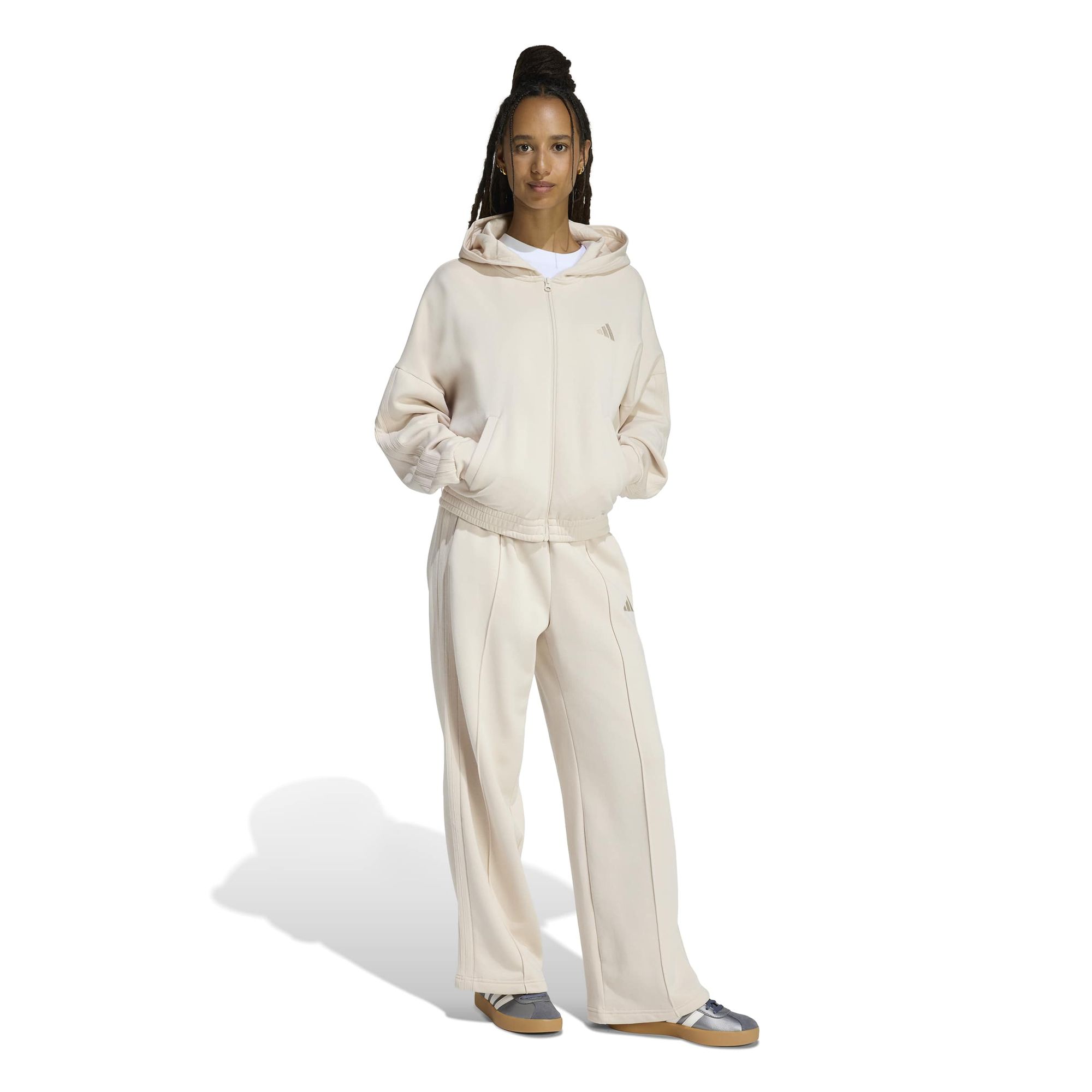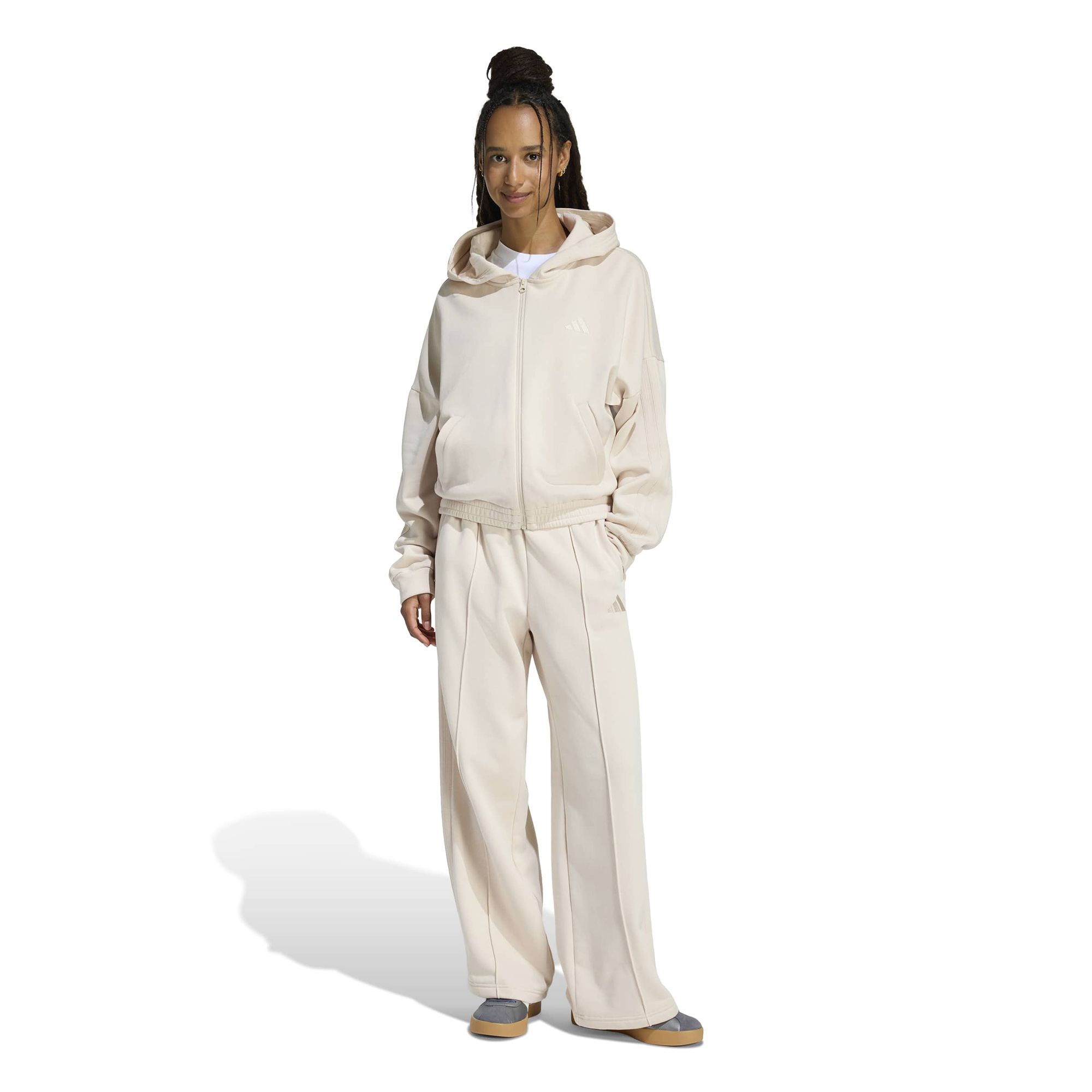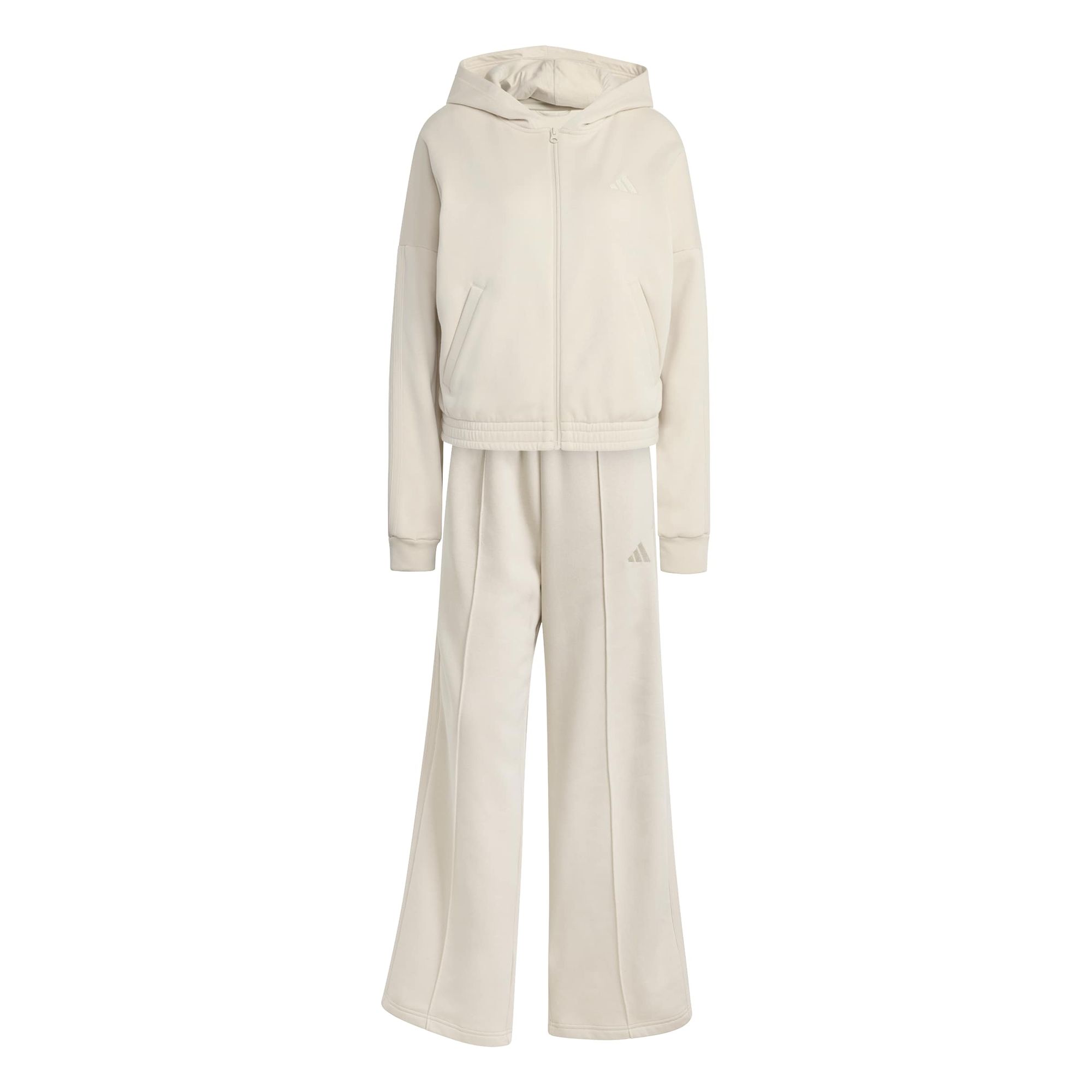 Mit diesem adidas Trainingsanzug bist du stylish unterwegs. Die Kapuzenjacke und die dazu passende Hose mit hohem Bund sorgen für den typischen 3-Streifen Style. Gefertigt aus einem weichen Baumwollmix mit angerauter Innenseite ist das Set perfekt für die Freizeit.
