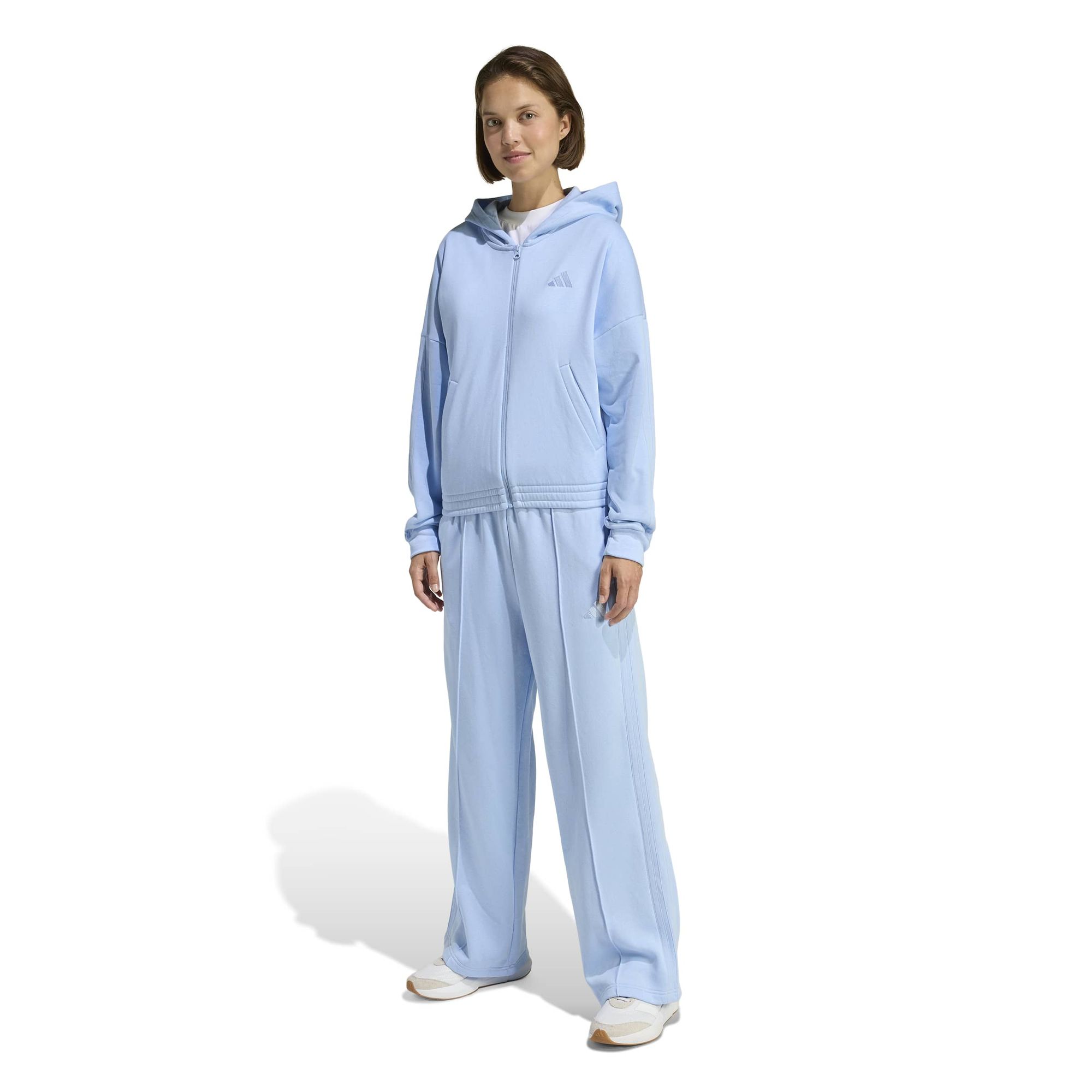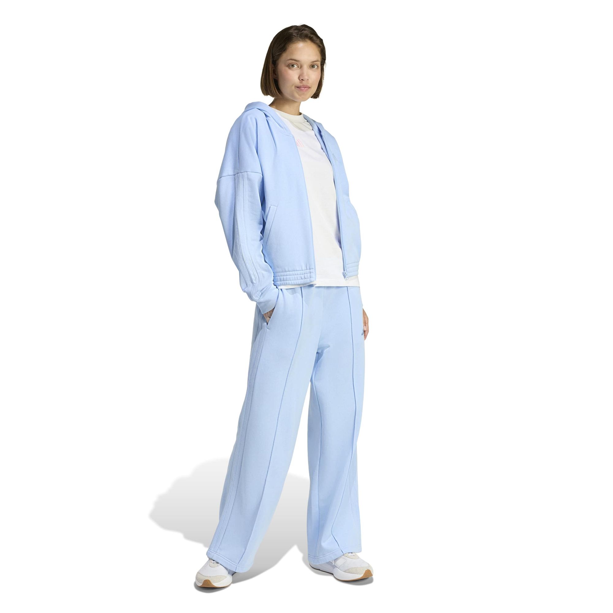 Mit diesem adidas Trainingsanzug bist du stylish unterwegs. Die Kapuzenjacke und die dazu passende Hose mit hohem Bund sorgen für den typischen 3-Streifen Style. Gefertigt aus einem weichen Baumwollmix mit angerauter Innenseite ist das Set perfekt für die Freizeit.
