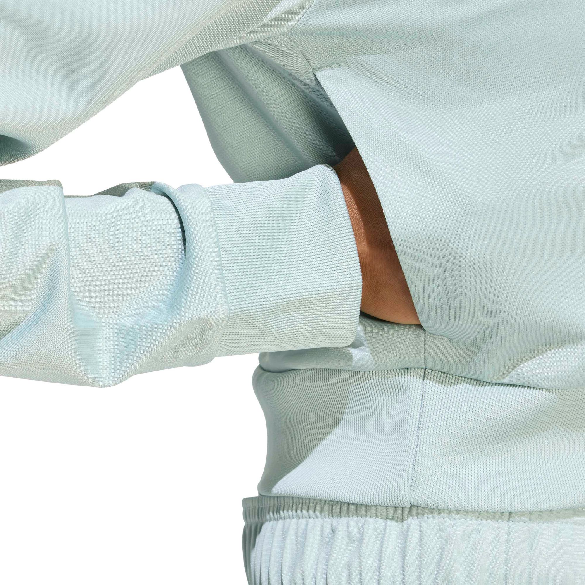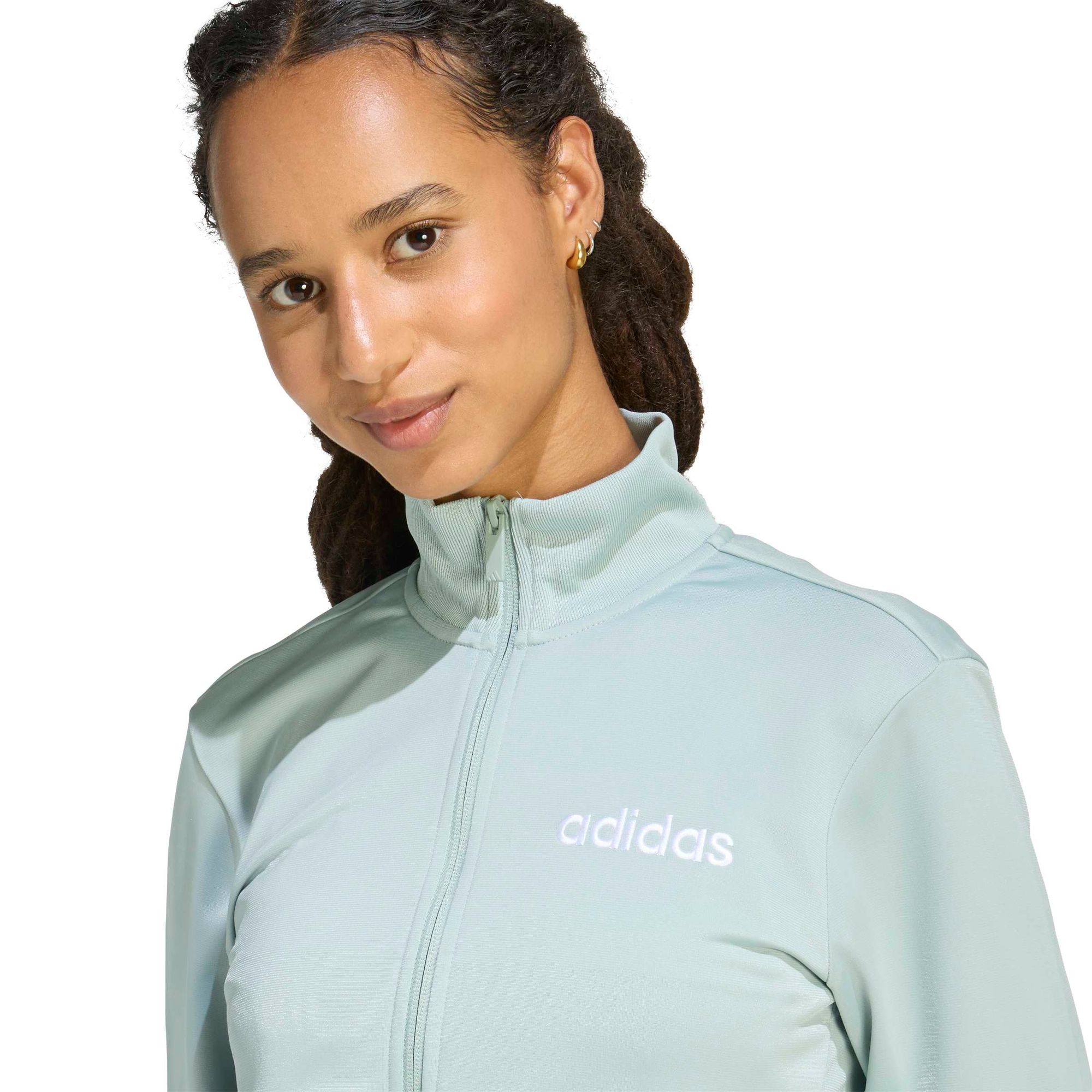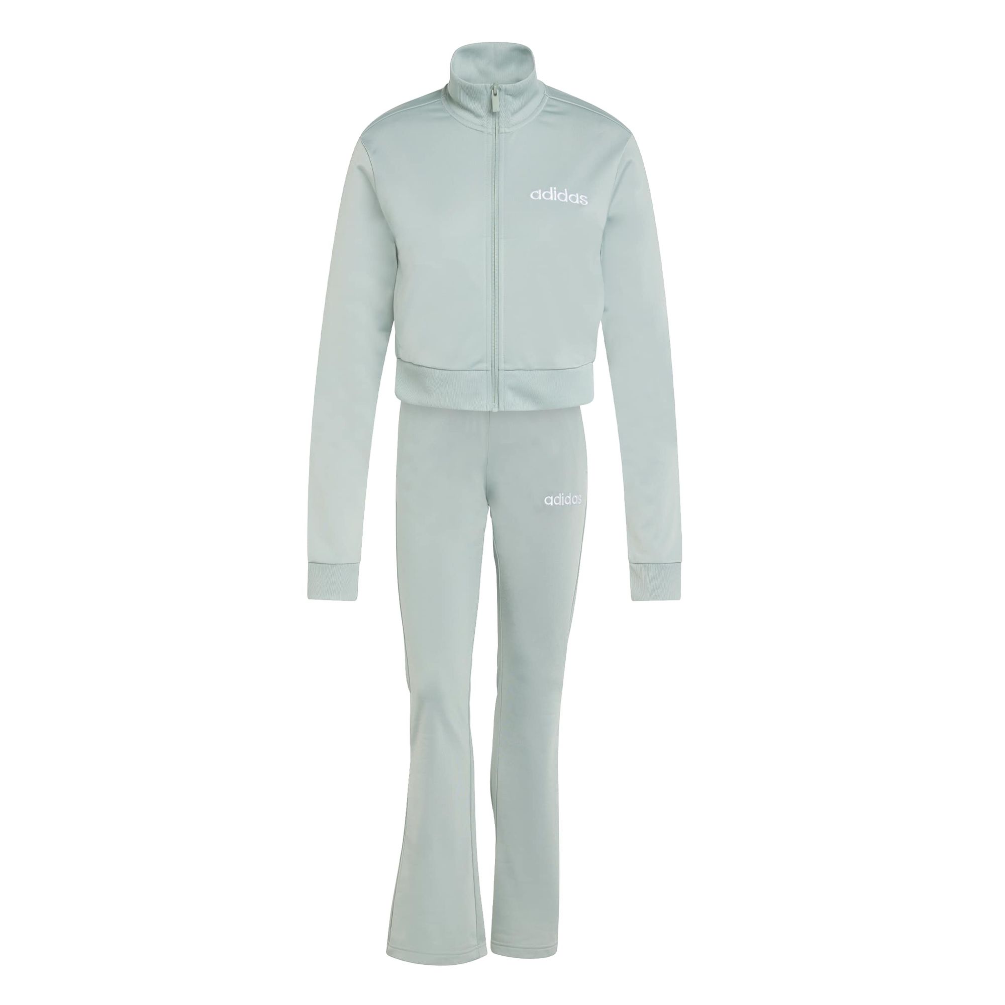 Mit ihrem schmalen Schnitt und dem ausgestellten Bein zaubert die Hose eine schmeichelhafte Silhouette, während die leicht verkürzte Trainingsjacke einen modischen Akzent setzt. Das aufgestickte, linienförmige Logo auf beiden Teilen repräsentiert die Marke adidas.