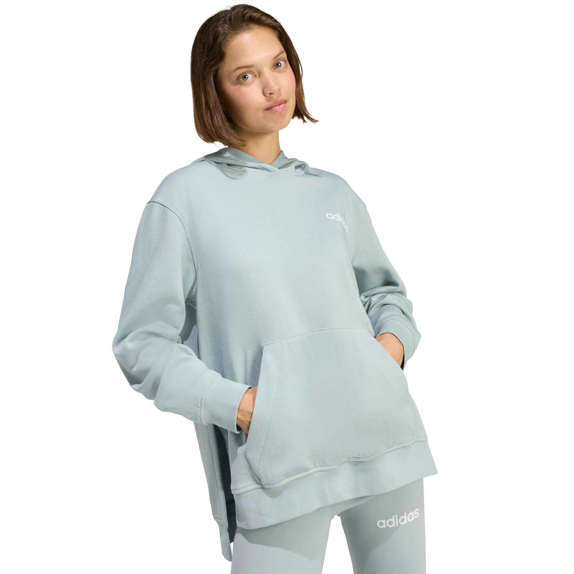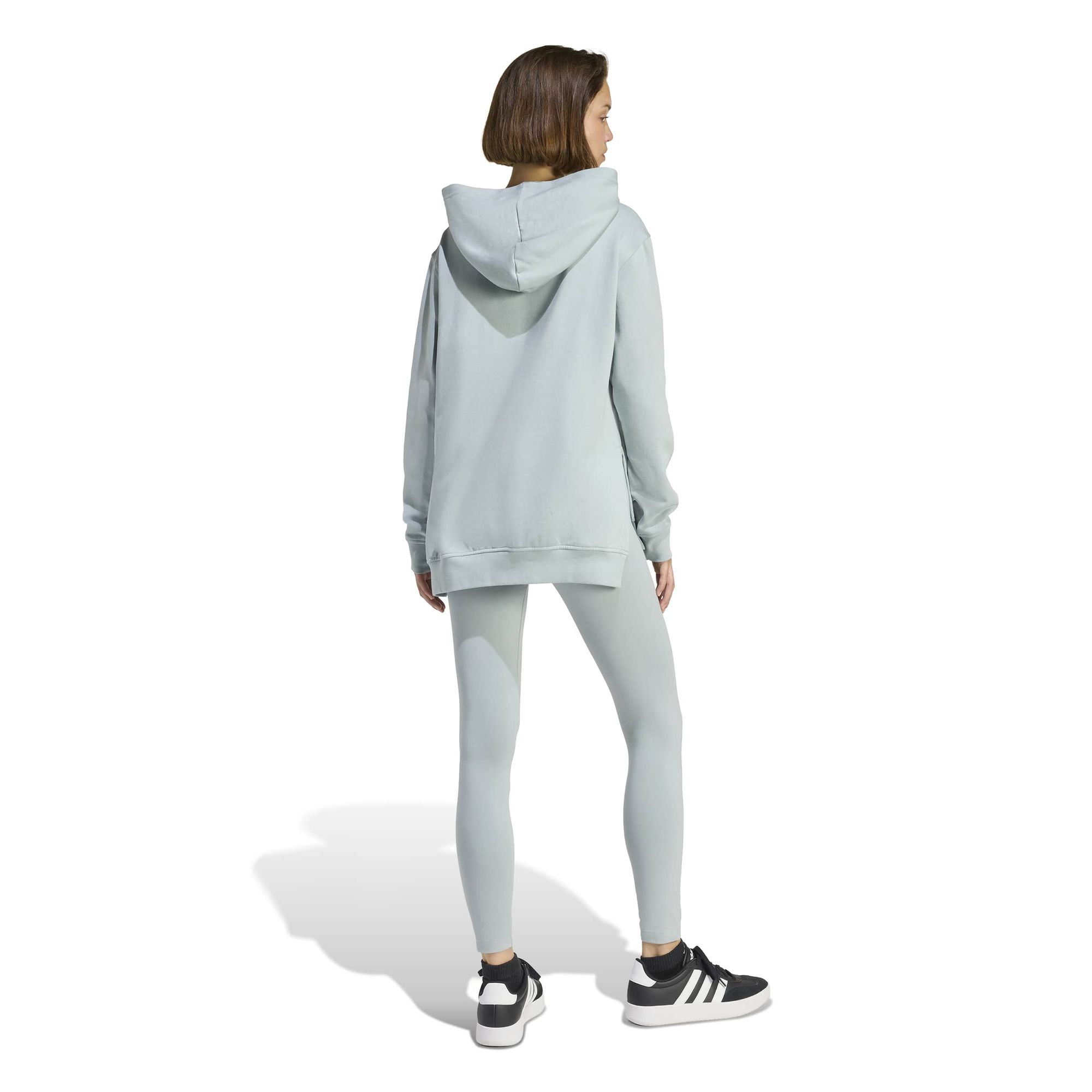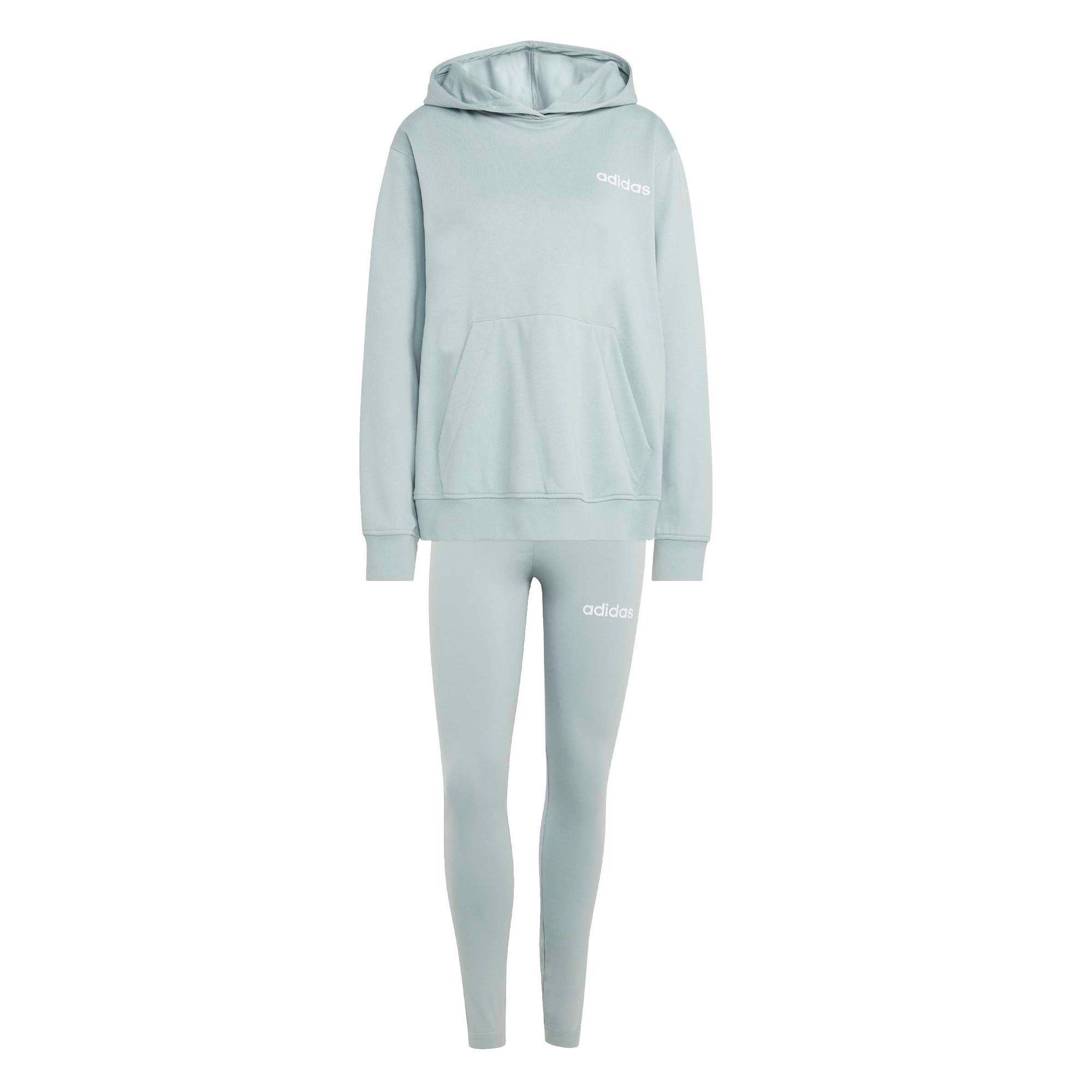 Mit diesem adidas Trainingsanzug kannst du deinen Alltag entspannt angehen. Die Kombi besteht aus einer locker sitzenden Kapuzenjacke mit extra langen Schlitzen an den Seitensäumen, einer geräumigen Kapuze und einer großen Beuteltasche. Die passenden Leggings haben ein weiches, anschmiegsames Tragegefühl und sind ideal für Tage draußen oder Nächte drinnen.