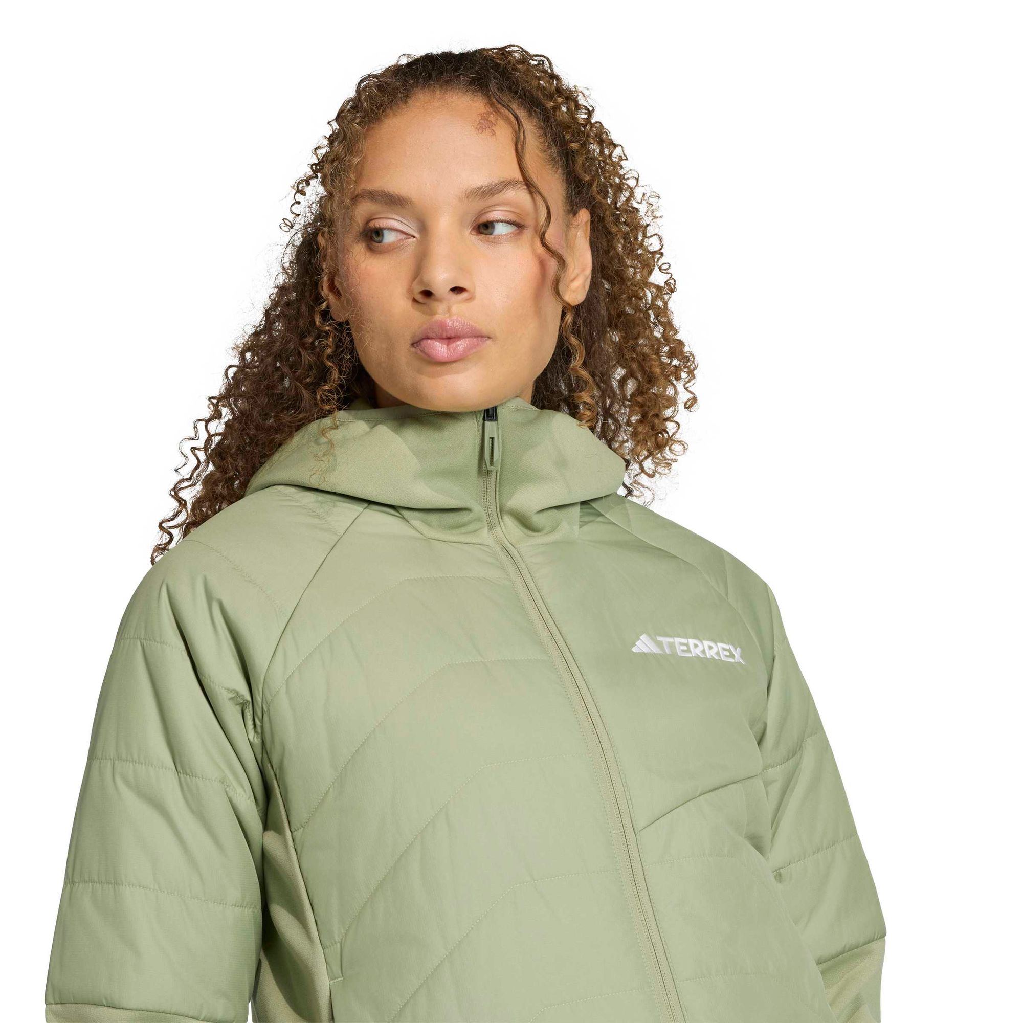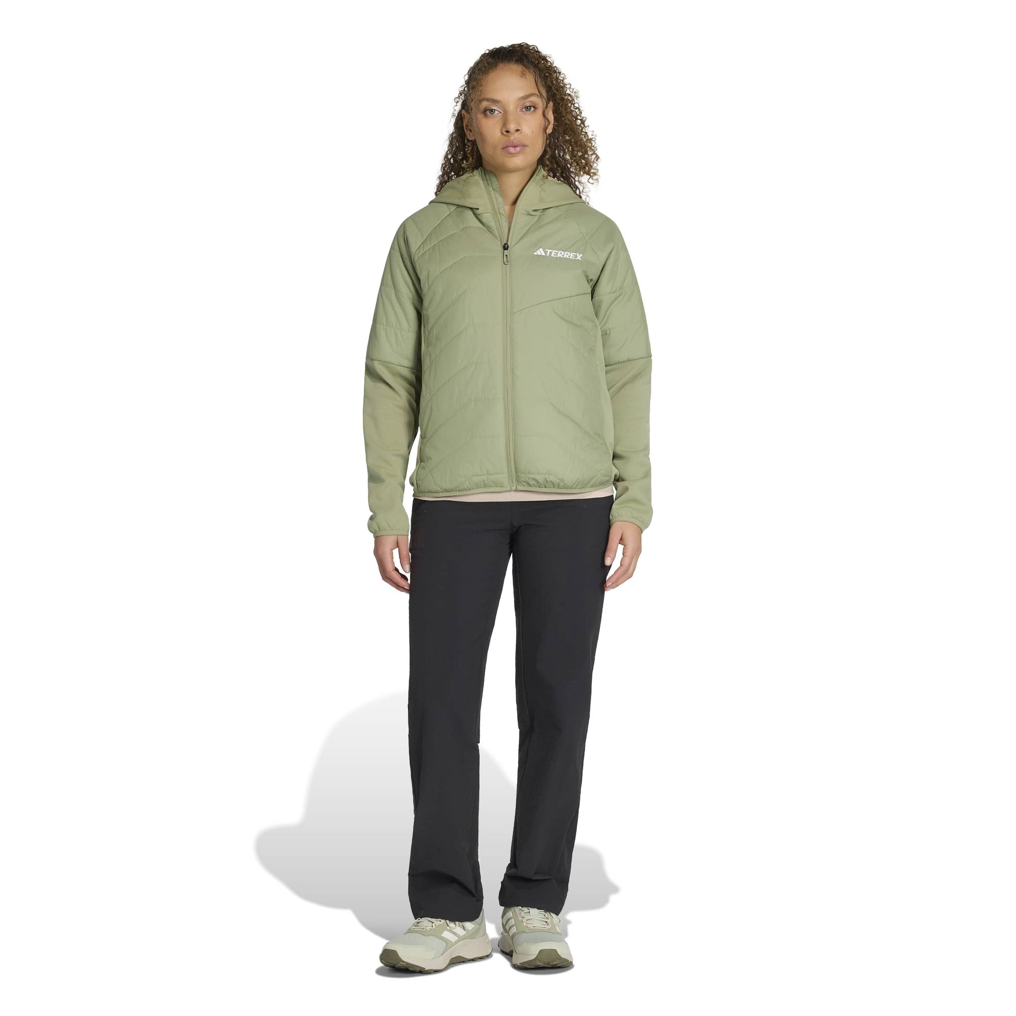 Das Wetter in den Bergen ist mitunter unberechenbar und wechselhaft. Diese isolierte Jacke zum Wandern von adidas Terrex hilft dir, dich an die unbeständigen Bedingungen anzupassen. Das hybride Design verbindet Strick- und Webmaterialien mit einer dünnen Isolationsschicht. Das Modell ist windabweisend und, dort wo es nötig ist, atmungsaktiv, und hält dabei leichten Regen ab. CLIMAWARM speichert die Körperwärme und leitet Feuchtigkeit von der Haut ab für ein warmes und trockenes Tragegefühl – keine Ablenkung, nur Performance. Die Reißverschlusstaschen sorgen dafür, dass du alles Wichtige griffbereit hast, und die Kapuze bietet bei Bedarf zusätzlichen Schutz. Dieses Kleidungsstück besticht durch sein weibliches Bodymapping-Design und verfügt über eine zusätzliche Isolierung an den Oberarmen, die für noch mehr Wärme sorgt.