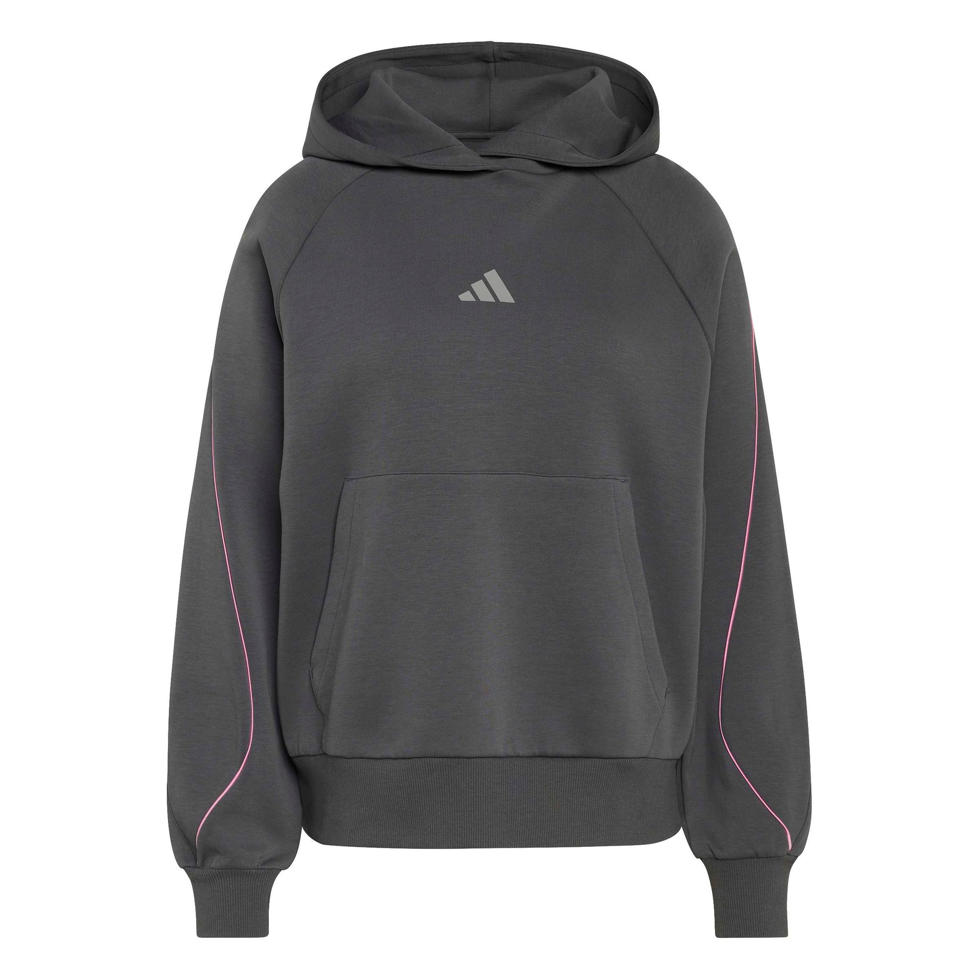Die Satinpaspelierung setzt elegante Akzente, während die Kängurutasche praktischen Stauraum bietet. Dieser Hoodie verbindet die adidas Identität mit sportlichem Spirit und sorgt für selbstbewussten Komfort im Alltag.