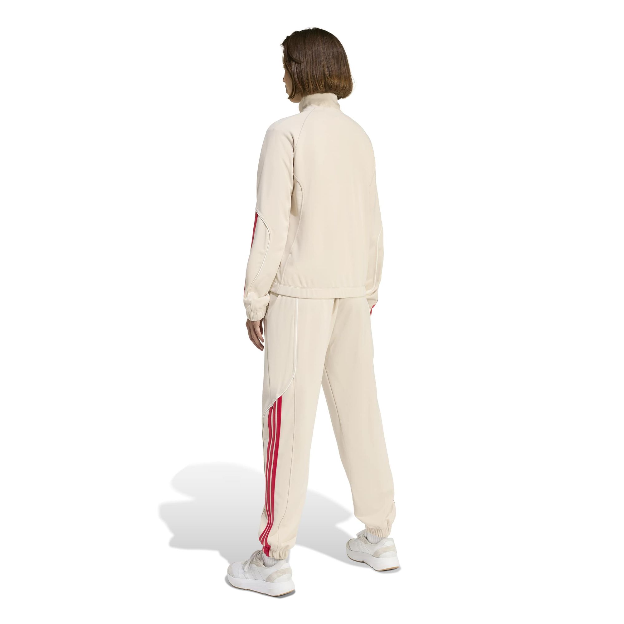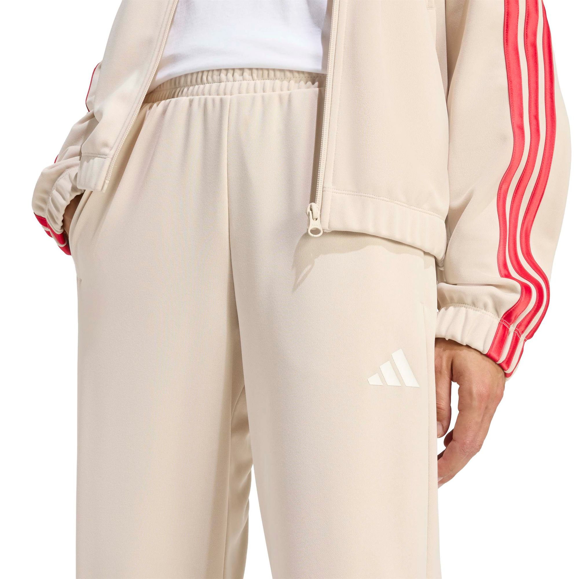 Dieser adidas Trainingsanzug ist ein komplettes Outfit, mit dem du den lässigen Vibe von Sportler_innen und Hip-Hop-Legenden aus den 90ern nachstylen kannst. Der weiche, geschmeidige Doppelstrick ist immer bequem, ob beim Kaffeeholen oder Relaxen auf der Couch. Die Hose hat eine lässig geschnittene Passform, die an den Hüften und Oberschenkeln weit ist und dir viel Bewegungsfreiheit bietet. Reißverschlusstaschen bieten sicheren Stauraum für dein Handy und deine Schlüssel, damit du das Leben unterwegs unbeschwert genießen kannst.