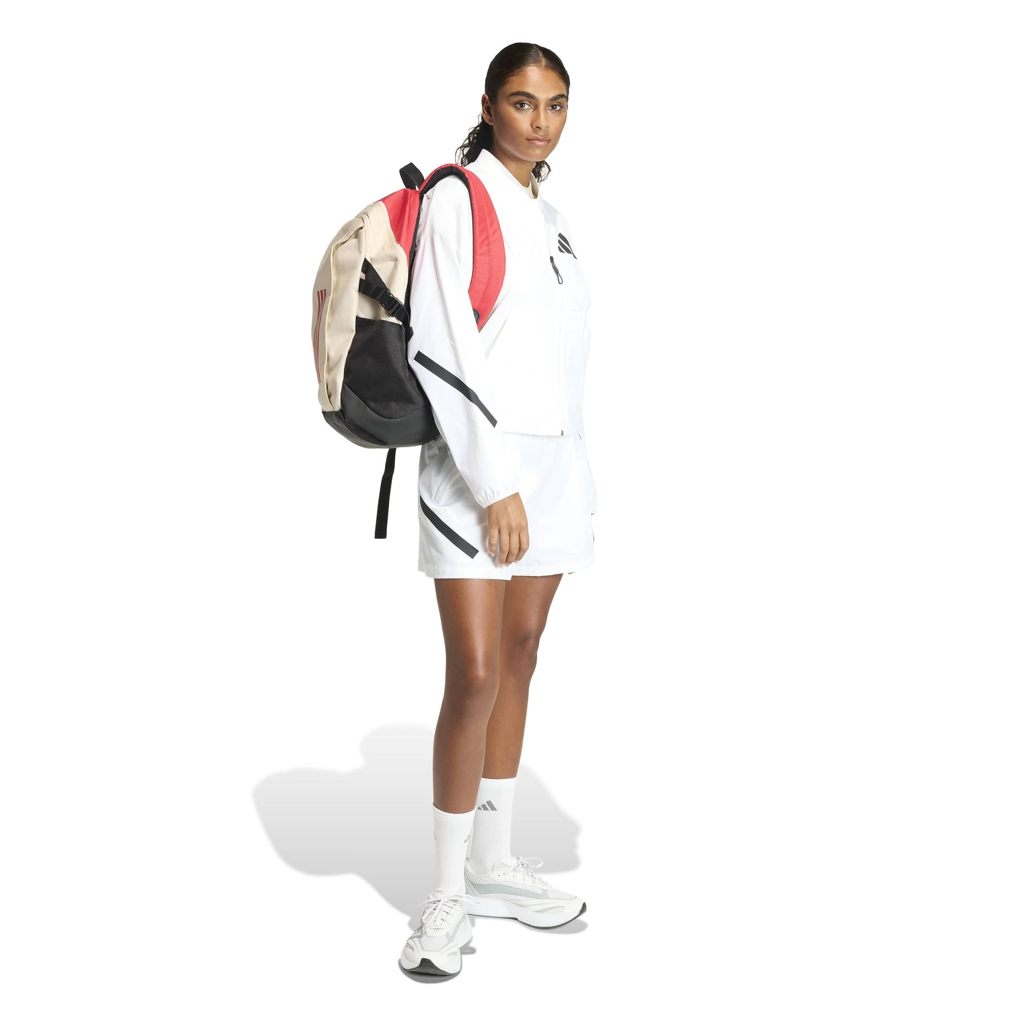 Die lockere Passform sorgt für Komfort und Bewegungsfreiheit. Der von der Technik inspirierte Reißverschluss verleiht der Jacke einen futuristischen Touch, damit du dem Trend voraus bist. Das matte 3-Balken Logo aus Gummi sorgt für einen Hauch von sportlicher Eleganz.