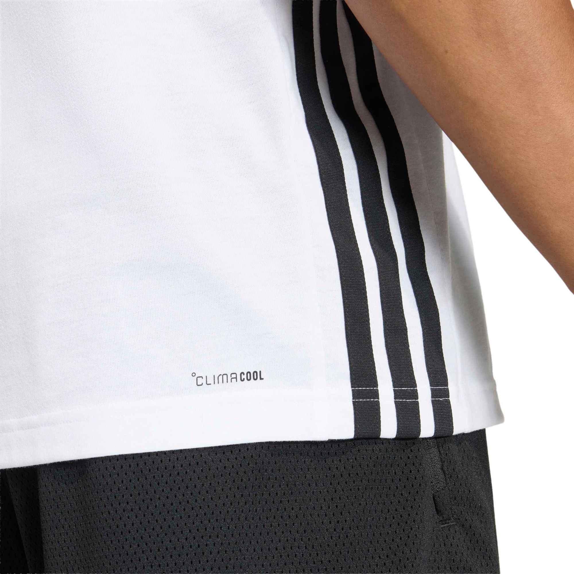 Kühl. Trocken. Bereit. Climacool leitet den Schweiß ab und sorgt für ein kühles, trockenes und ablenkungsfreies Tragegefühl, während das 3-Streifen Band an den seitlichen Einsätzen einen klassischem adidas Akzent setzt.