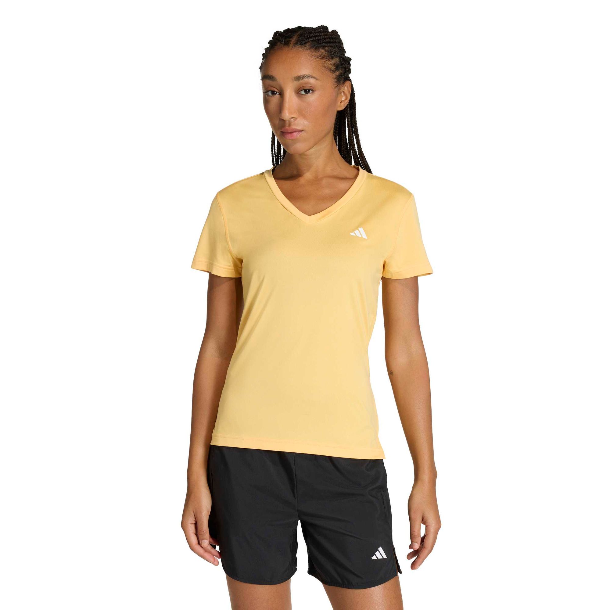 Dieses adidas Oberteil aus weichem Single Jersey besticht durch den stilvollen V-Ausschnitt und dem einem kleinen 3-Balken Logo durch seinen schlichten Stil. Egal, ob du Gewichte stemmst oder joggst, der Fokus liegt auf dir und deinen Fitnesszielen.