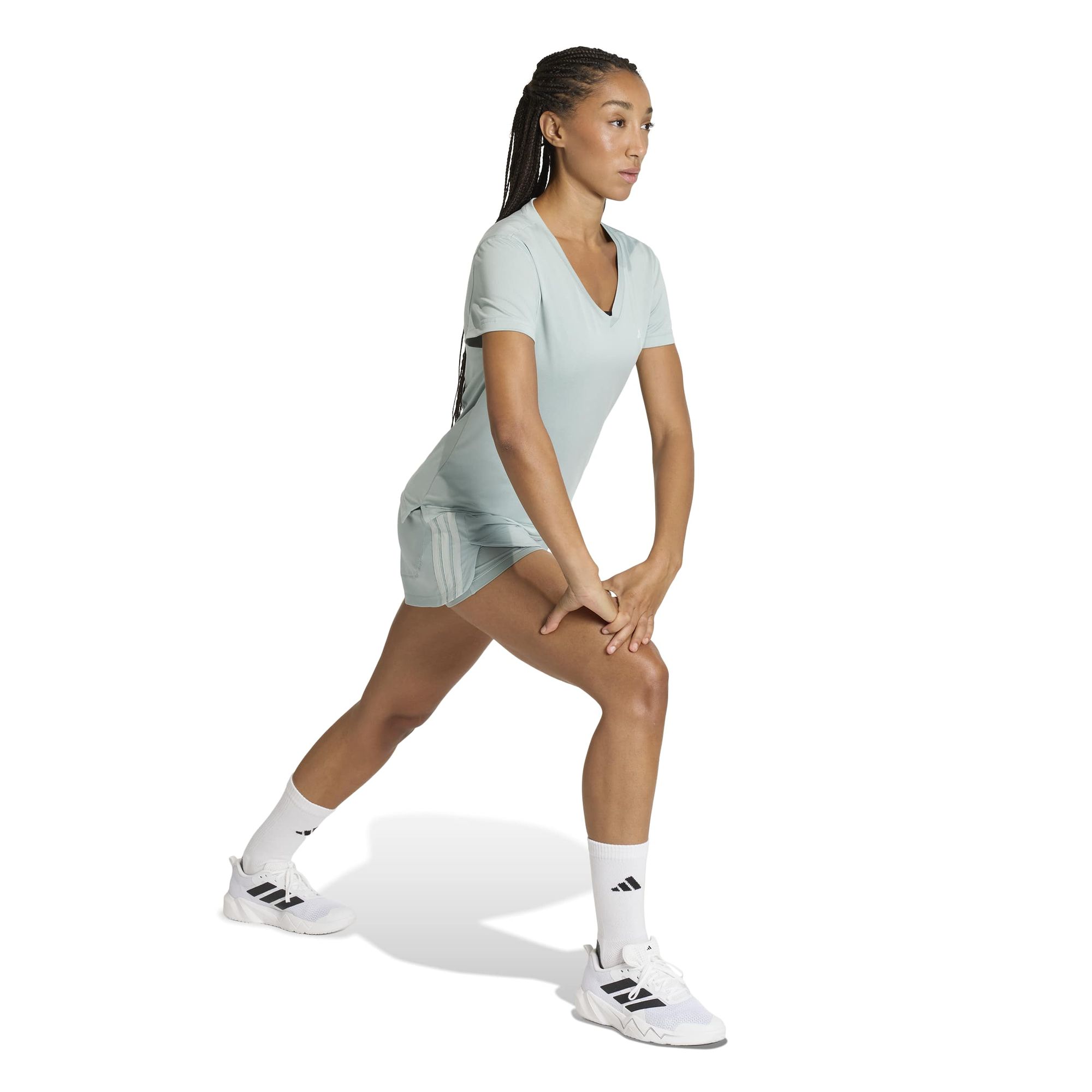 Dieses adidas Oberteil aus weichem Single Jersey besticht durch den stilvollen V-Ausschnitt und dem einem kleinen 3-Balken Logo durch seinen schlichten Stil. Egal, ob du Gewichte stemmst oder joggst, der Fokus liegt auf dir und deinen Fitnesszielen.