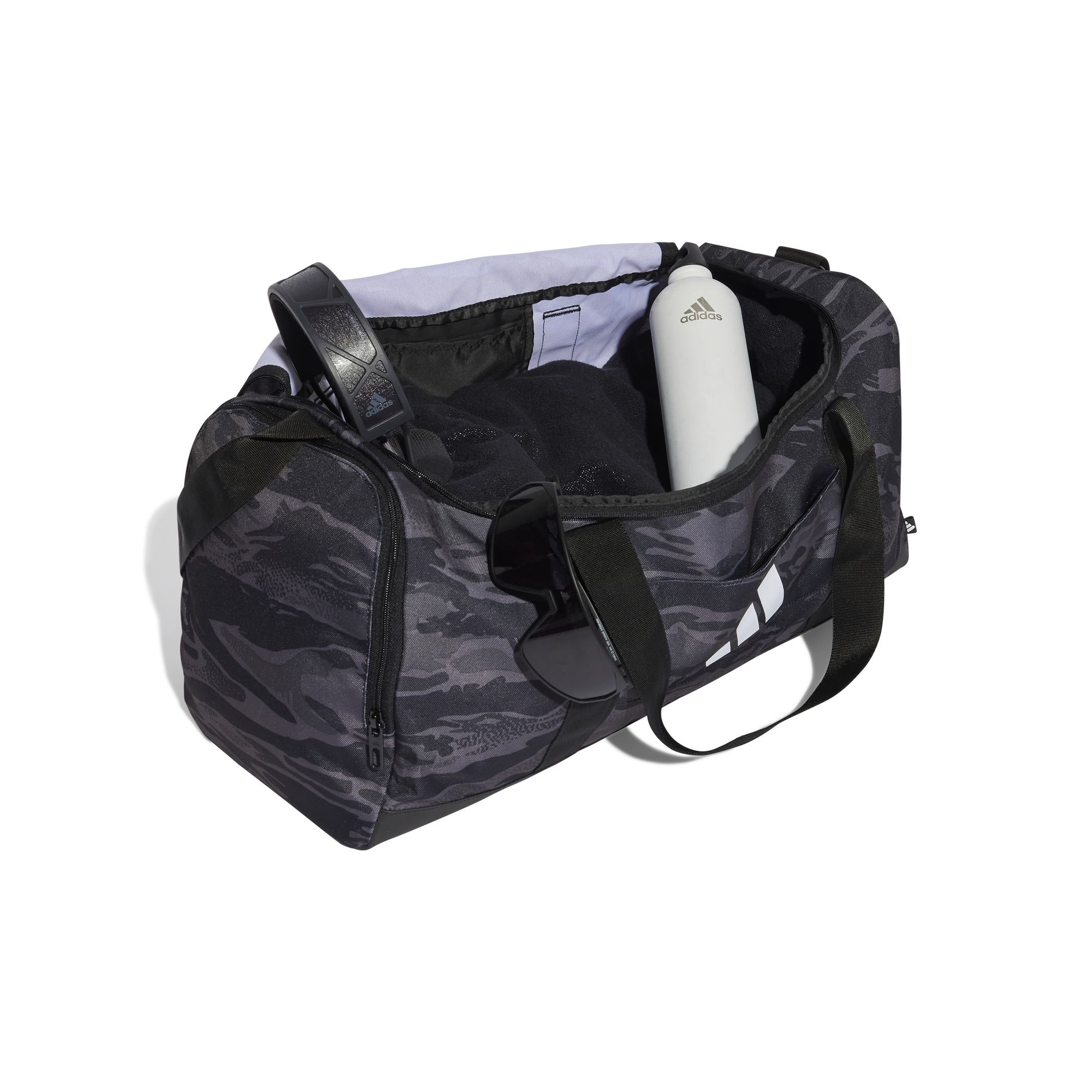 Diese mittelgroße adidas Duffelbag kommt mit einem geräumigen Hauptfach und bietet Platz für alles, was du brauchst. In den zahlreichen Reißverschlusstaschen kannst du außerdem wichtige Kleinigkeiten ordentlich verstauen. Der Taschenboden ist besonders strapazierfähig und der längenverstellbare Schulterriemen sowie die zwei Tragegriffe kommen besonders praktisch.