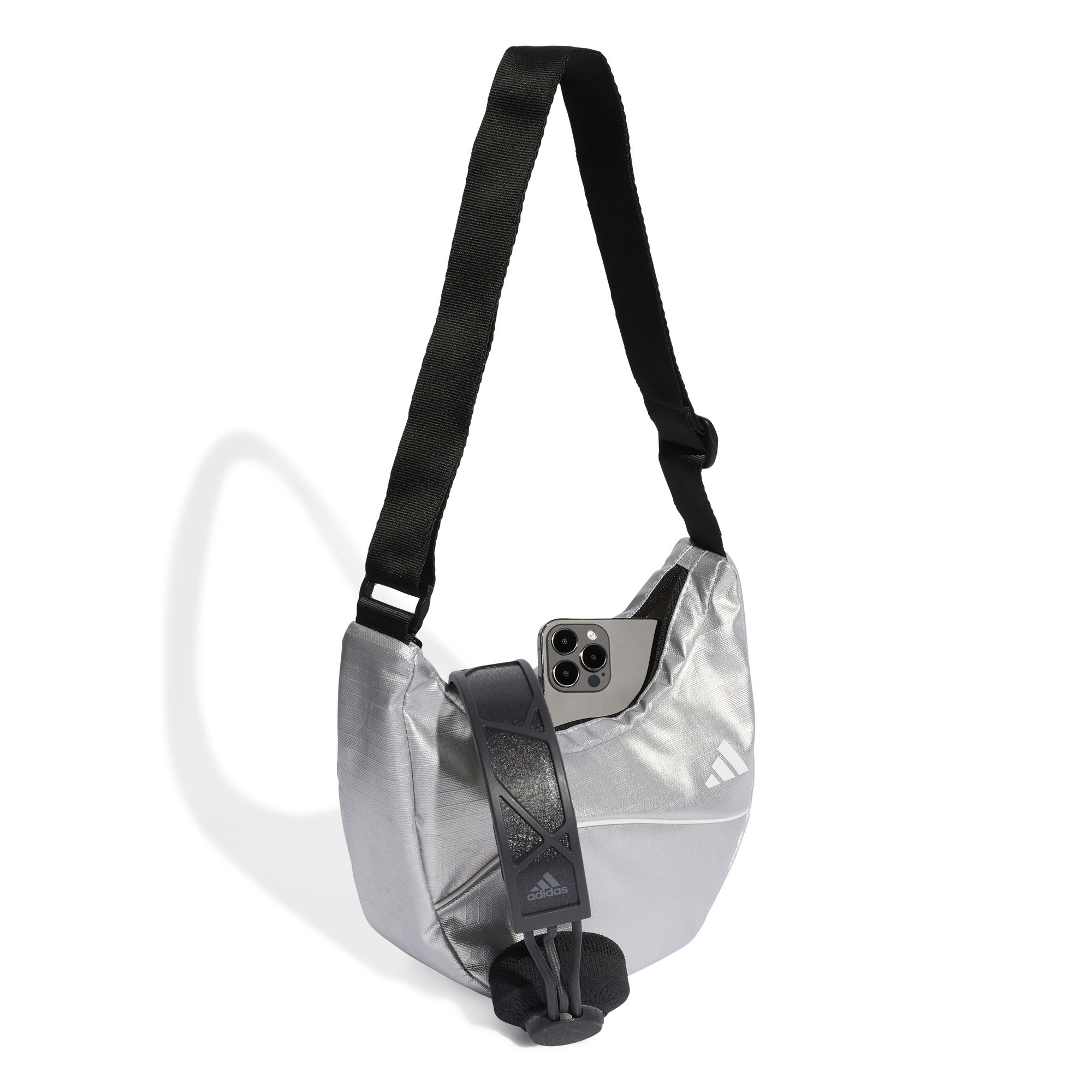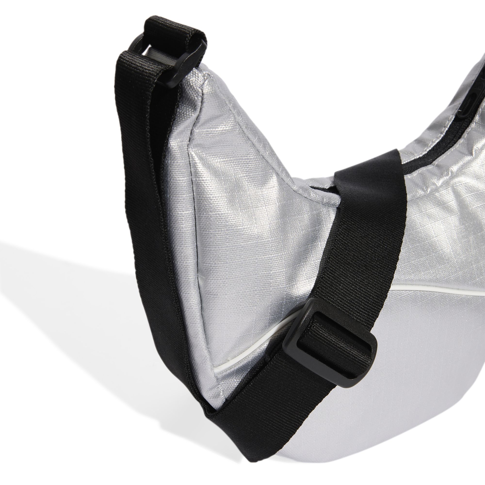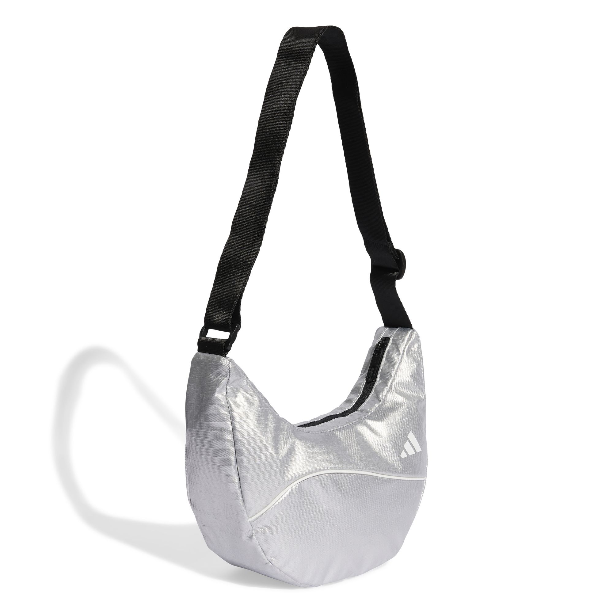 Diese stylische Schultertasche von adidas ist perfekt für den täglichen Einsatz. Das Ripstop-Material in Metallic-Optik ist strapazierfähig und fängt das Licht dezent schimmernd ein. Dank des Reißverschlusses bleiben Ihre Sachen sicher und die kompakte Größe ist genau richtig für Ihre Essentials.