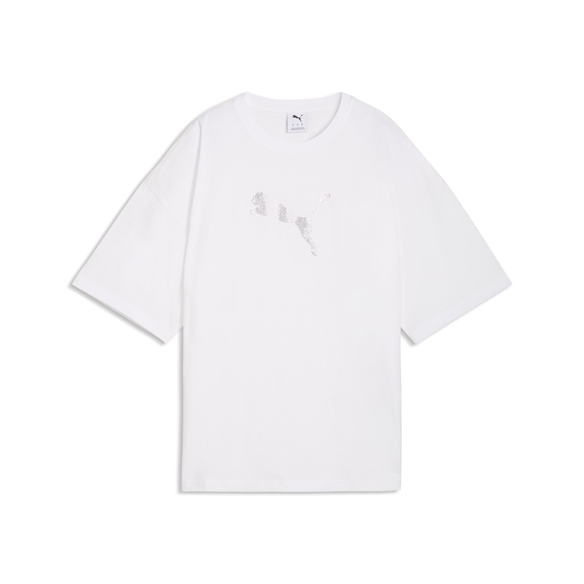 Puma ESS GRAPHICS LEO LUXE Bedazzled Oversized Tee - PUMA White