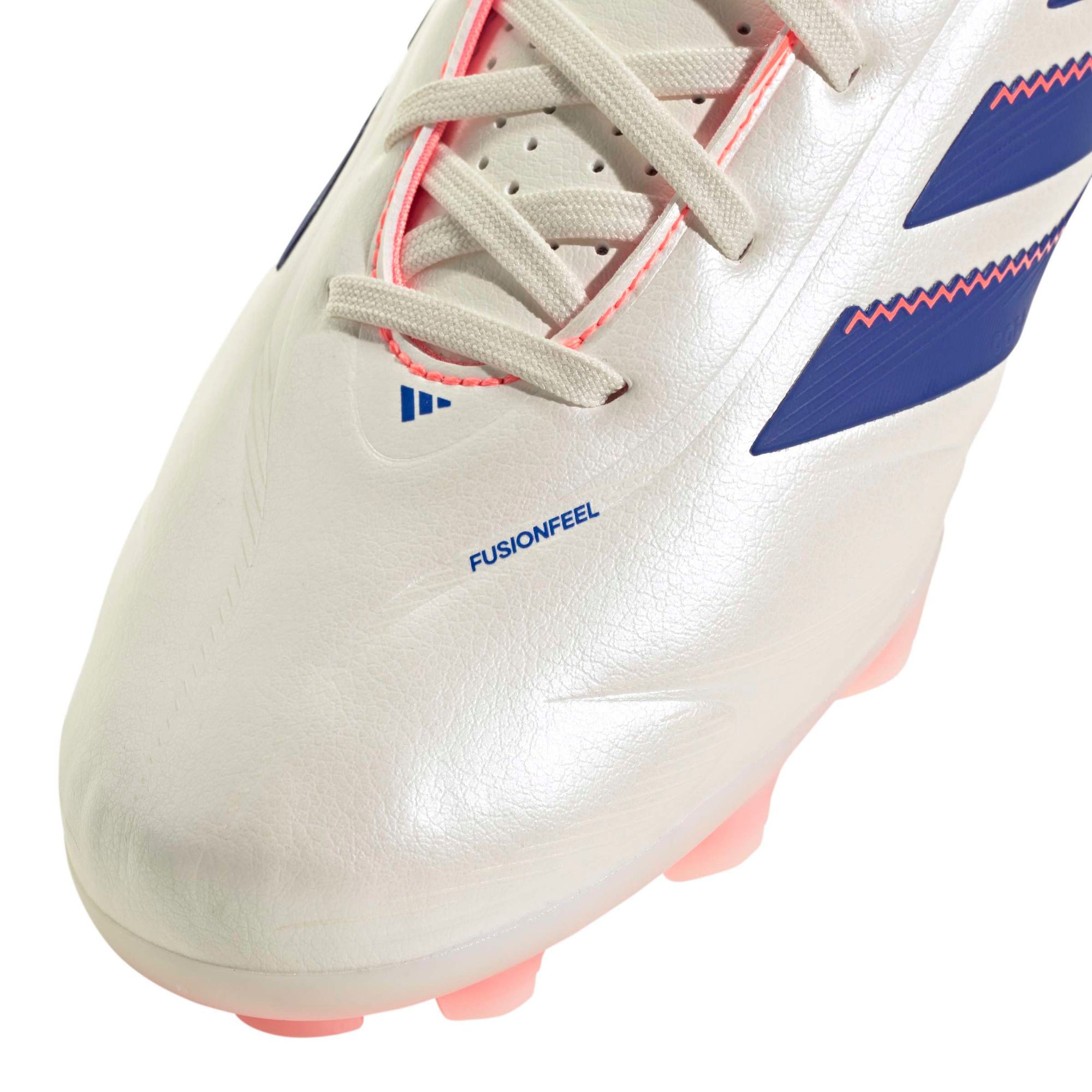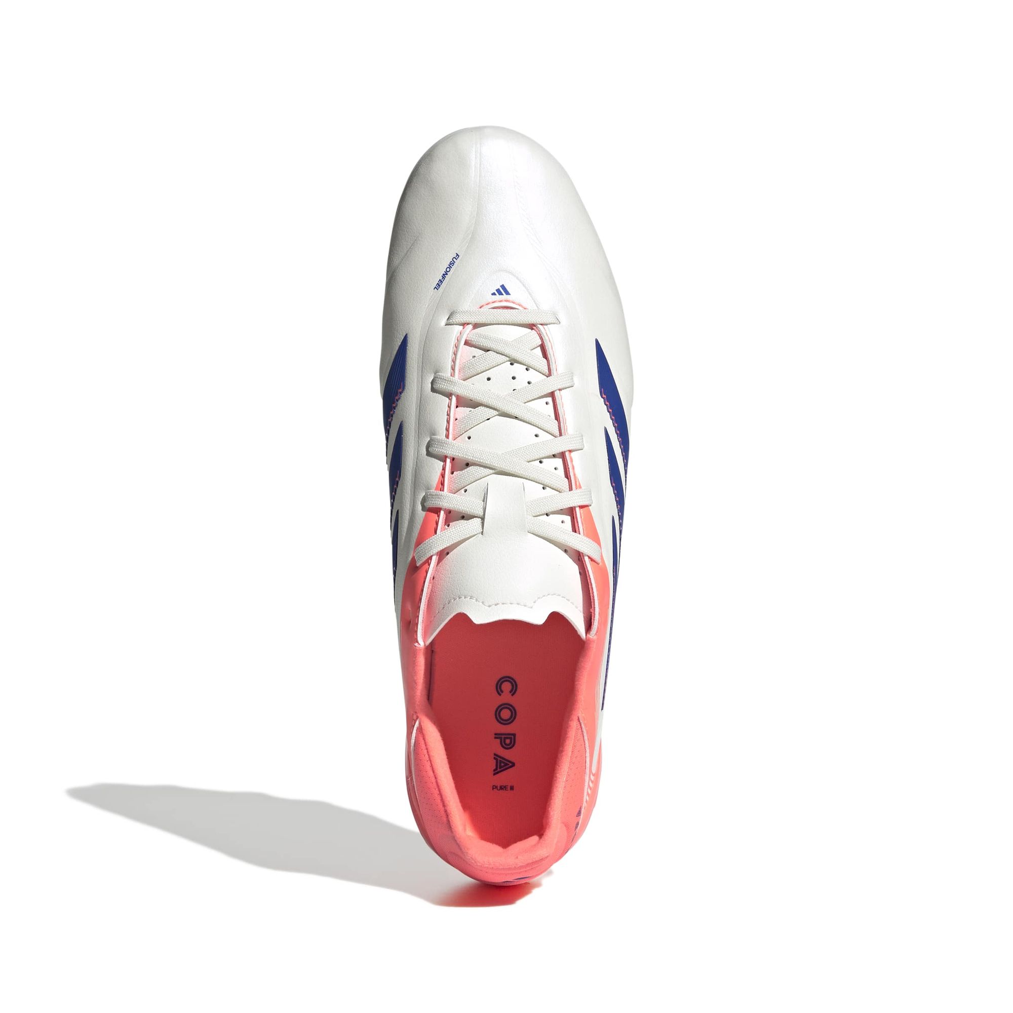 Geschickte Ballberührungen. Gelungene Pässe. Der Copa Pure 3 Fußballschuh ermöglicht ein präzises Spiel mit perfektem Ballkontakt. Dieser adidas League Fußballschuh kommt mit einem Fusionfeel Synthetik-Obermaterial, das wie Leder aussieht und sich auch so anfühlt. Am Vorfuß sorgt ein 3D-Druck für ein überragendes Ballgefühl. Darunter sorgt eine spezielle Außensohle für eleganten Fußball auf 2G und 3G Kunstrasen.