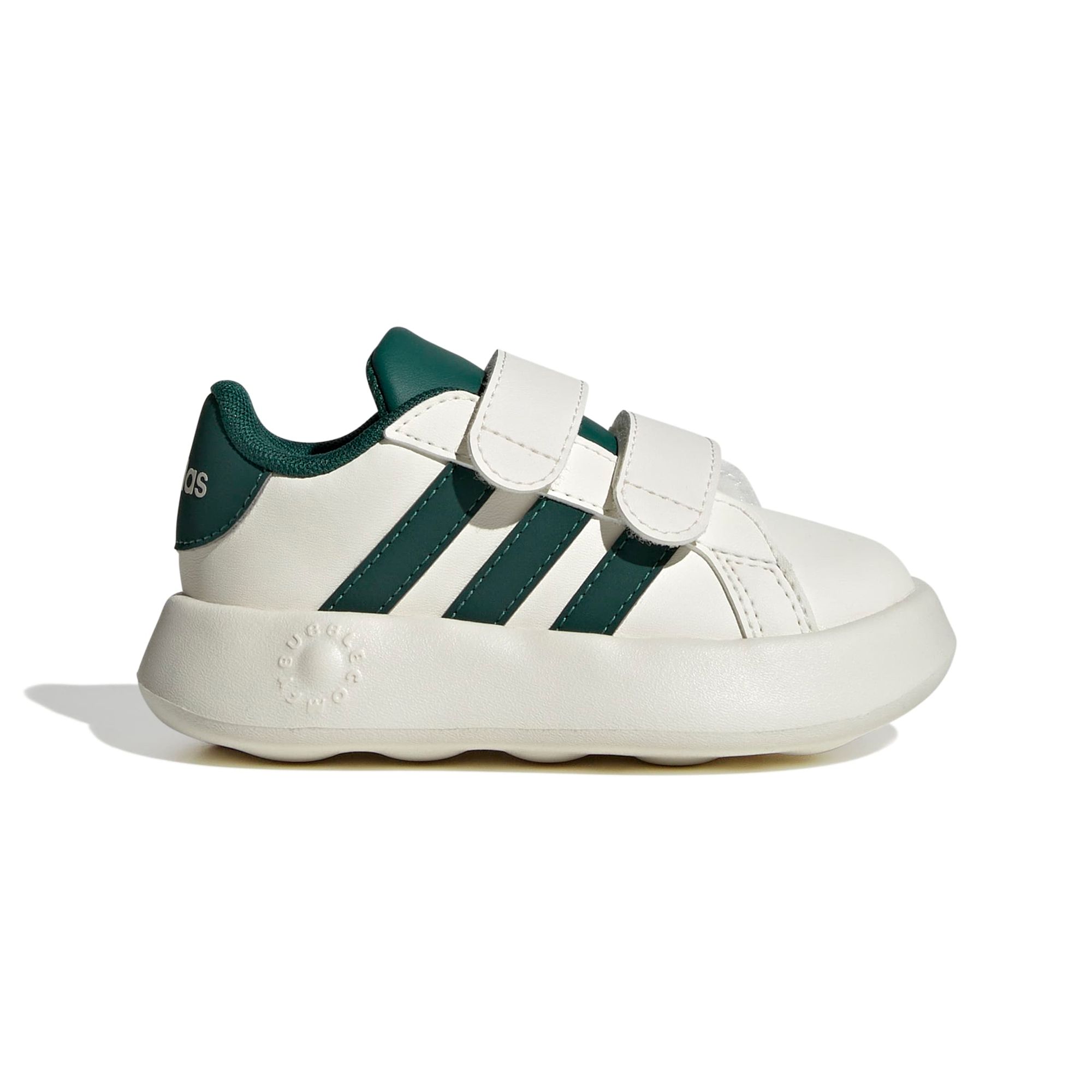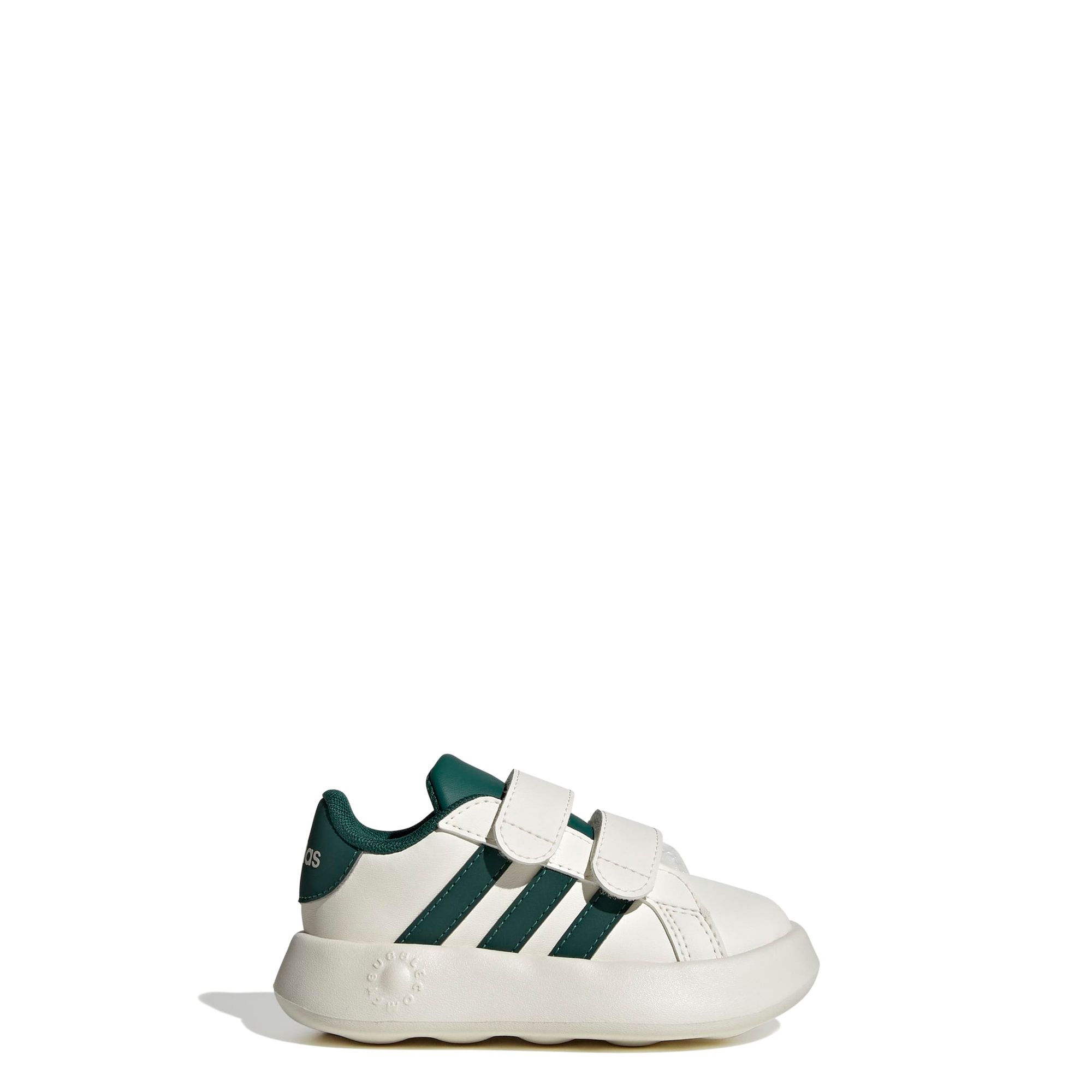 Dein kleiner Schatz wird diesen adidas Grand Court Schuh für Babys und Kleinkinder am liebsten gar nicht mehr ausziehen wollen. Dank der Klettverschlüsse ist das An- und Ausziehen kinderleicht und die EVA-Außensohle sorgt für ein Plus an Komfort. Egal, ob Krabbeln oder die ersten Schritte, dieser niedliche Schuh darf nicht fehlen. Mit den 3-Streifen machen die täglichen Abenteuer gleich noch mehr Spaß. Dieses Produkt ist mit mindestens 20 % recycelten Materialien hergestellt. Die Wiederverwendung bereits vorhandener Materialien hilft uns dabei, Müll zu reduzieren, unsere Abhängigkeit von nicht erneuerbaren Ressourcen einzuschränken und den CO2-Fußabdruck unserer Produkte zu verringern.