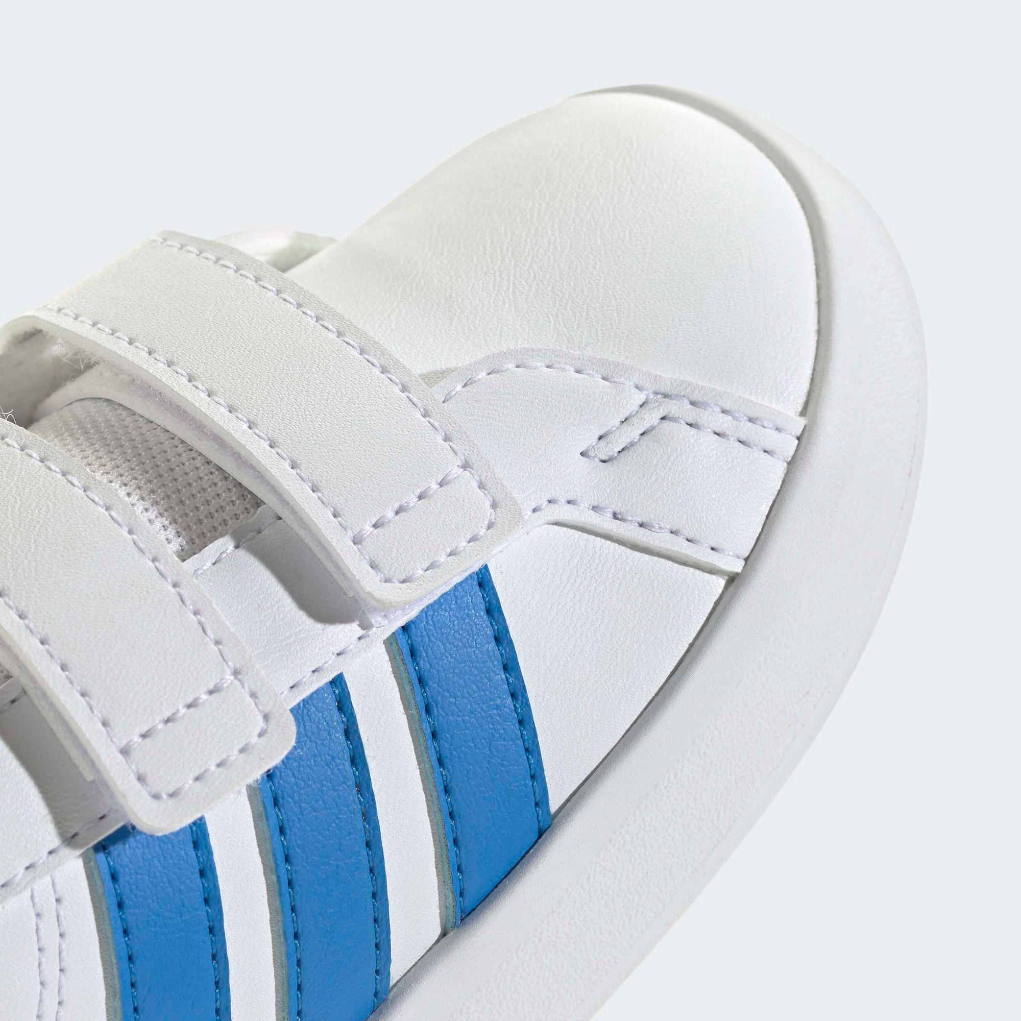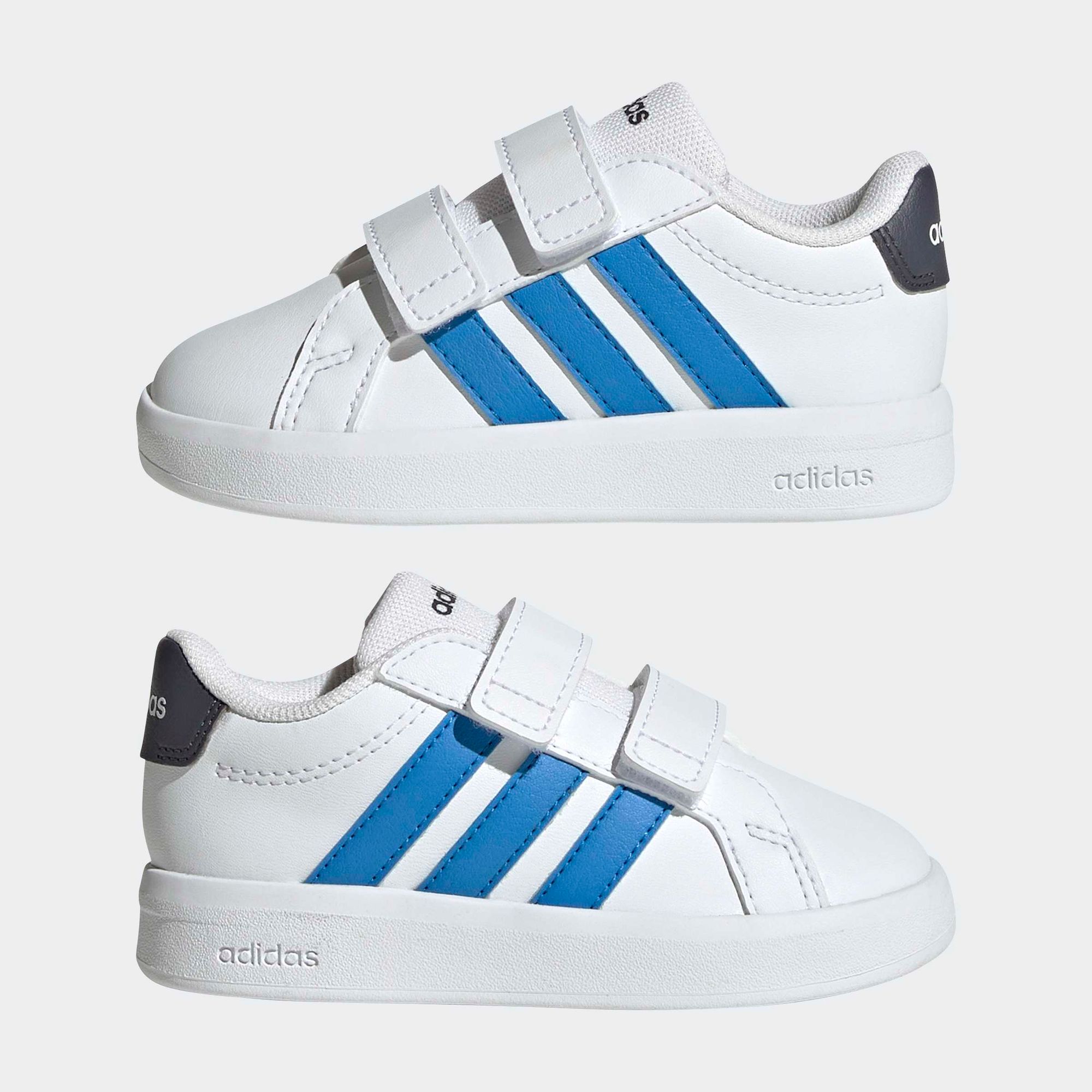 Die Grand Court 3.0 Schuhe für Babys und Kleinkinder sind ein klassischer adidas Court Sneaker, neu gestaltet für kleine Füße. Mit zeitlosem Style begleiten sie die jungen Abenteurer, während weitenregulierbare Klettverschlussriemen den Eltern das Anziehen erleichtern.