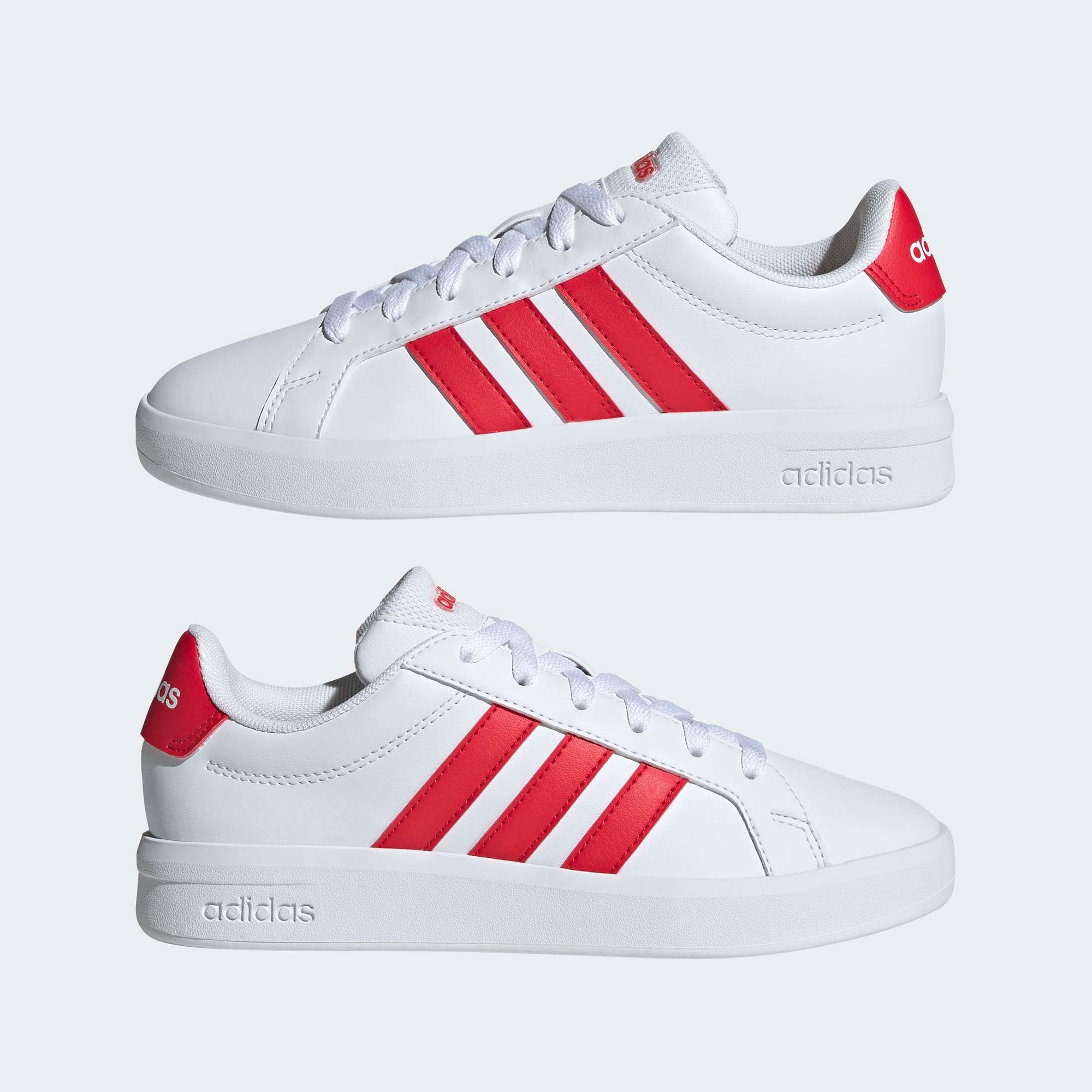 Die Grand Court 3.0 Schuhe wurden für Kinder entwickelt, die gerne spielen und entdecken. Diese aktualisierte Version bringt ein neues Level an Komfort und Style in die kultige adidas Court Reihe. Die 3-Streifen und das Sportswear-Logo auf dem Detail im Fersenbereich verleihen dem Paar authentisches adidas Flair.