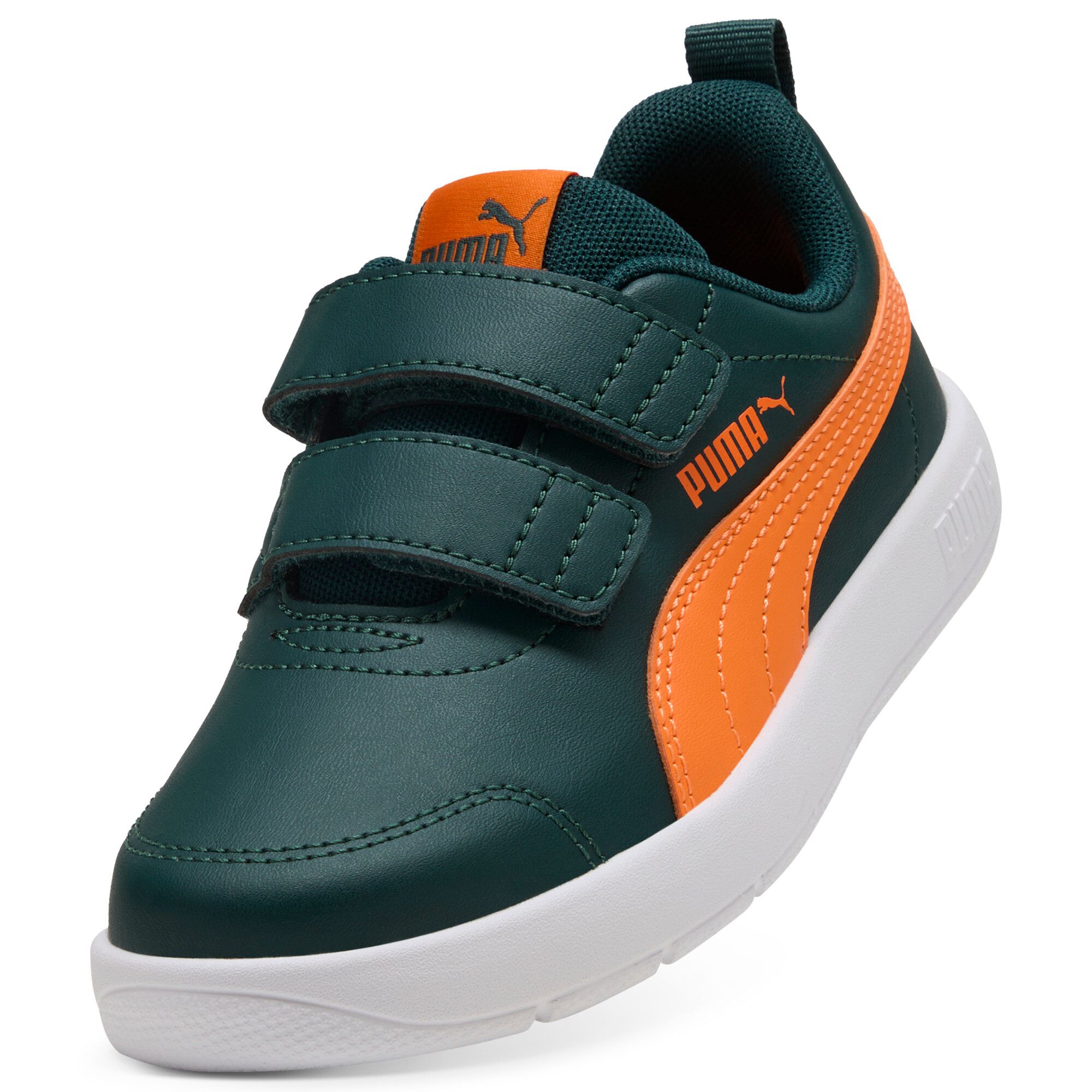 Der Puma Courtflex V3 V PS ist der ideale Schuh für kleine Entdecker. Mit seinem frischen Design in green terrain-orange glo-puma white bringt er Farbe in den Alltag und überzeugt durch Funktionalität und Komfort. Der Sneaker ist speziell für Kinder entwickelt und bietet sicheren Halt, während das weiche Innenfutter für ein angenehmes Tragegefühl sorgt. Ob beim Spielen oder beim täglichen Abenteuer, dieser Schuh macht alles mit. Frisches Design in green terrain-orange glo-puma white Angenehmes Tragegefühl dank weichem Innenfutter 37% Baumwolle für Atmungsaktivität Robust und flexibel für den Alltag