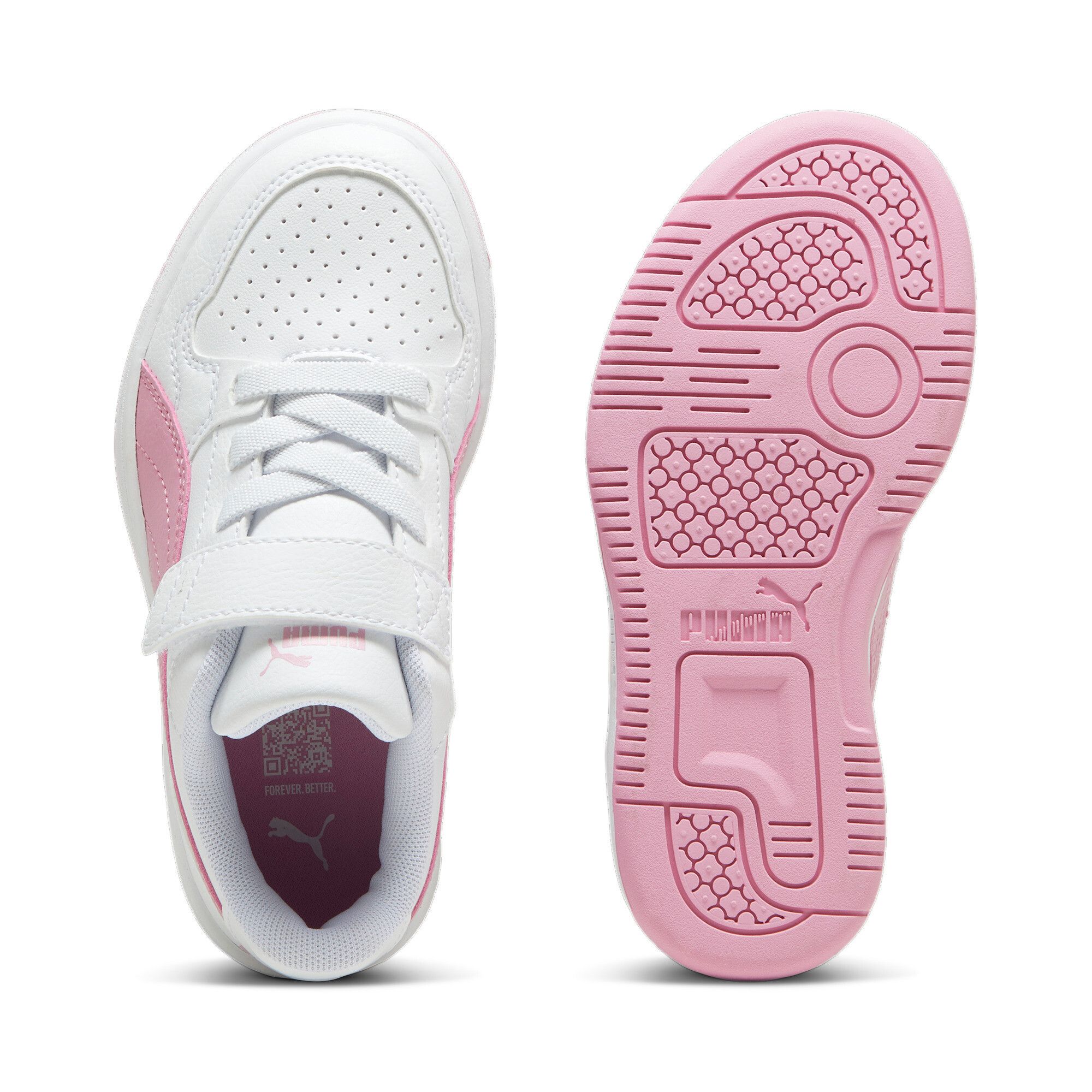 Der Puma Puma Reb-L Ac+ Ps in der Farbkombination puma white-mauved out-magenta gleam ist der ideale Sneaker für kleine Trendsetter. Mit seinem frischen Design und der bekannten Puma-Qualität sorgt dieser Schuh für Komfort und Stil auf dem Schulhof oder in der Freizeit. Der Sneaker überzeugt durch seine funktionellen Merkmale, die speziell auf aktive Kinderfüße abgestimmt sind. Atmungsaktives Synthetik- und Textilmaterial Robuste Gummisohle für sicheren Halt Textil-Innenfutter für angenehmen Tragekomfort Perfekte Passform dank verstellbarem Verschluss