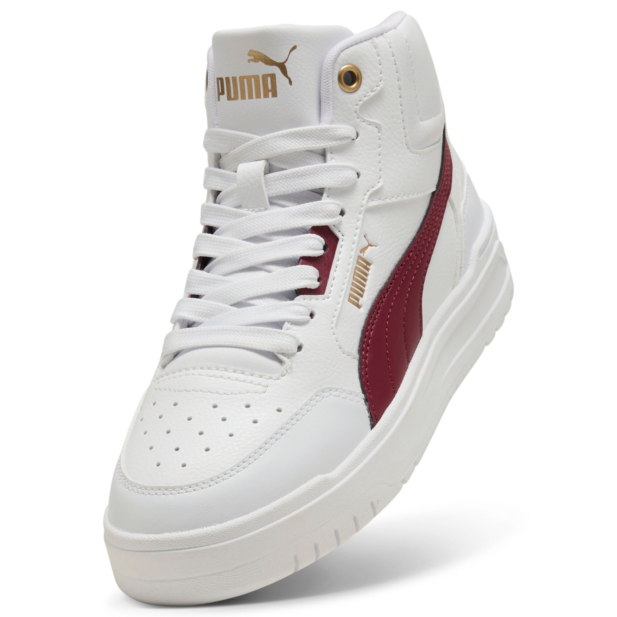 Puma Shuffle Downtown Mid Jr in der Farbe PUMA White-Team Regal Red-PUMA Gold