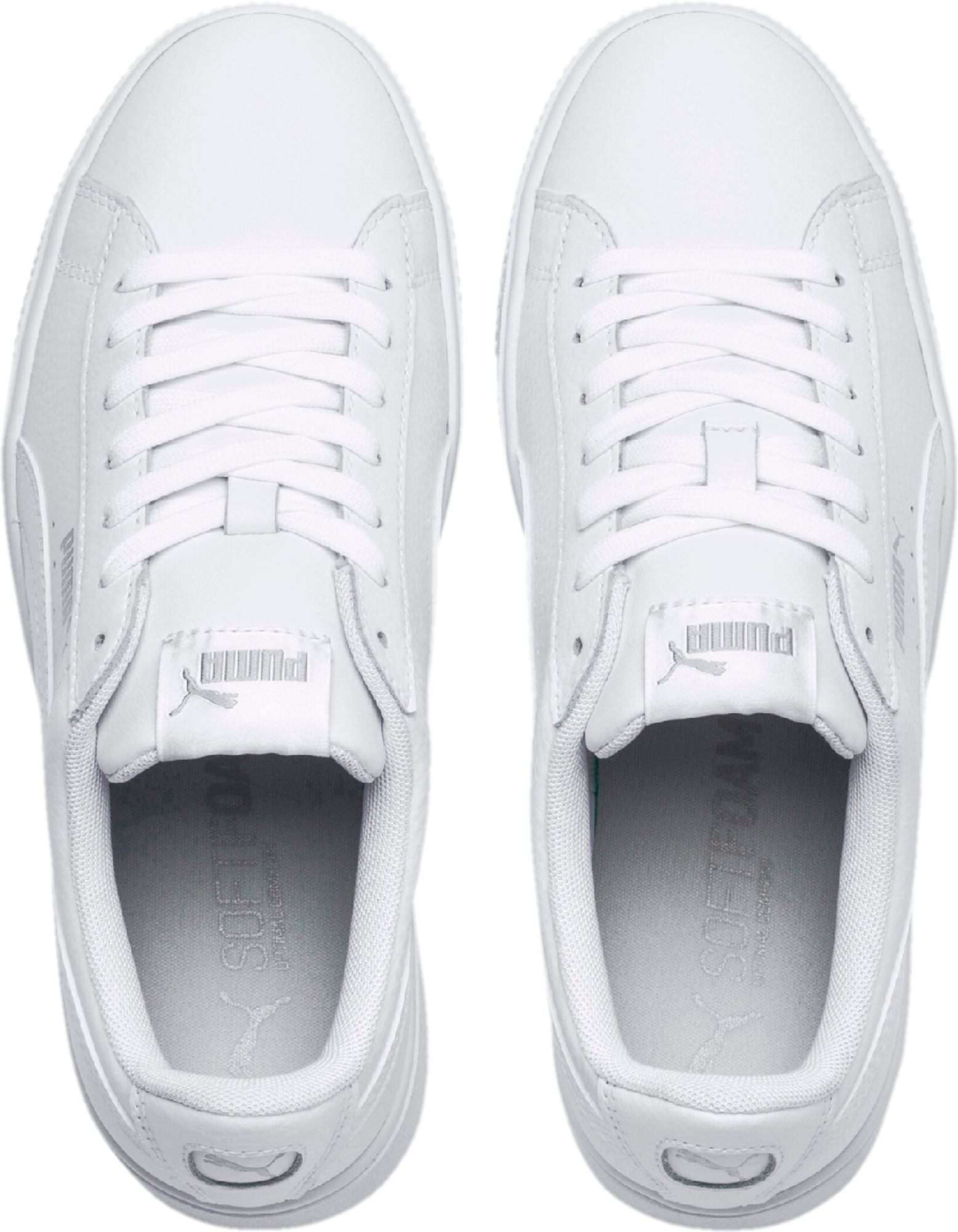 Diese neue Ausgabe des PUMA Vikky tauscht die klassische Sohleneinheit gegen eine Fast-schon-Plateau-Sohle. Weiches Leder als Obermaterial darüber sorgt für Style und Komfort, während die SoftFoam+ Einlegesohle das Gehen zum weich abgedämpften Erlebnis macht. Die extradicke Gummisohle liefert nach wie vor den gewohnt guten Grip. FEATURES + VORTEILE SoftFoam+: PUMAs innovative weiche Innensohle für maximalen Laufkomfort vom ersten bis zum letzen Schritt Obermaterial aus Leder DETAILS Griffige Gummi-Laufsohle Durchgehende Schnürung für einen festen Sitz PUMA Formstrip an beiden Seiten PUMA No. 1 Logo auf der Schuhzunge PUMA No. 2 Logo auf der Schuhaußenseite