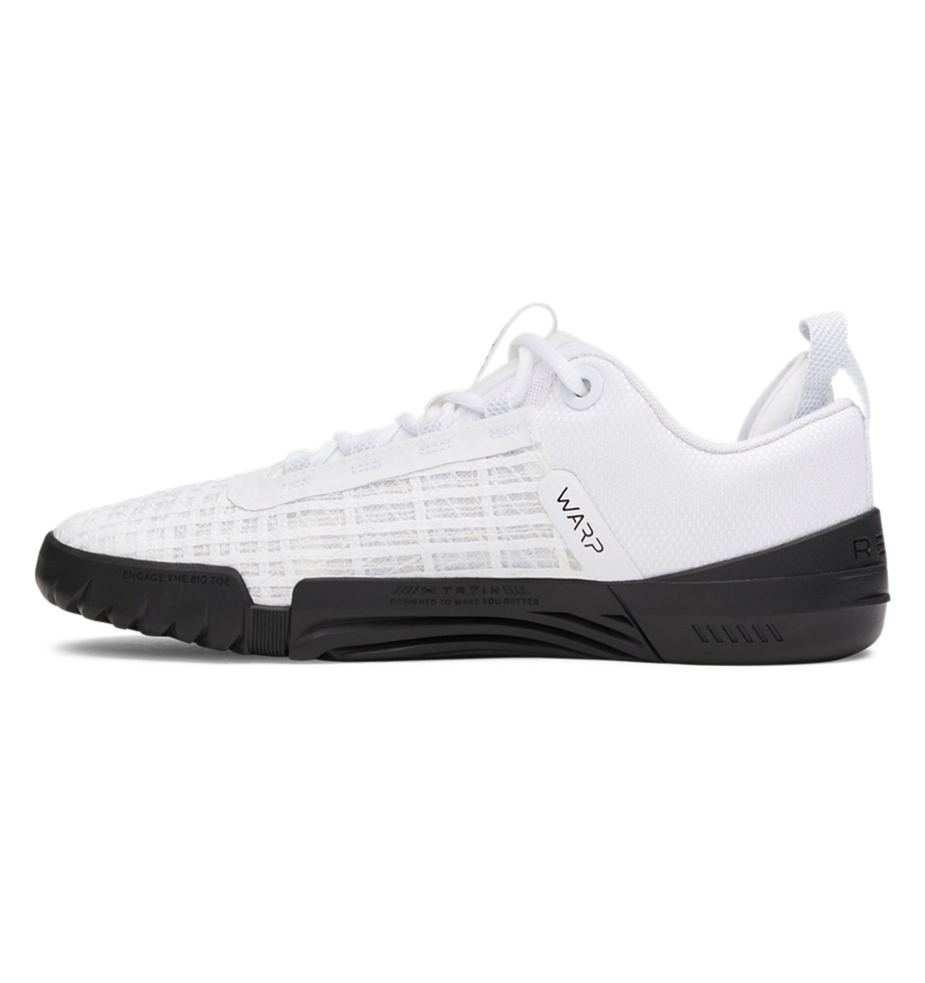 Das UA WARP Obermaterial bietet ultimativen Halt bei dynamischen Bewegungen und das TPU-Mesh sorgt für maximale Strapazierfähigkeit und Atmungsaktivität; Äußere Fersenspange und integrierte Fersenkappe für zusätzlichen Halt und Unterstützung; Die Dual-Density-Mittelsohle ist weicher im Vorderfußbereich und fester an der Ferse – so hast du besseren Halt und mehr Komfort für die Fußsohle; Der verbesserte UA TriBase™ maximiert den Bodenkontakt, fördert die natürliche Bewegung und bietet Flexibilität für den Griff beim Stemmen; Die Vollgummi-Außensohle umfasst die Seitenbereiche für eine höhere Strapazier- und Abriebfestigkeit mit griffiger Struktur im Mittelbereich; Strategische Gummikonstruktion unter dem Zehenbereich für eine stärkere Bodenhaftung; Niedrige Konstruktion für eine bessere Passform und Kraftübertragung