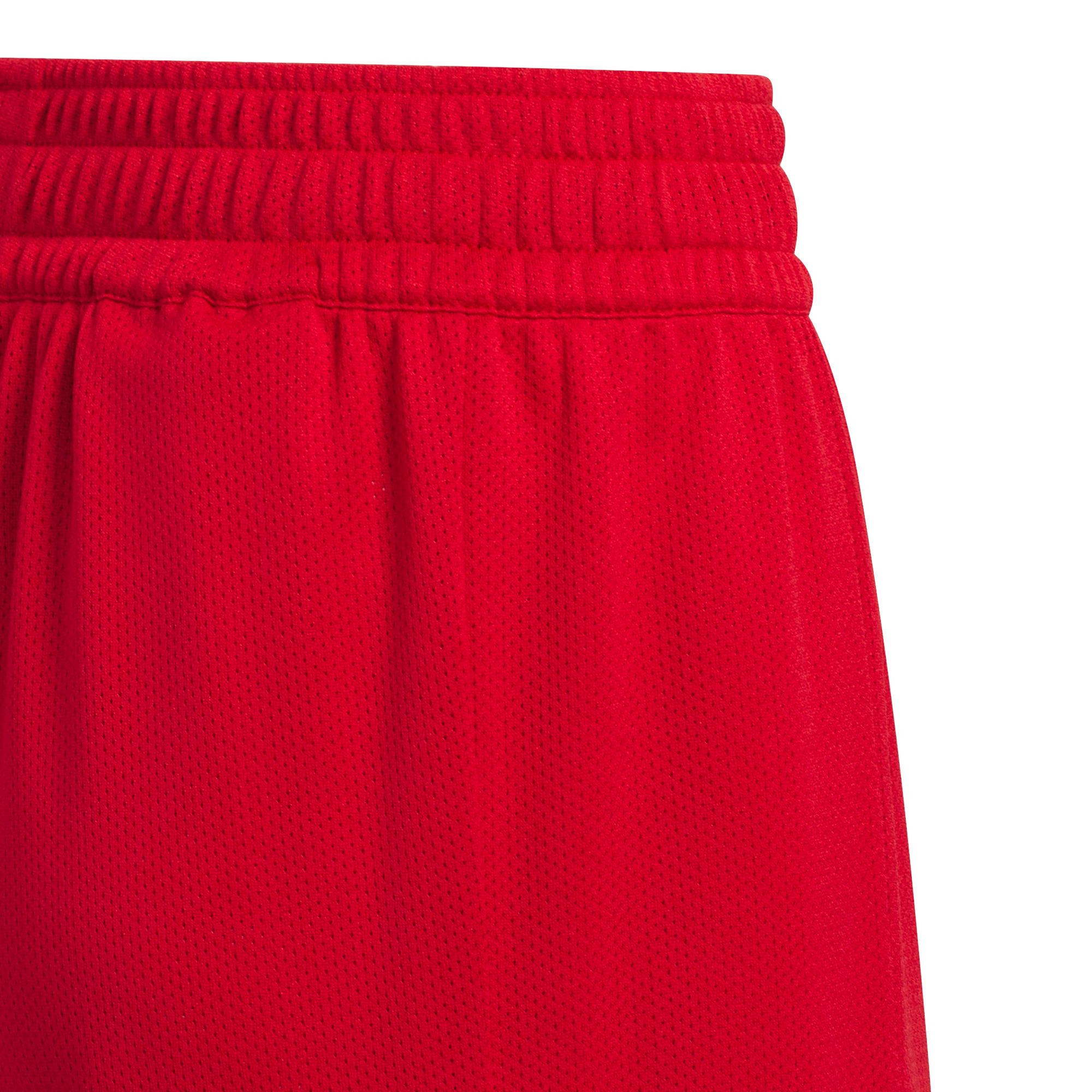 Mit diesen adidas Wende-Basketballshorts für Kinder ist dein junger Spieler bereit, den Platz im Sturm zu erobern. Diese Shorts aus leichtem, strapazierfähigem recyceltem Polyester sorgt bei Fastbreaks und scharfen Cuts für kühlen Komfort und Bewegungsfreiheit. Die locker geschnittene Passform gibt den Kleinen die Freiheit für schnelle Ballvorträge.