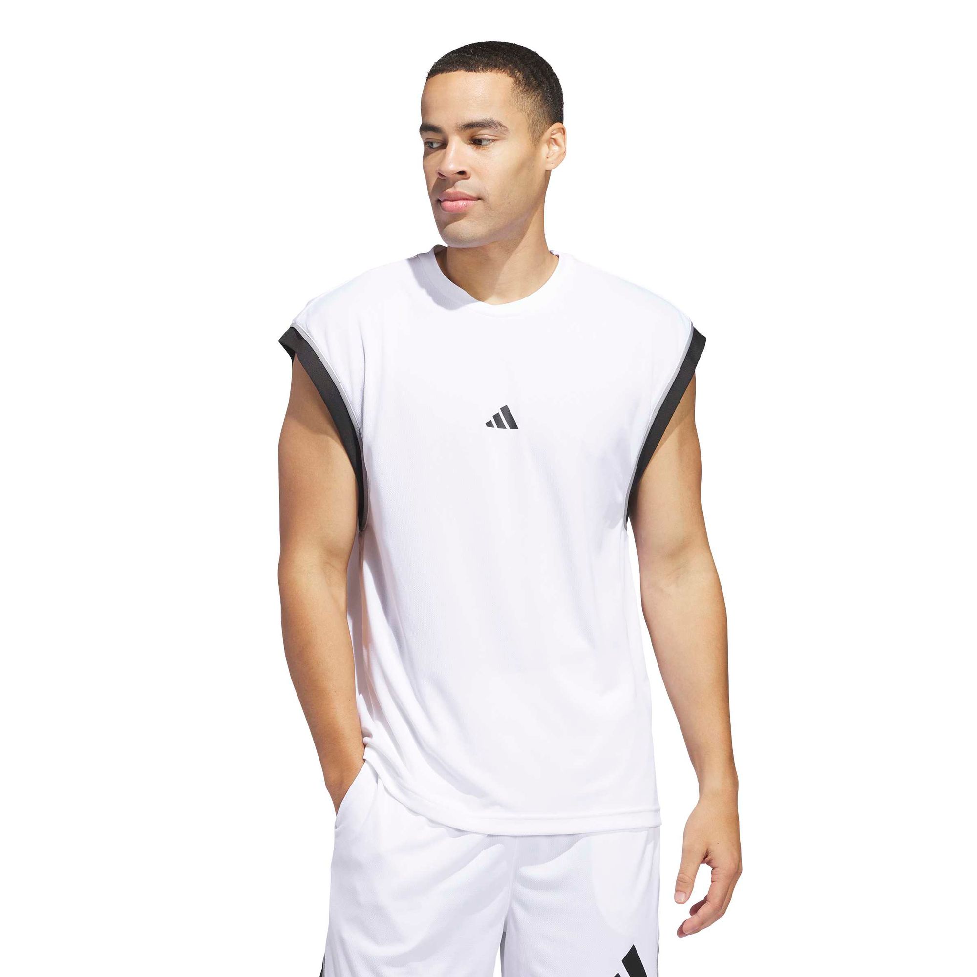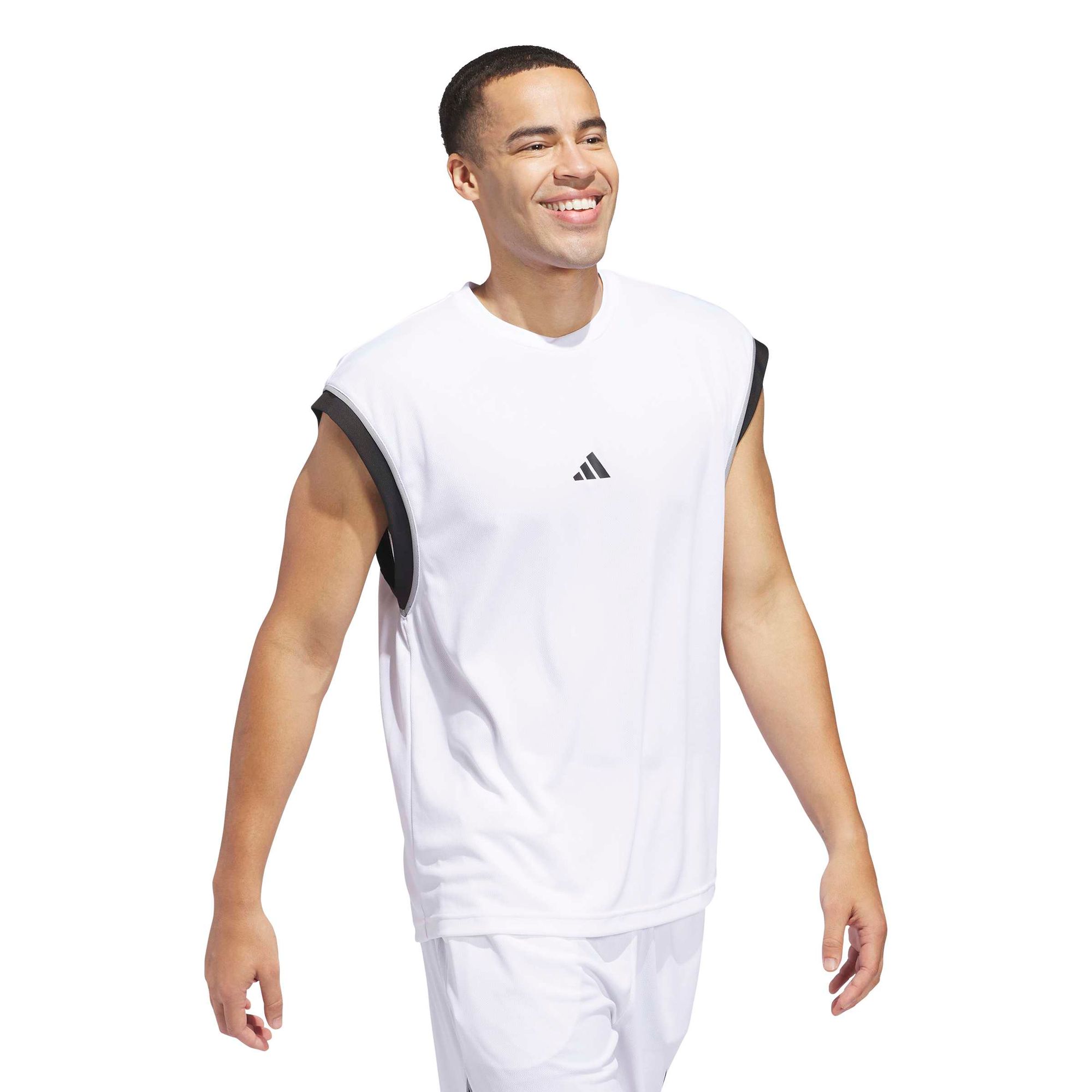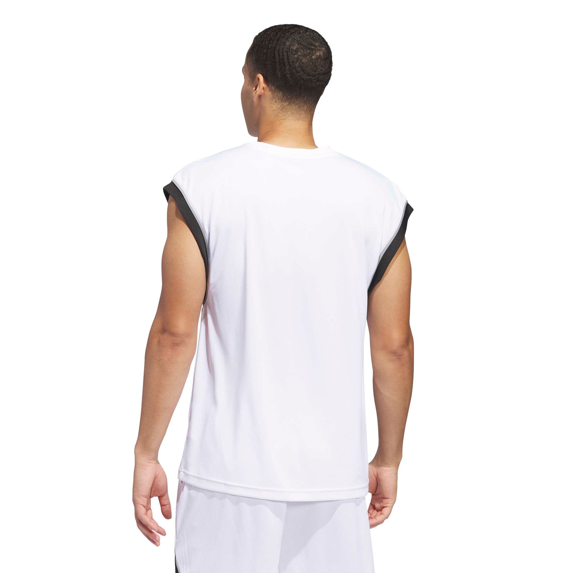 Mit diesem ärmellosen adidas Basketball Tanktop bist du stylish unterwegs. Außerdem hält dich die feuchtigkeitsabsorbierende AEROREADY Technologie angenehm trocken, während das weiche, gewirkte Material und die lockere Passform für maximalen Komfort sorgen. Das 3-Streifen Logo auf der Vorderseite rundet den Look mit sportlichen Vibes ab.