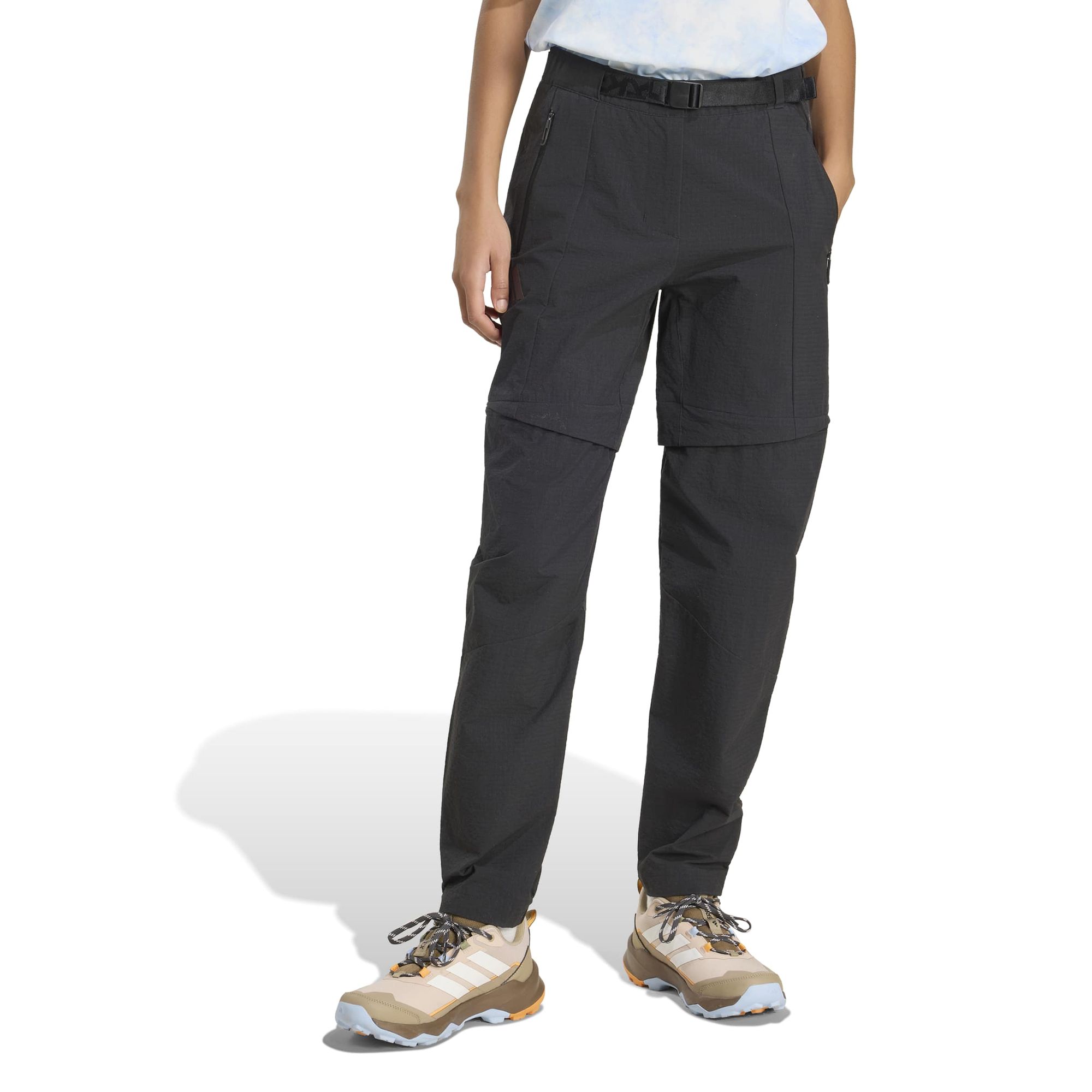 Der mittelhohe Bund und der Reißverschluss sorgen für eine bequeme Passform, während die schmal zulaufende Beinform, das aufgestickte Terrex Logo und die adidas 3-Streifen einen modernen Style-Akzent setzen.