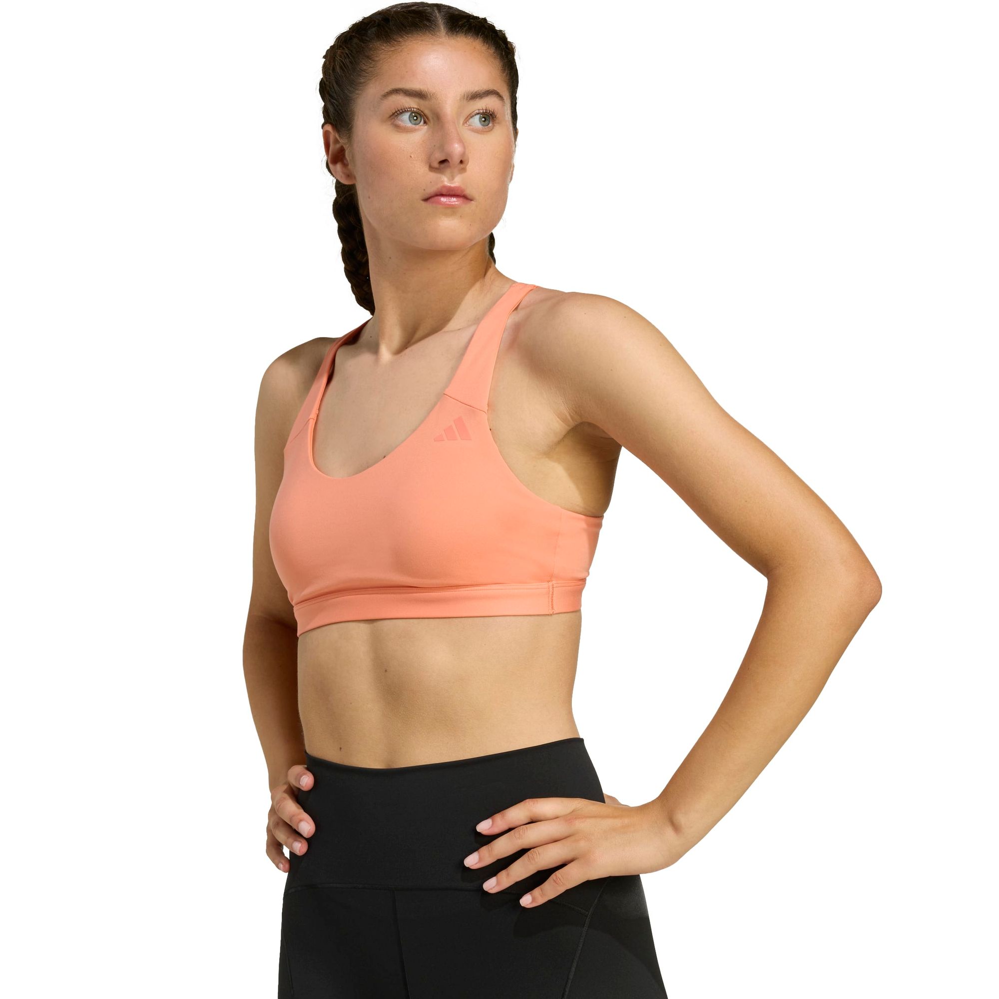 Egal, ob du beim Sonnengruß oder im Fitnessstudio ins Schwitzen kommst – mit diesem Sport-BH mit mittlerem Halt fühlst du dich bequem und selbstbewusst. Das weiche, flexible Material fühlt sich beim Üben angenehm auf der Haut an. Herausnehmbare Polster ermöglichen dir eine individuelle Passform. CLIMACOOL leitet Feuchtigkeit von der Haut ab und sorgt für ein kühles und trockenes Tragegefühl – keine Ablenkung, nur Performance.