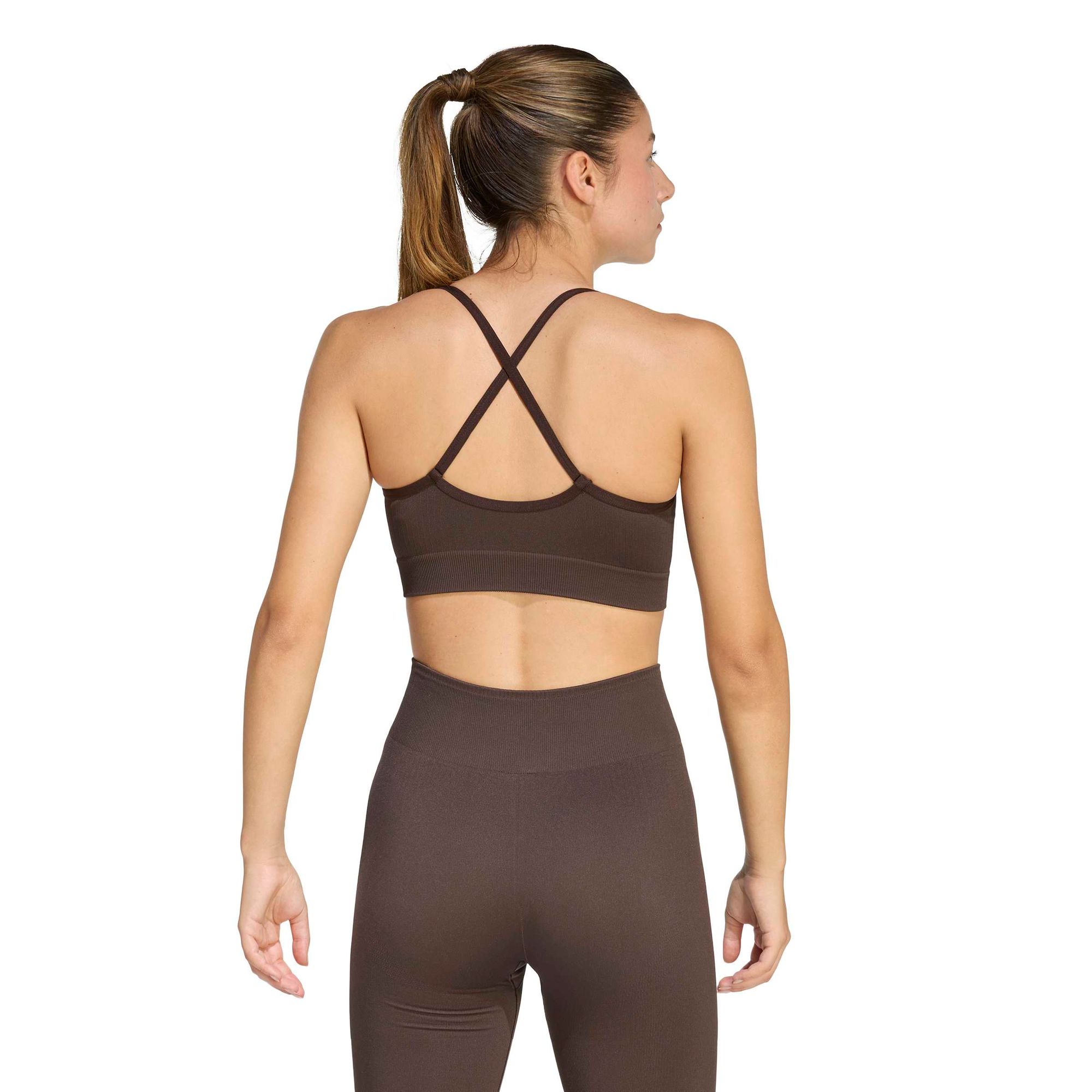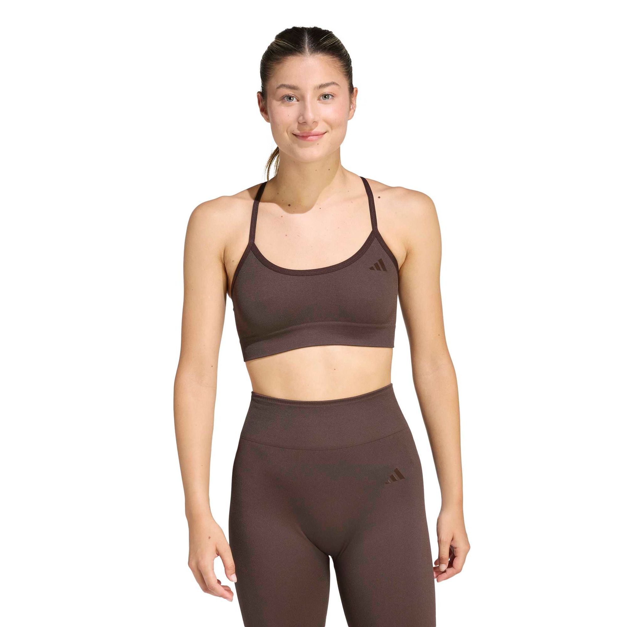 Für ein angenehmes Tragegefühl im Fitnessstudio und außerhalb sorgt dieser weiche, nahtlose und leicht stützende Workout-BH. Die nahtlose Strickkonstruktion bewegt sich mit dir bei Yoga, Pilates und anderen Low-Impact-Workouts. Klassische BH-Riemen verteilen das Gewicht auf deine Schultern und entlasten so deinen Trapezmuskel bei der Bewegung. CLIMACOOL leitet Feuchtigkeit von der Haut ab und sorgt für ein kühles und trockenes Tragegefühl – keine Ablenkung, nur Performance.