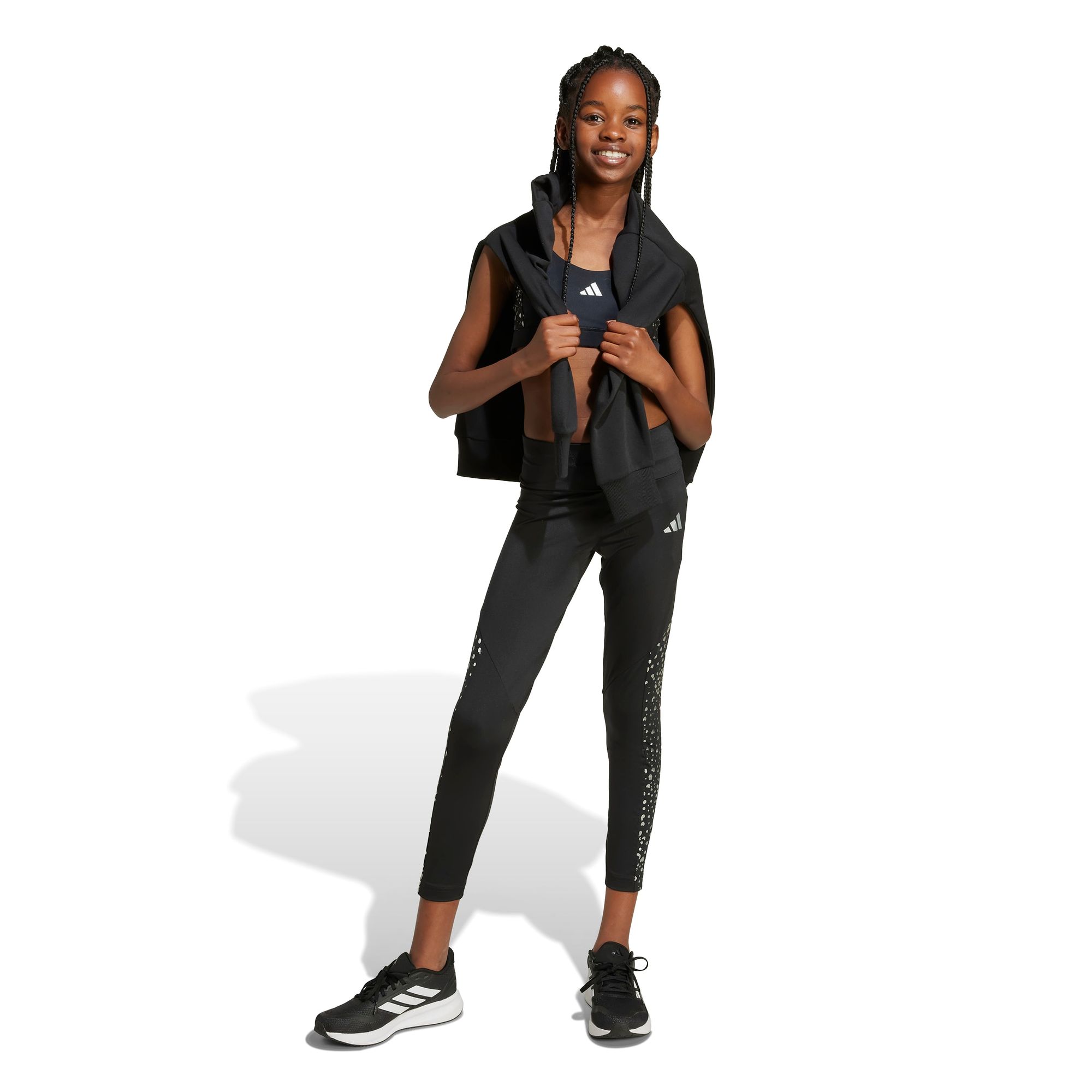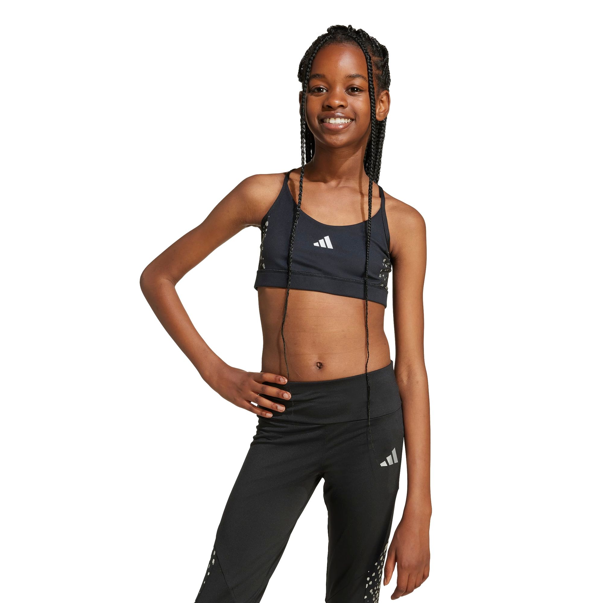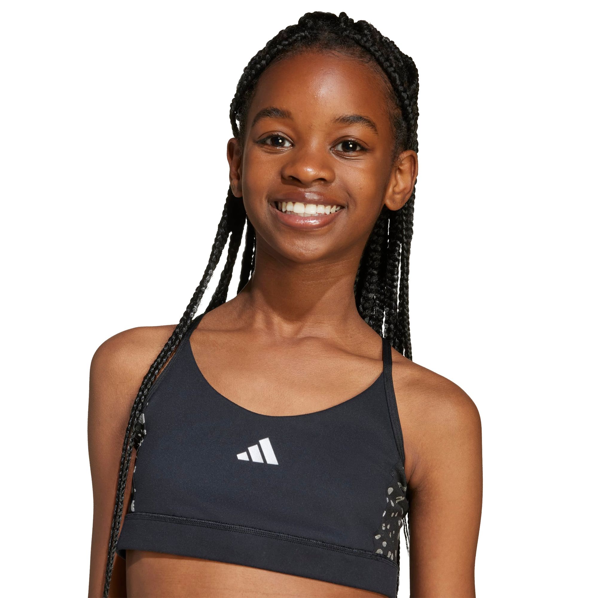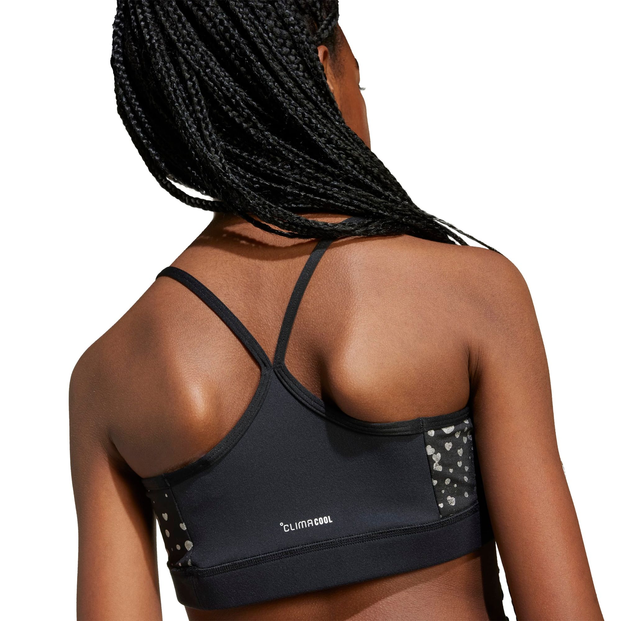 Mit dem adidas Essentials Glam Print Bra für Kinder und Teens kommt der innerer Athlet zum Ausdruck. Das Modell mit mittlerem Halt sorgt dafür, dass du dich während deines Workouts frei bewegen kannst. Das weiche, atmungsaktive Material leitet Feuchtigkeit ab, damit du auch bei intensivem Training kühl und trocken bleibst, während das durchgehende Futter für ein angenehmes Tragegefühl sorgt. Schmale, überkreuzte Träger halten den BH an seinem Platz, ohne dich einzuschränken. Kombiniere das Modell mit deinen Lieblingsleggings oder -shorts für den perfekten Gym-Look. CLIMACOOL leitet Feuchtigkeit von der Haut ab und sorgt für ein kühles und trockenes Tragegefühl – keine Ablenkung, nur Performance.
