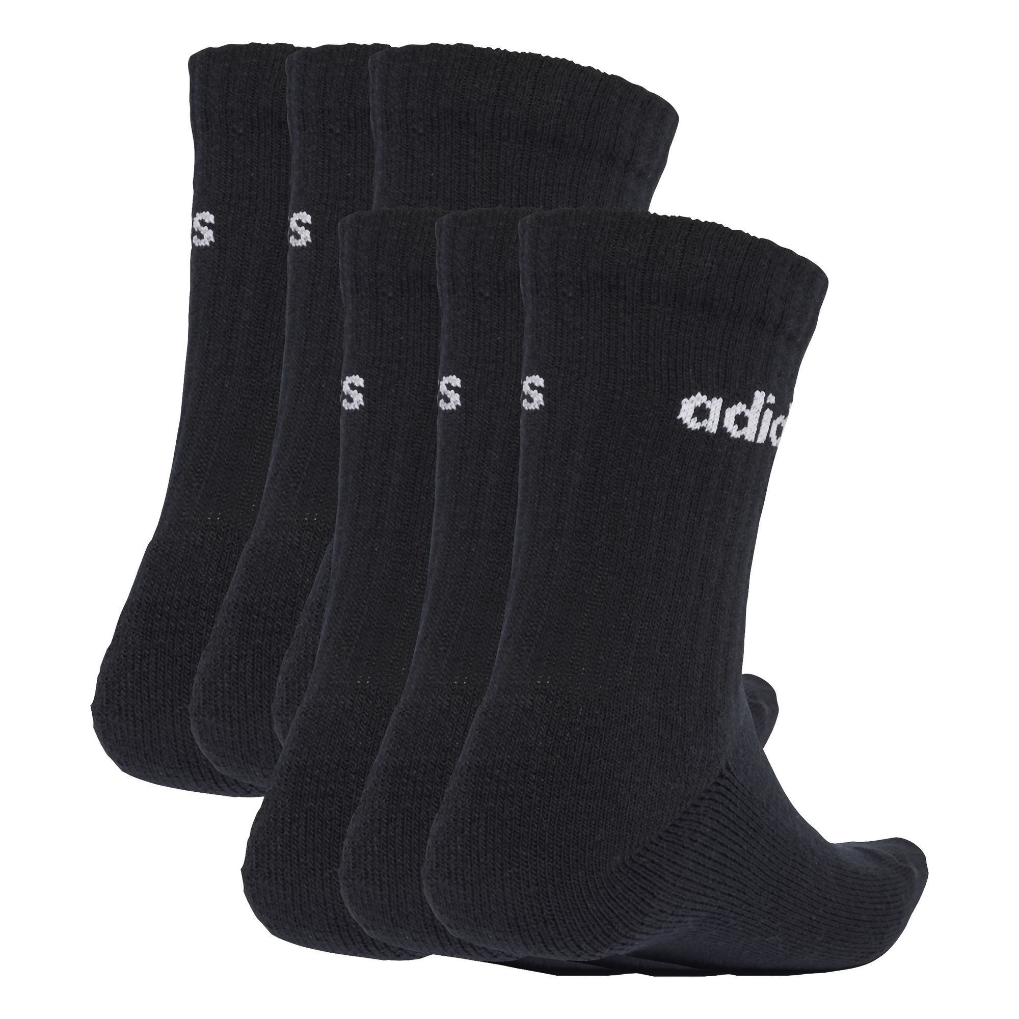 Erlebe hohen Tragekomfort mit diesem Sechserpack Crew Socken von adidas. Sie sind zum einfach Reinschlüpfen gemacht und du spürst, wie die weiche Dämpfung bei jedem Schritt zurückfedert. Mit mehreren Paaren hast du immer ein frisches Set parat, wenn du los musst.