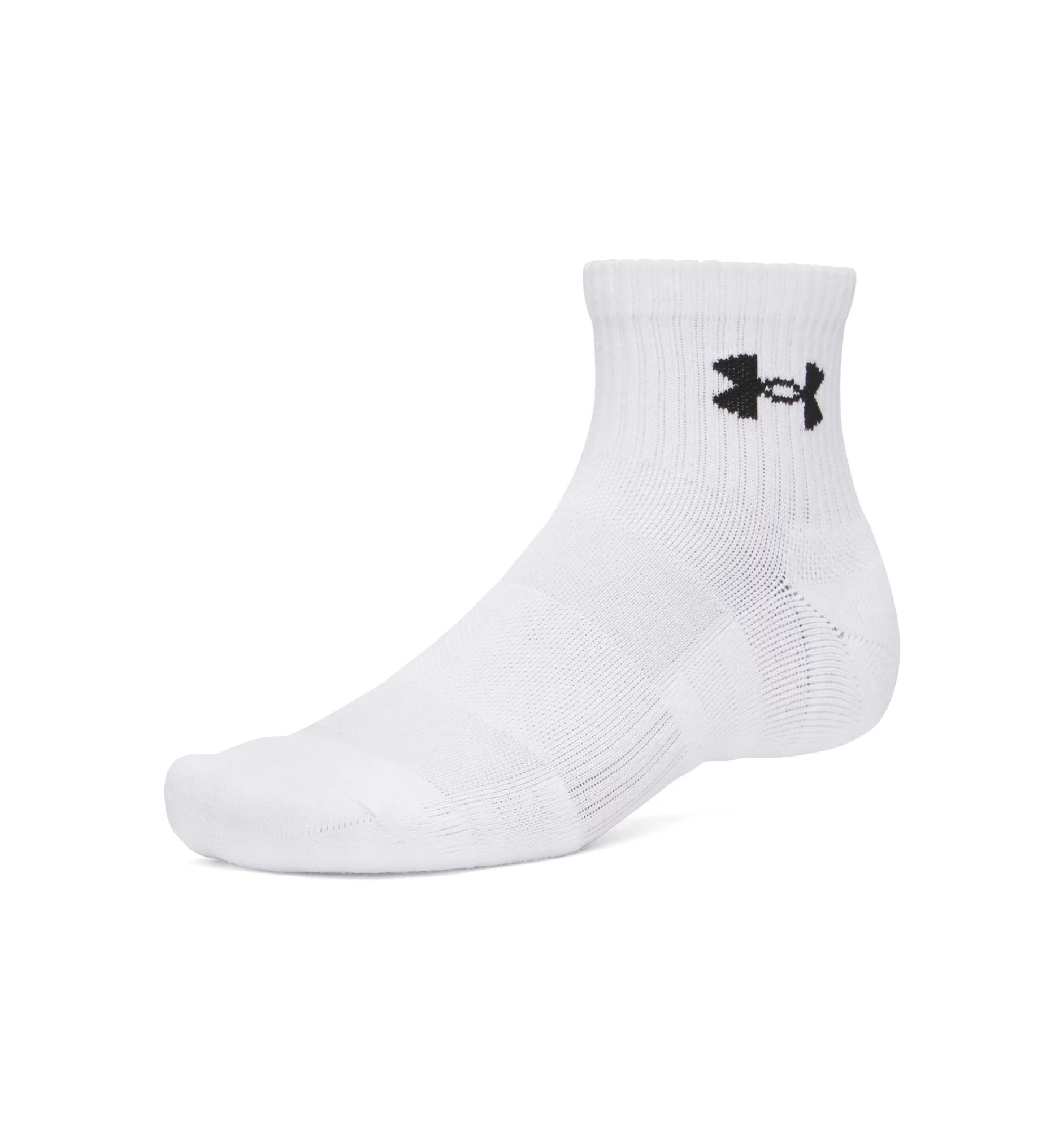 Der Under Armour Performance Cotton 3-Pack Quarter bietet idealen Komfort für dein Fitness- und Workout-Training. Die sportlichen Socken für Herren und Unisex überzeugen durch ihre weiche Baumwollmischung, die für ein angenehmes Tragegefühl sorgt, während integrierte Stretchanteile optimale Passform und Halt gewährleisten. Strategisch platzierte Polsterungen unterstützen stark beanspruchte Zonen und fördern die Leistungsfähigkeit beim Training. Die feuchtigkeitsregulierende Technologie hält die Füße trocken, damit du dich voll und ganz auf dein Workout konzentrieren kannst.