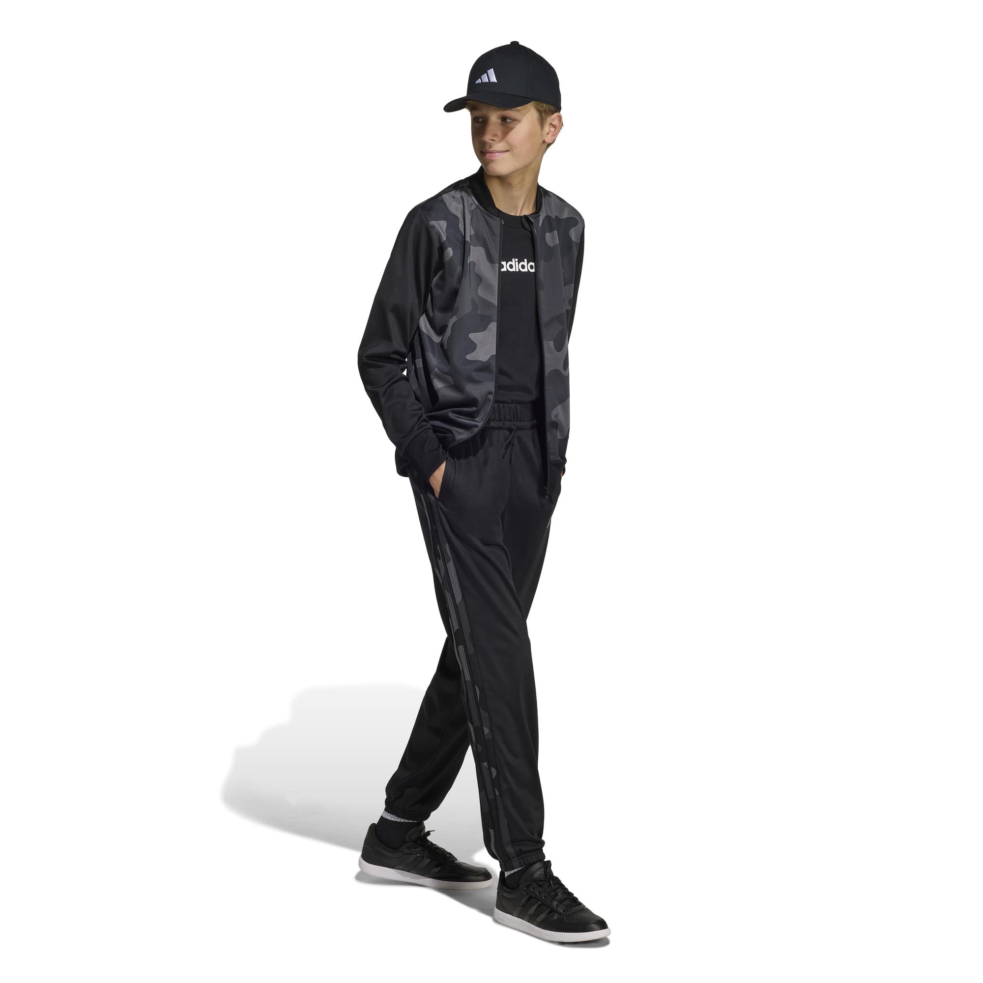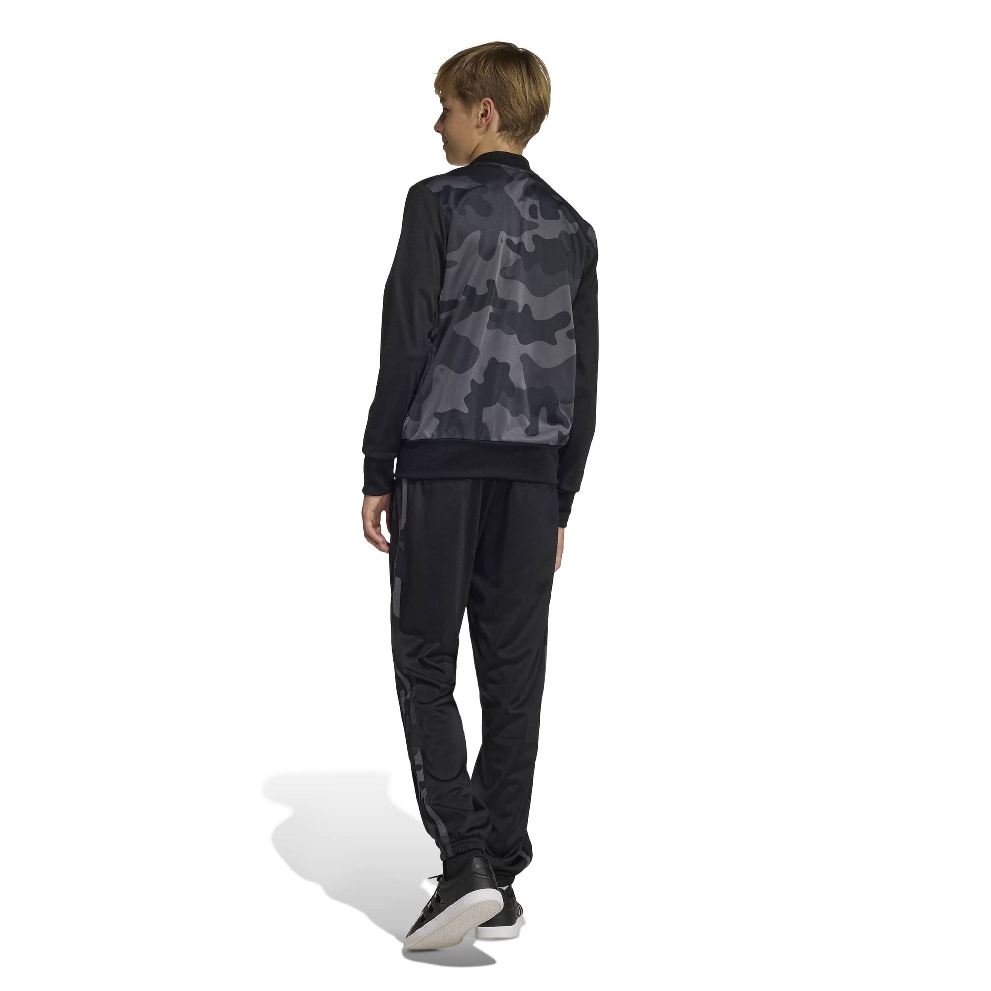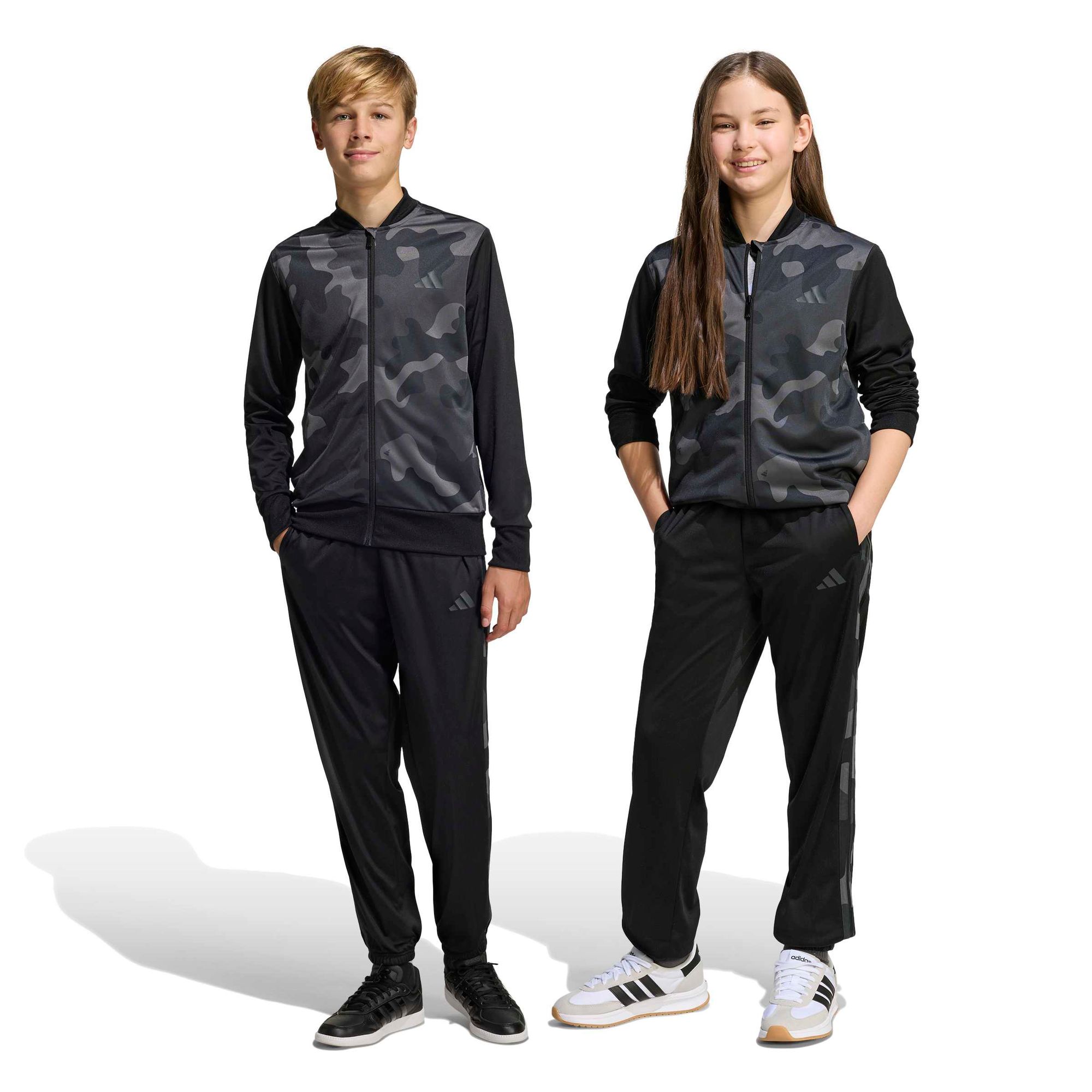 Der Camo-Print verleiht diesem Adidas Trainingsanzug für Kinder und Teens einen trendigen Touch. Er ist aus glattem Trikotmaterial gefertigt und kann mit deinem Leben mithalten, egal was du vorhast. Die Jacke hat einen durchgehenden Reißverschluss, den du je nach Wetter und Stimmung auf- oder zuzippen kannst. Die Hose erhält mit den kultigen 3-Streifen an den Beinen ein sportliches Finish.