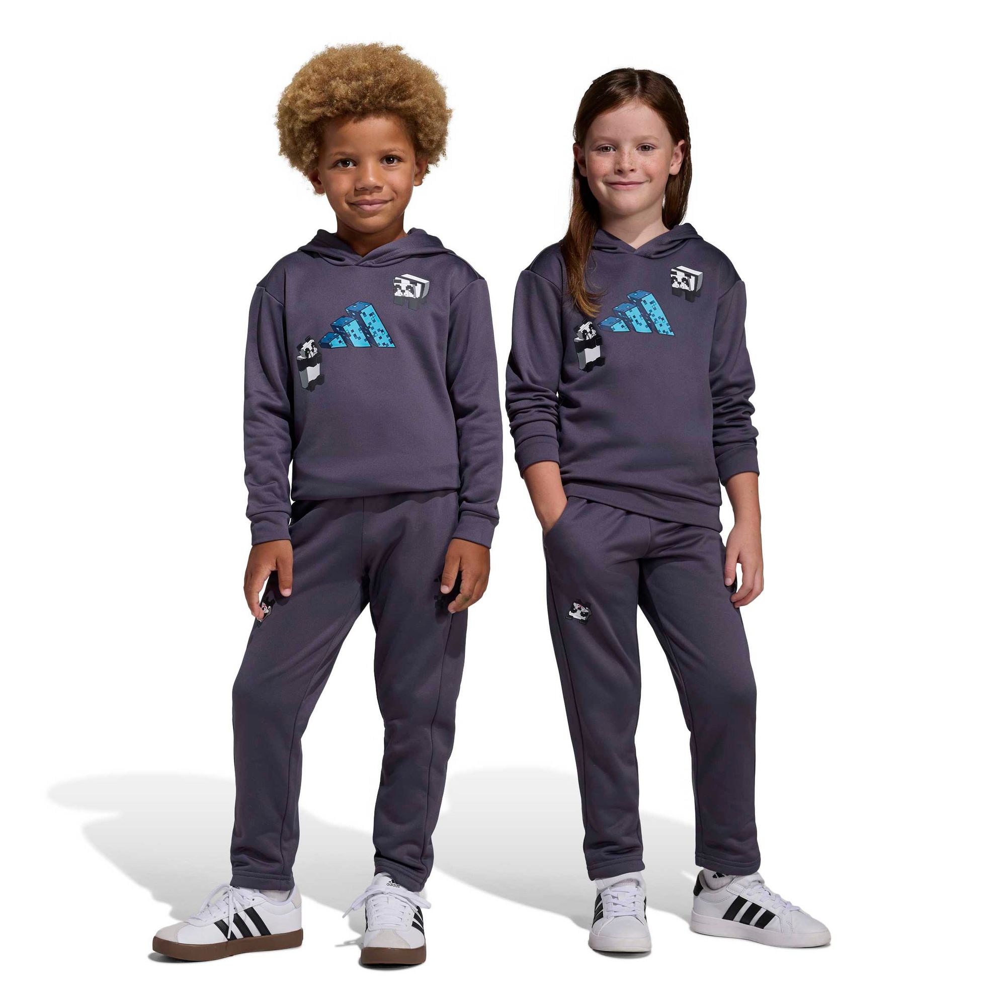 Mit Minecraft-Motiven und dem kultigen adidas 3-Balken Logo bringt dieses Set Stil ins Abenteuer und lässt Kinder bequem auf Entdeckungsreise gehen, bauen und spielen.