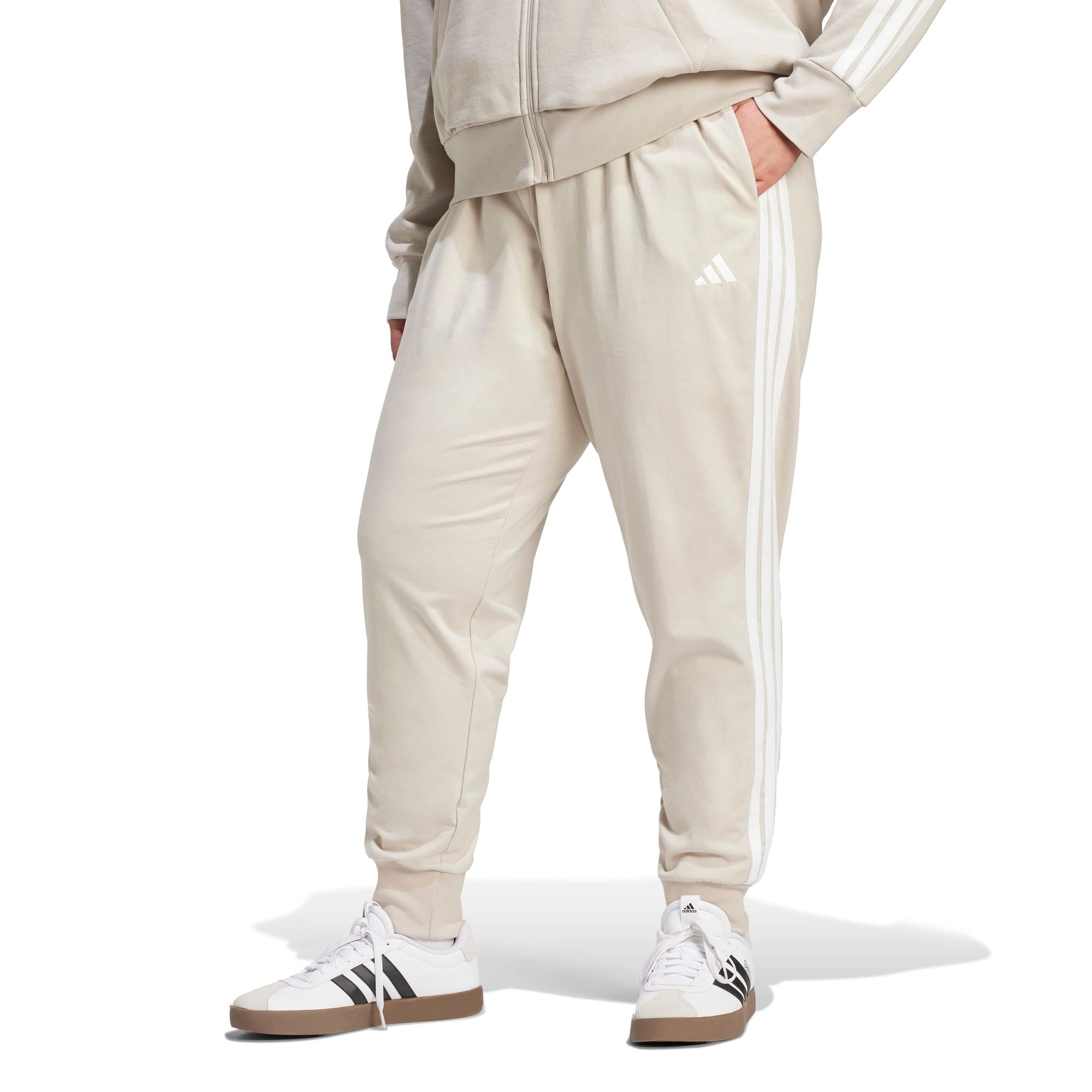 Die Essentials 3-Streifen Jogger-Hose wird zu deiner ersten Wahl, wenn es um Stil und Komfort geht. Diese Jogginghose mit der modernen Passform und dem ikonischen adidas Branding sorgt für einen eleganten Look mit einer hochgezogenen Taille, die deiner Silhouette schmeichelt.